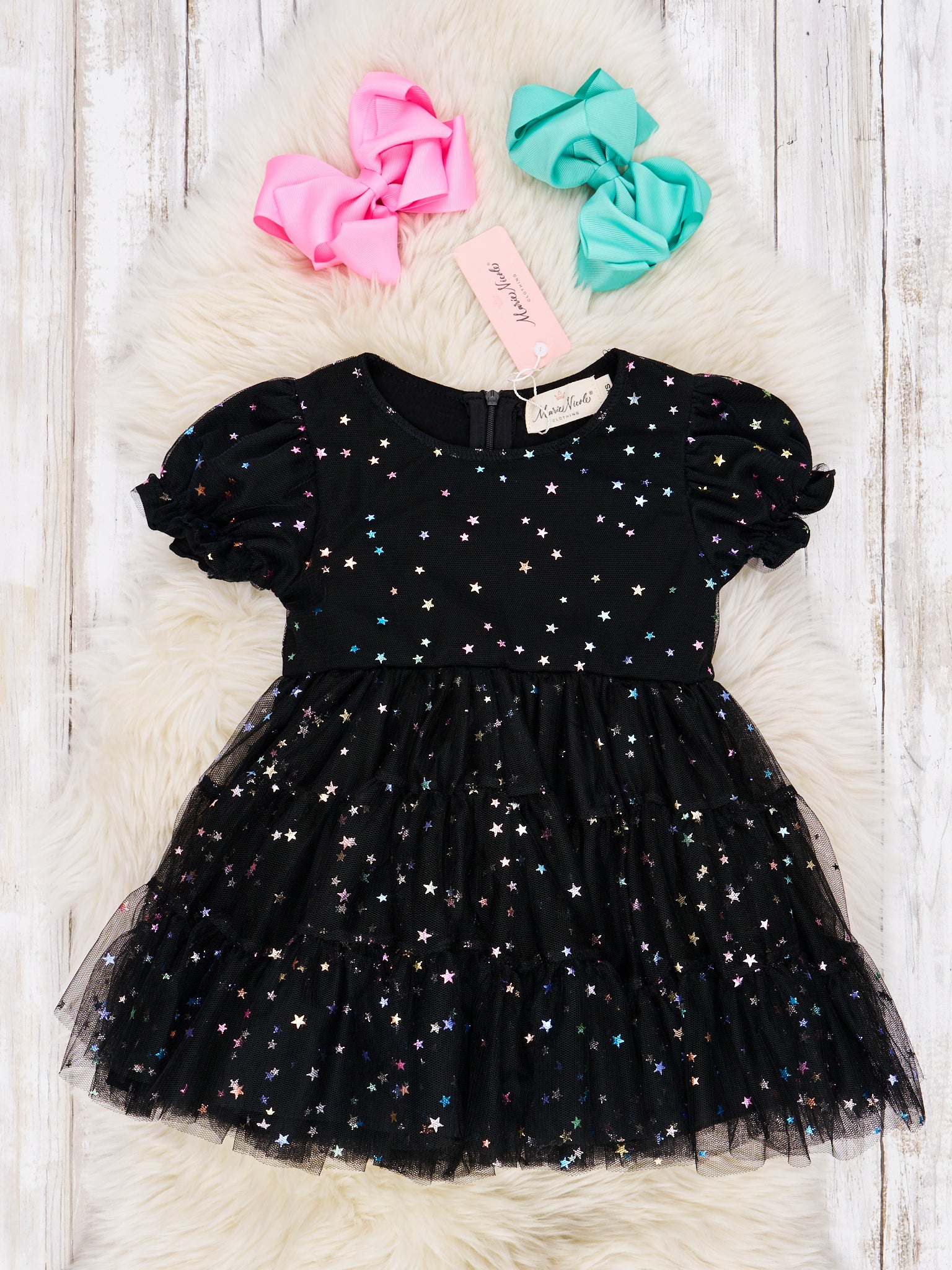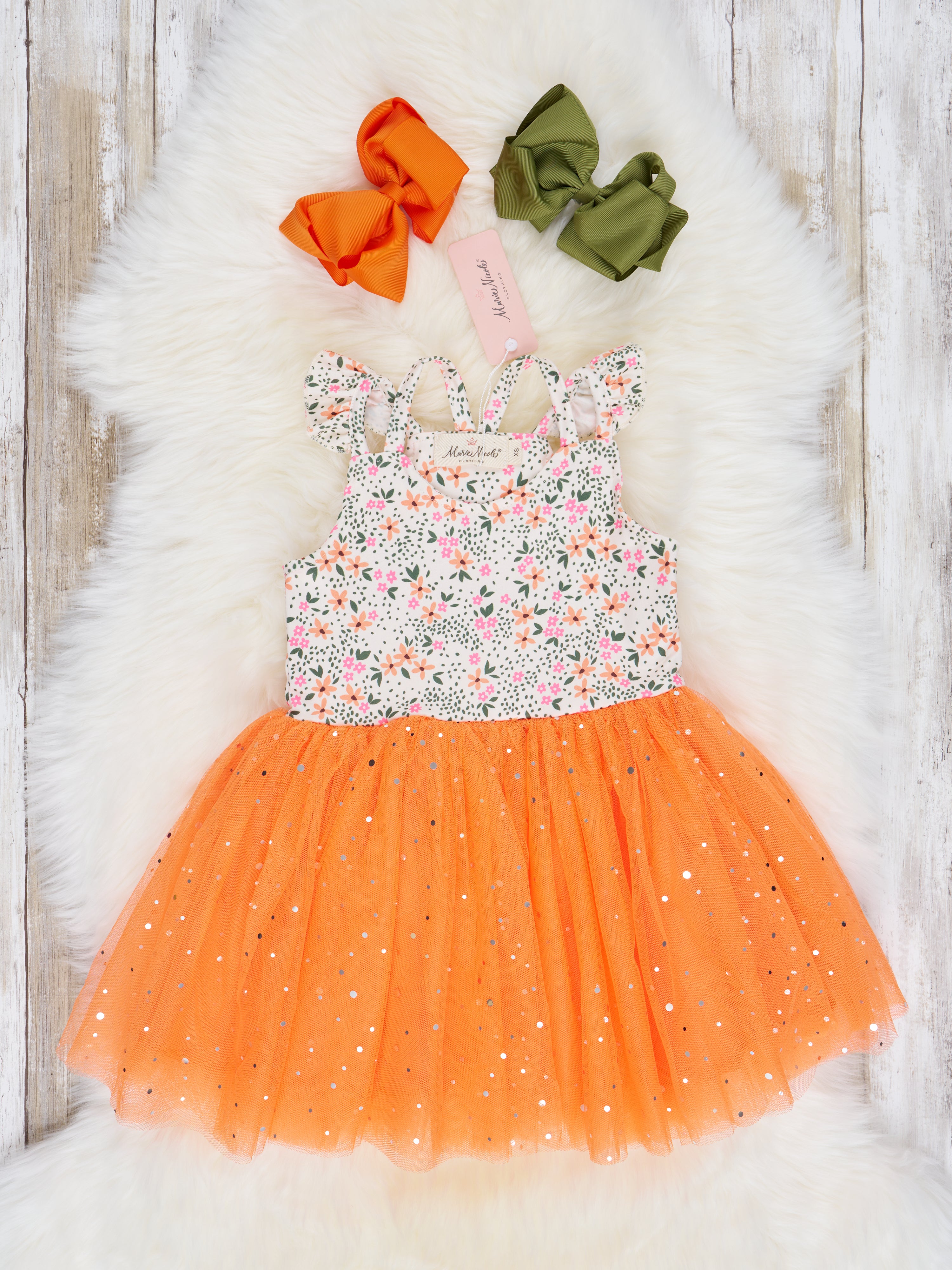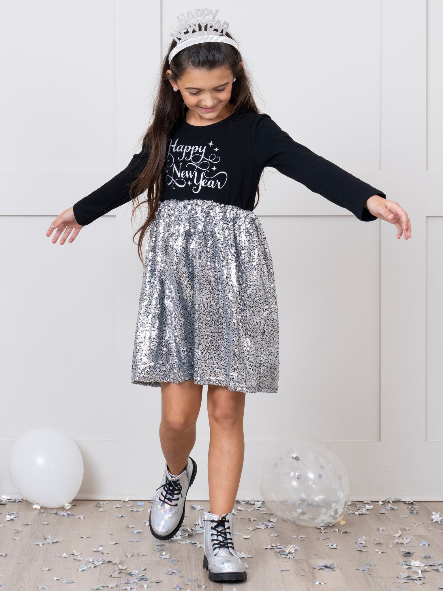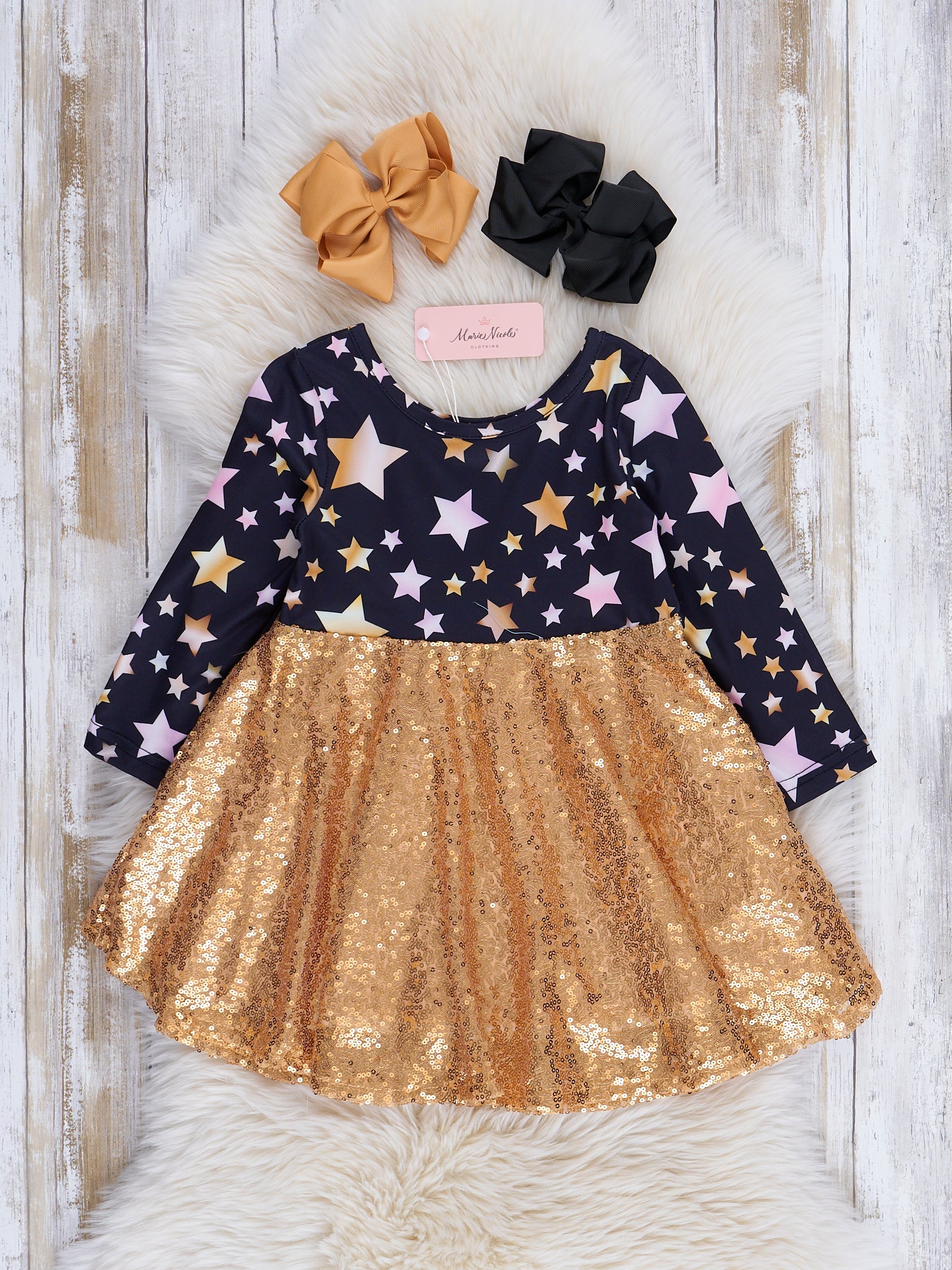 Gold Sparkle Party Long Sleeve Tulle Dress