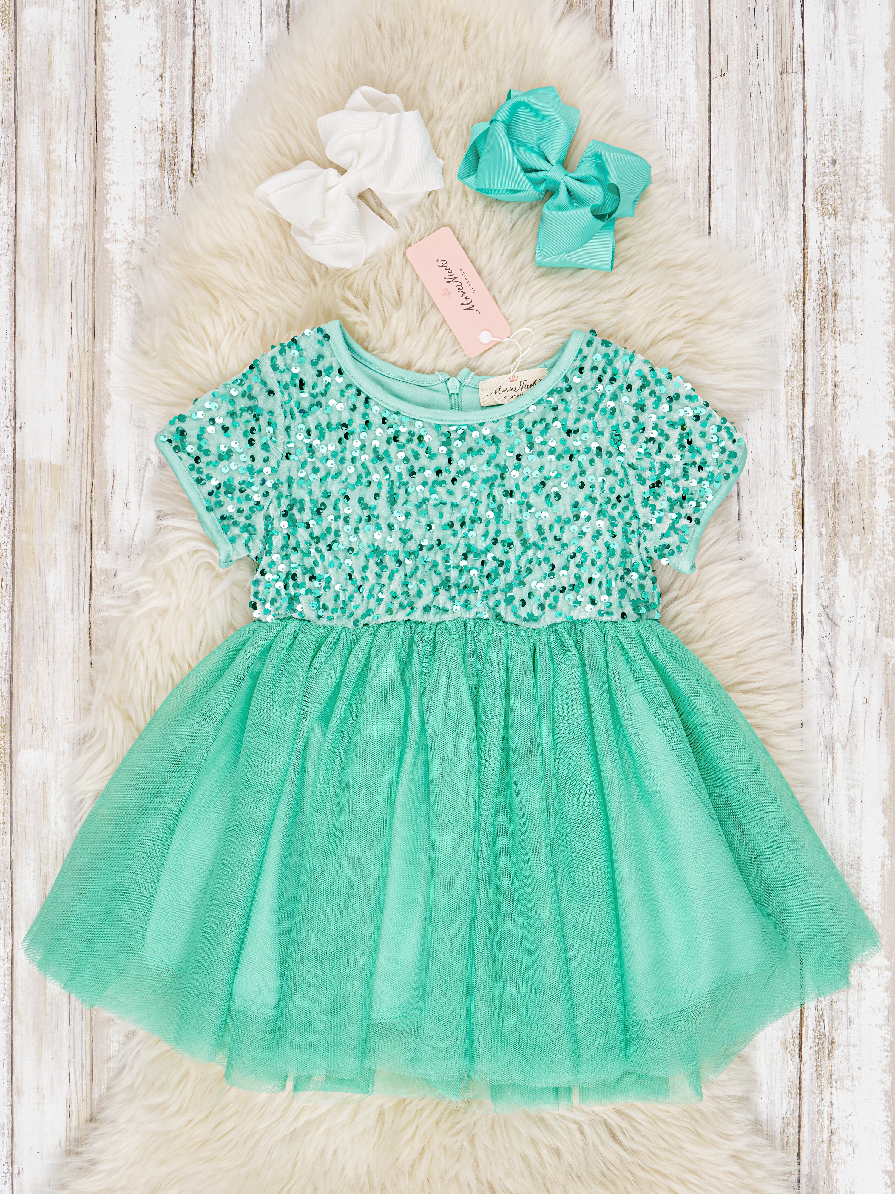 Emerald Sparkle Party Long Sleeve Tulle Dress