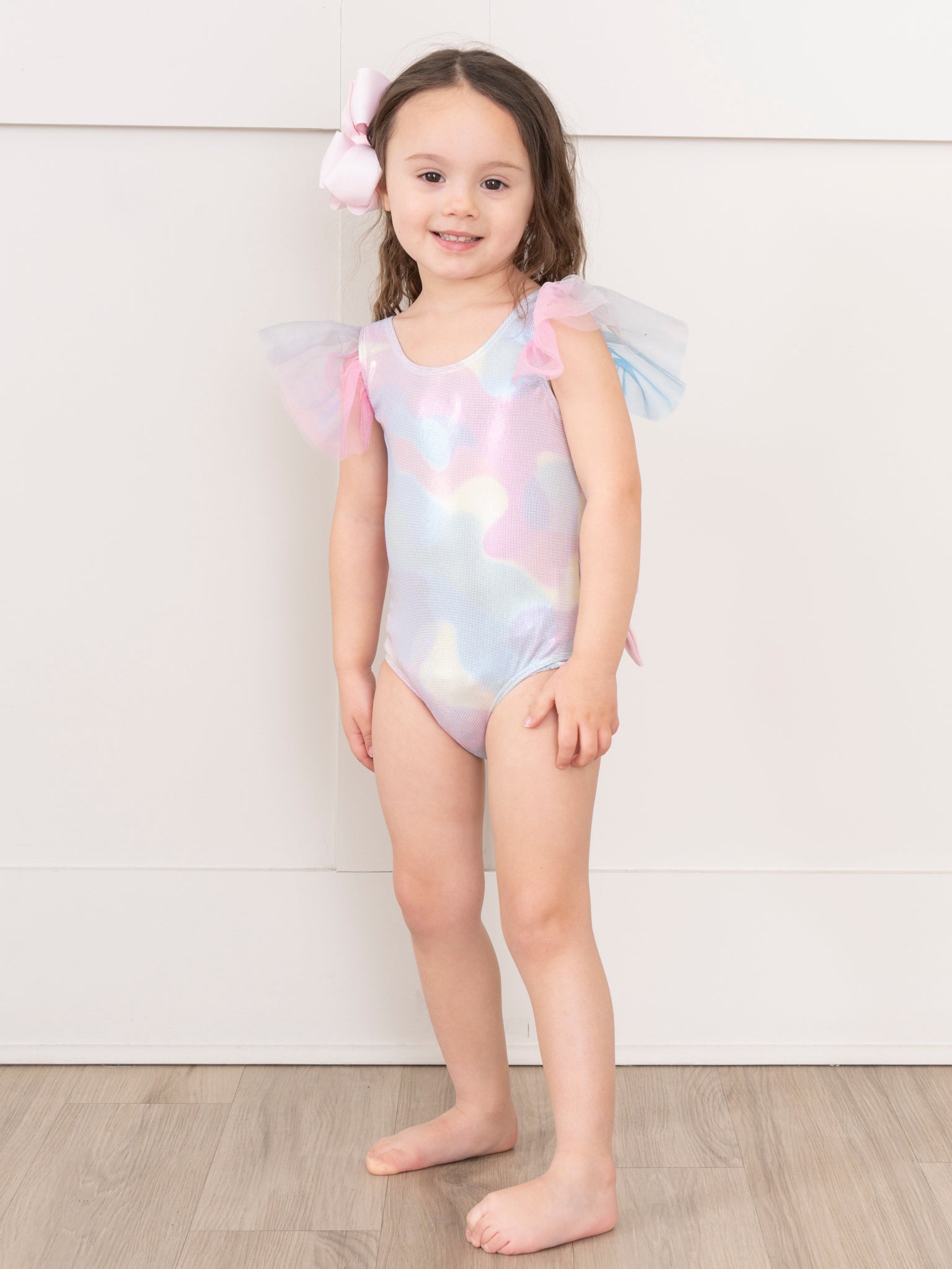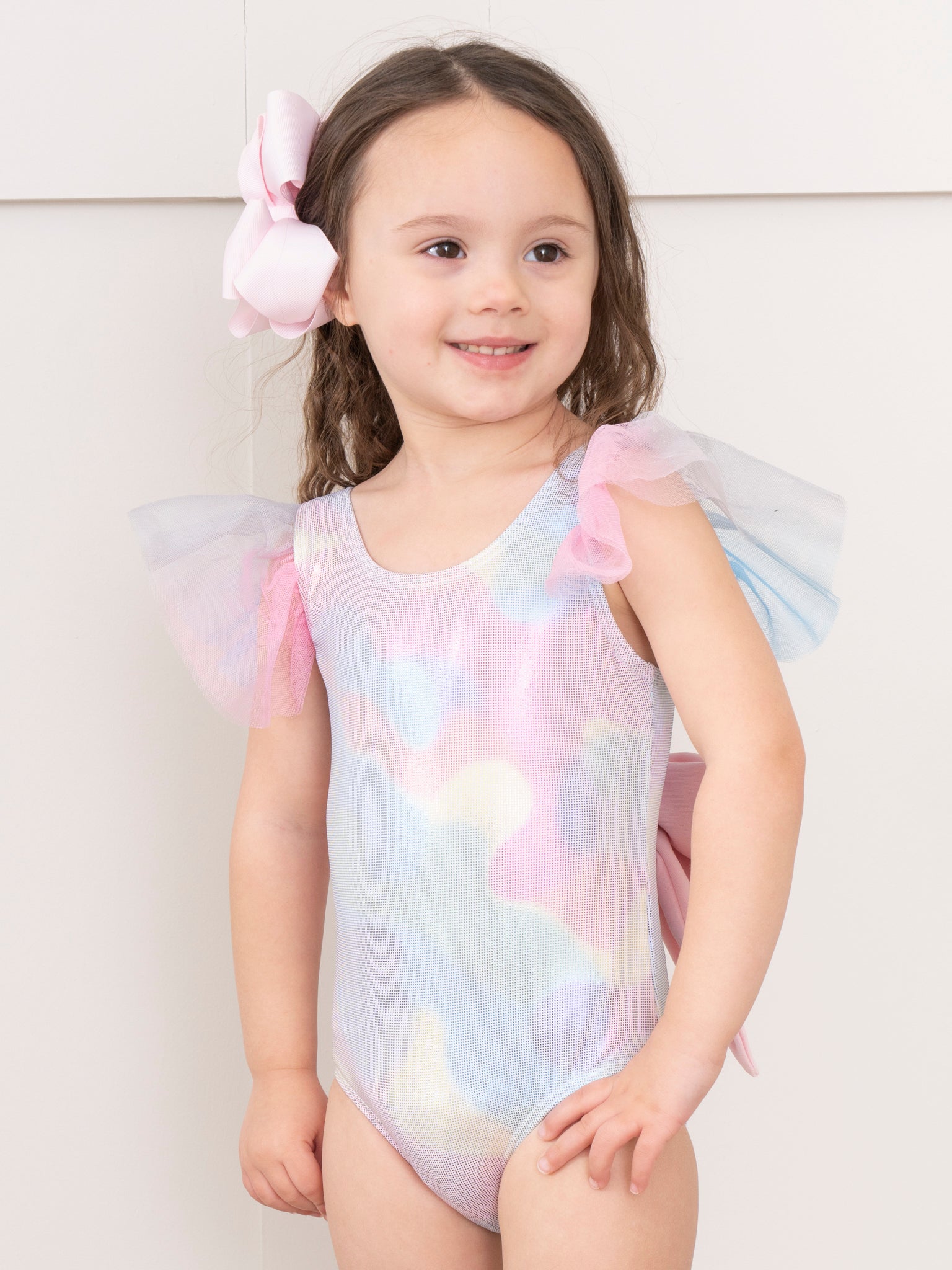 Rainbow Holographic Tulle Ruffle Swimsuit