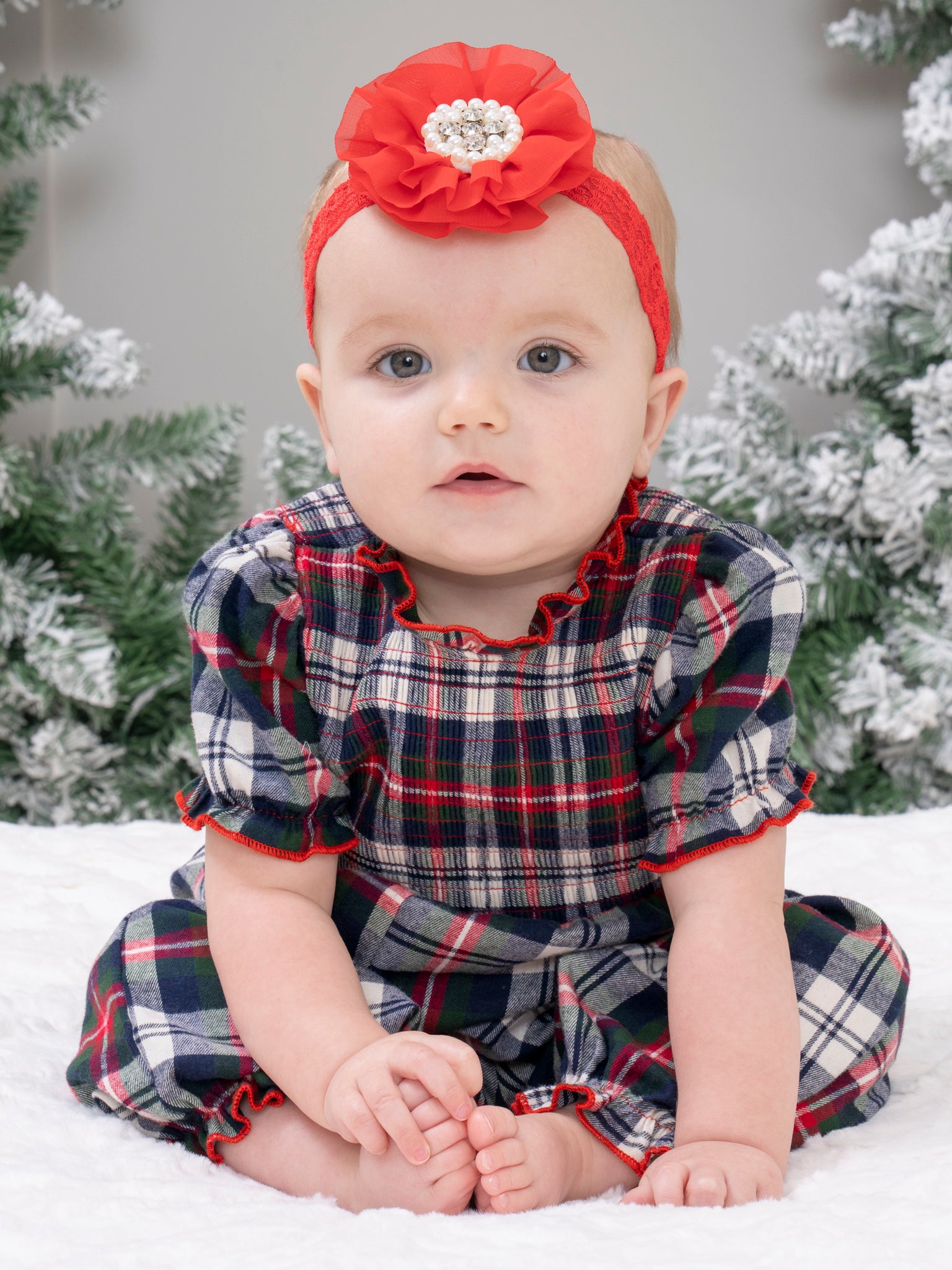 This precious plaid romper is perfect for the holidays. It’s dressy enough for a special occasion but still comfy for baby.