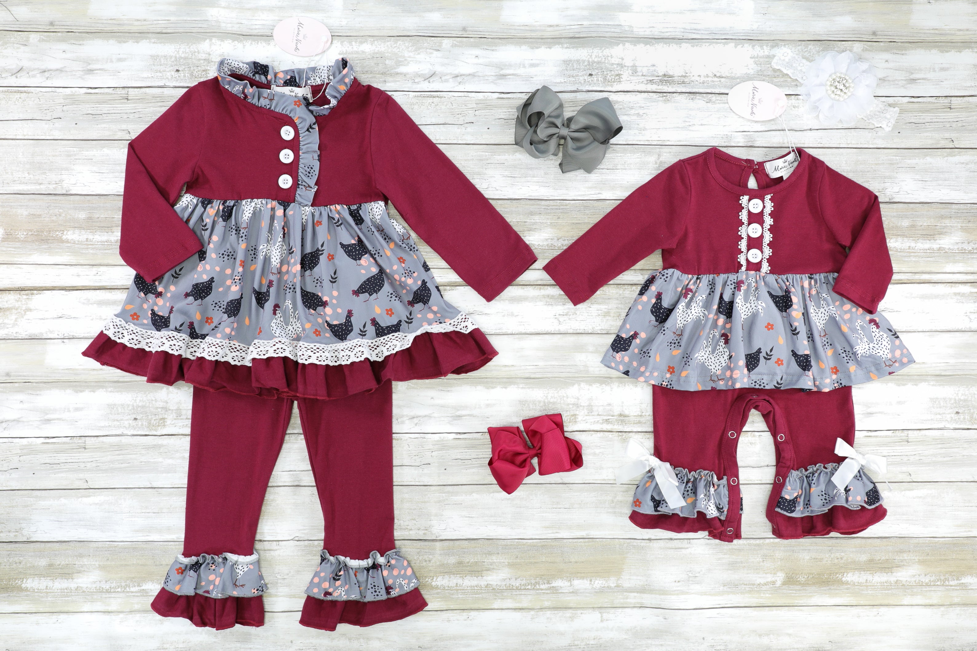 Maroon & Grey Chicken Ruffle Outfit
