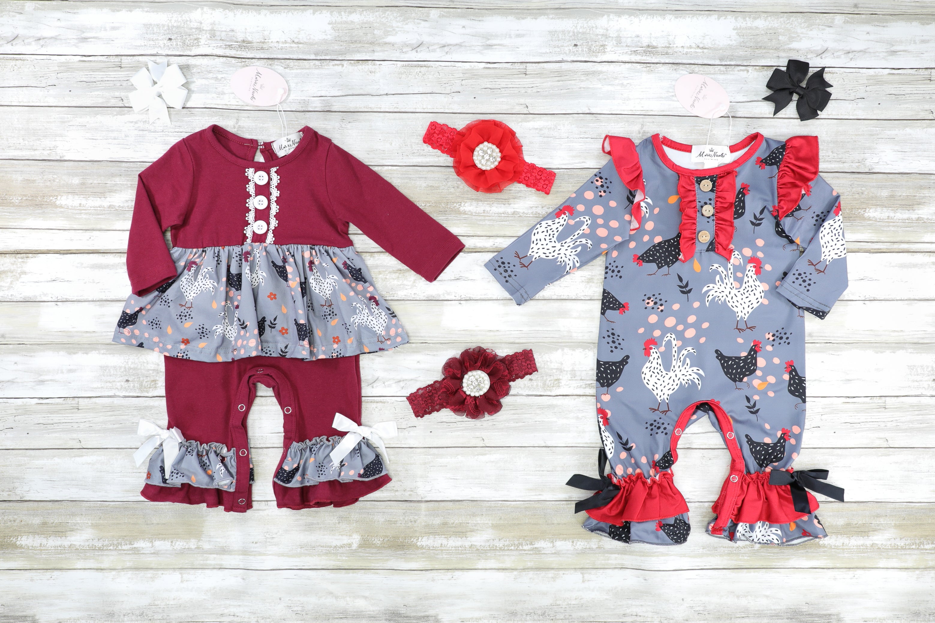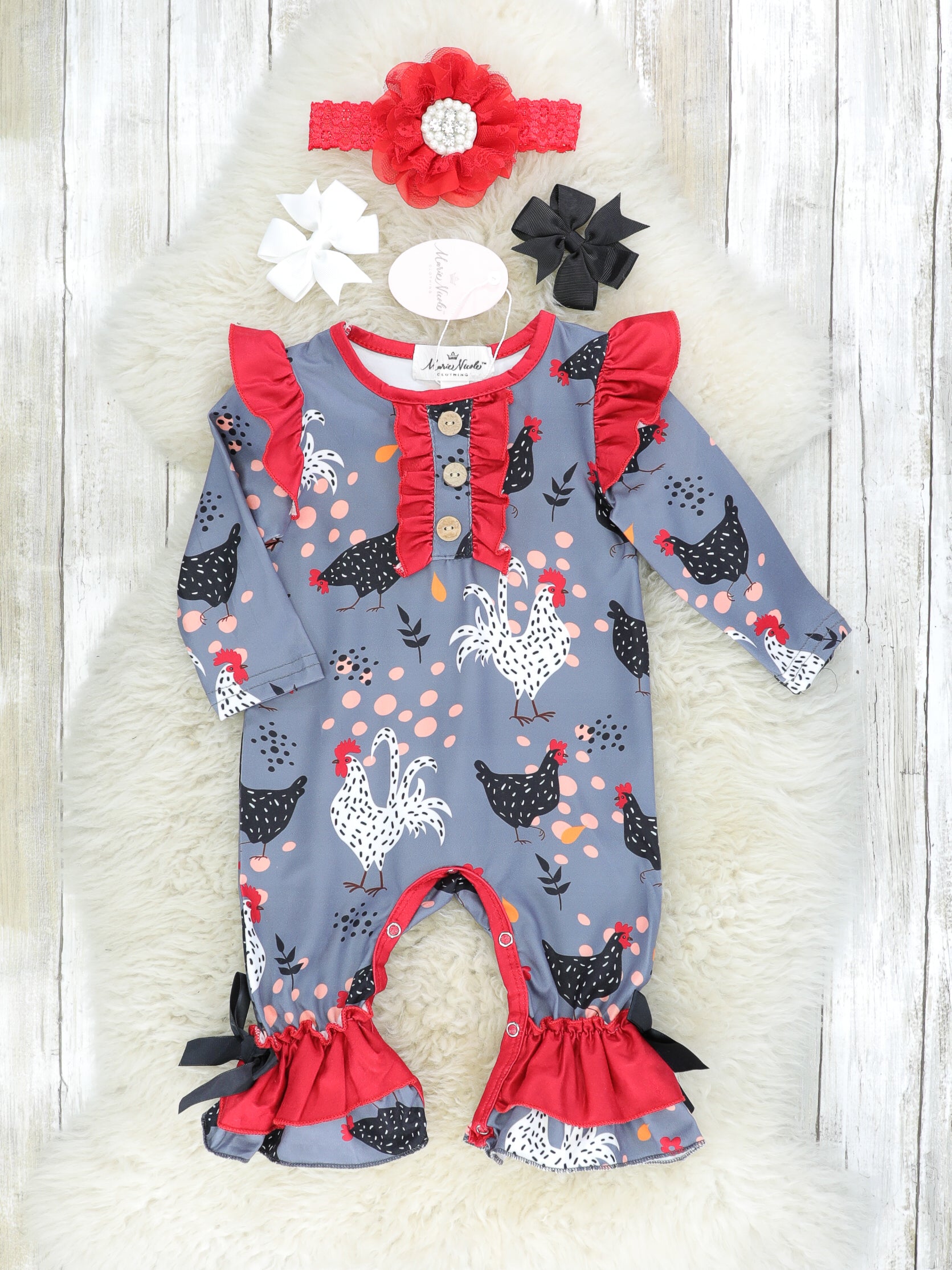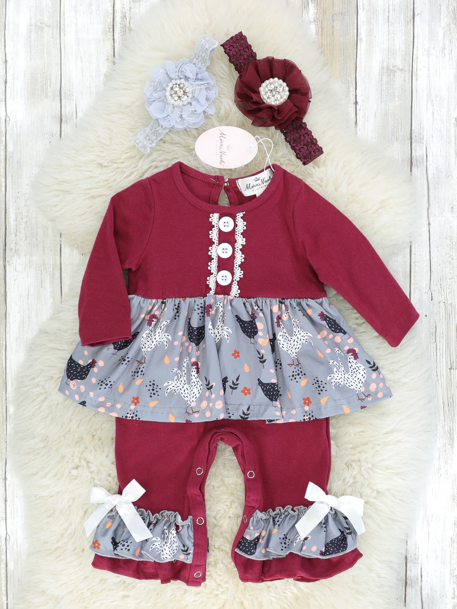Maroon & Grey Chicken Ruffle Romper