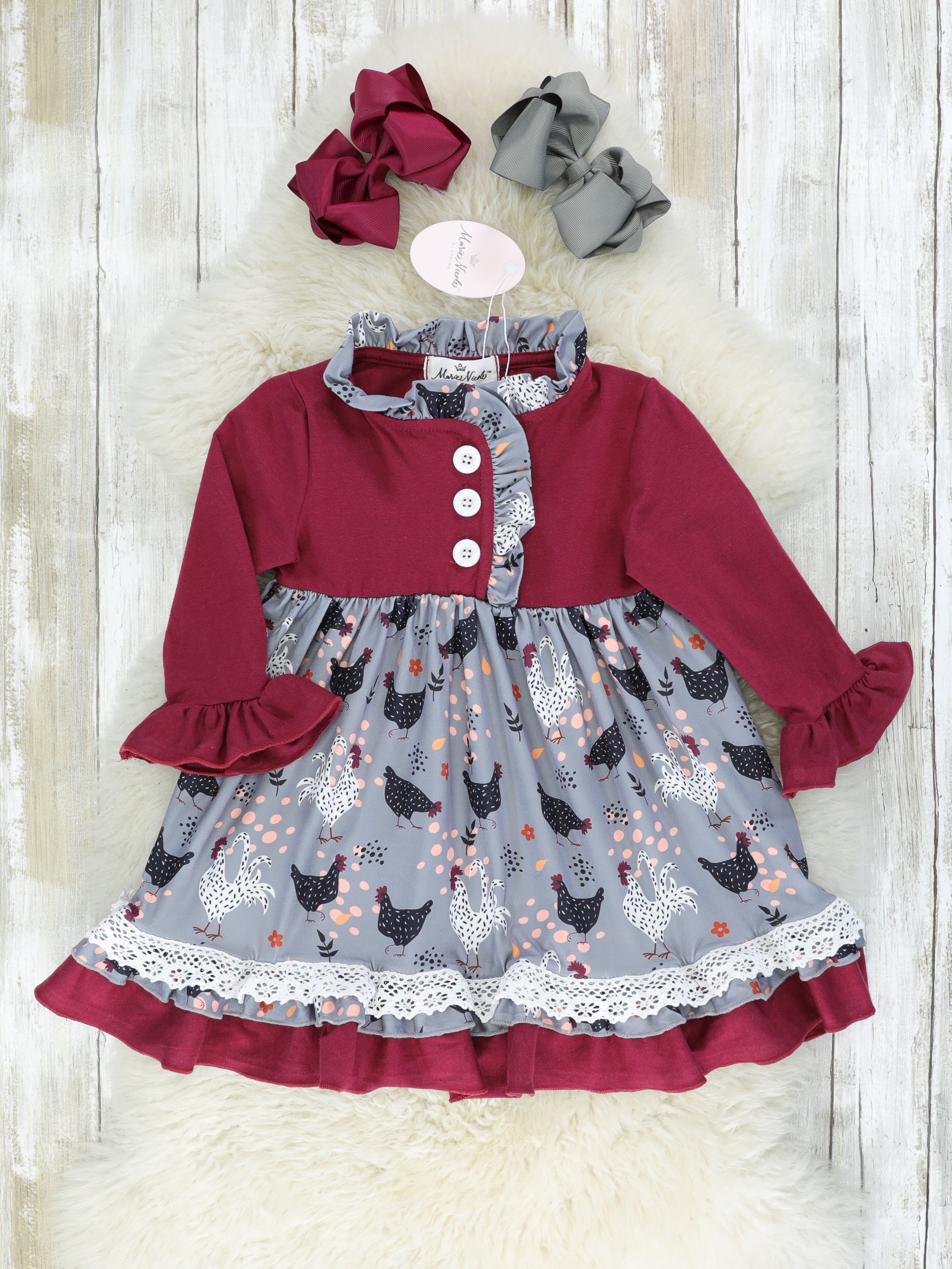 Maroon & Grey Chicken Ruffle Dress