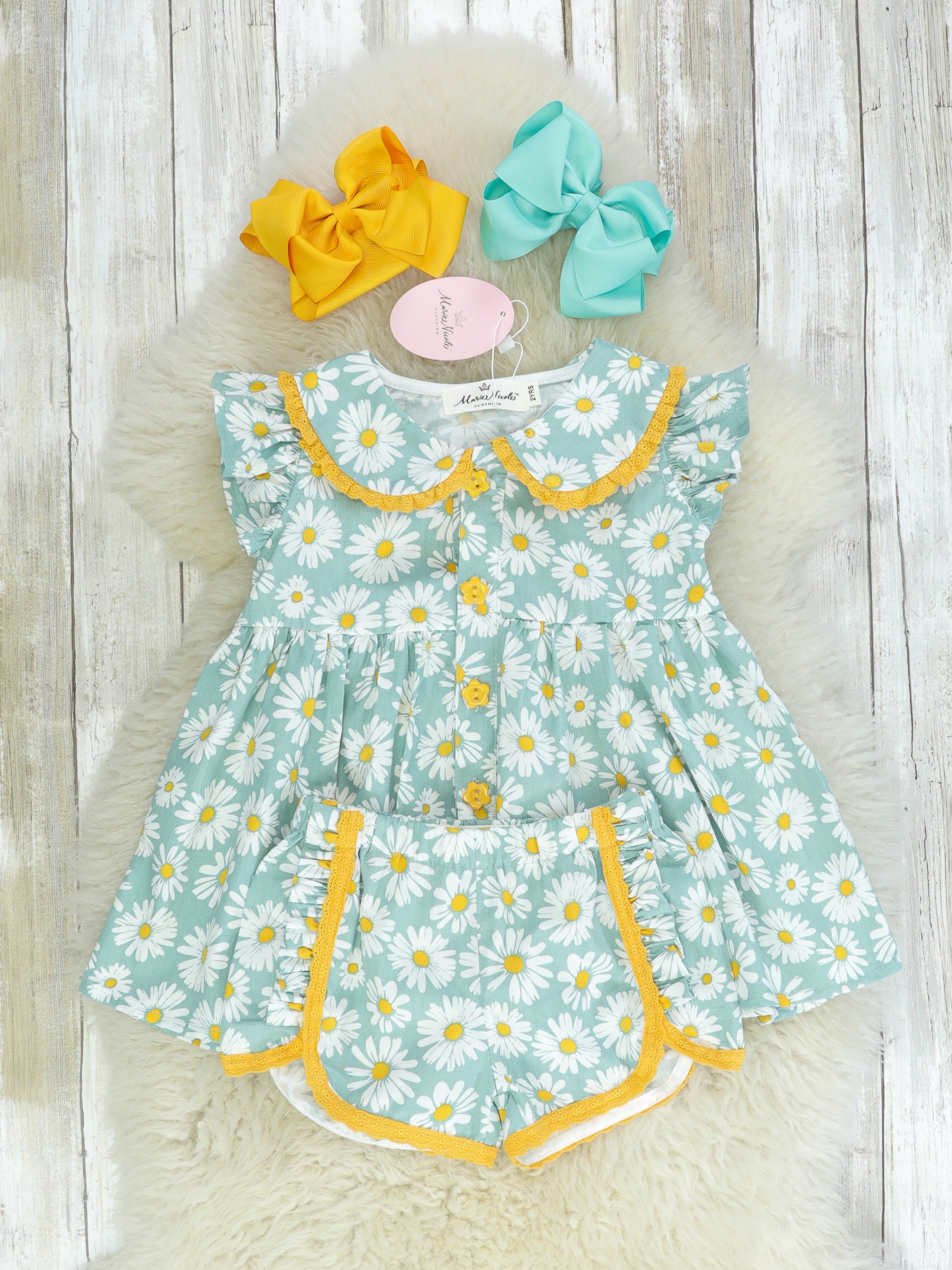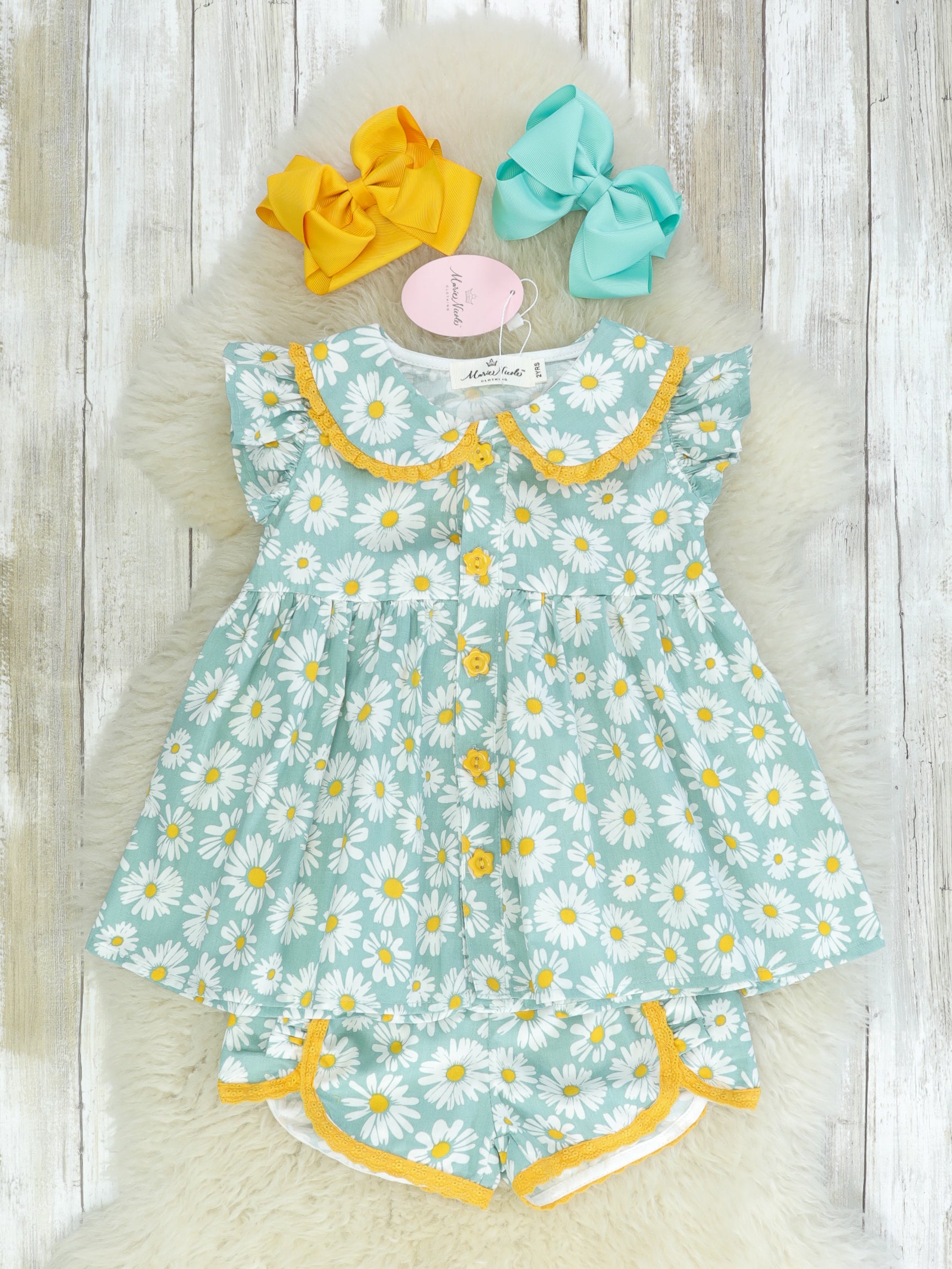 Spring Daisy Peplum Top & Ruffle Shorties Outfit