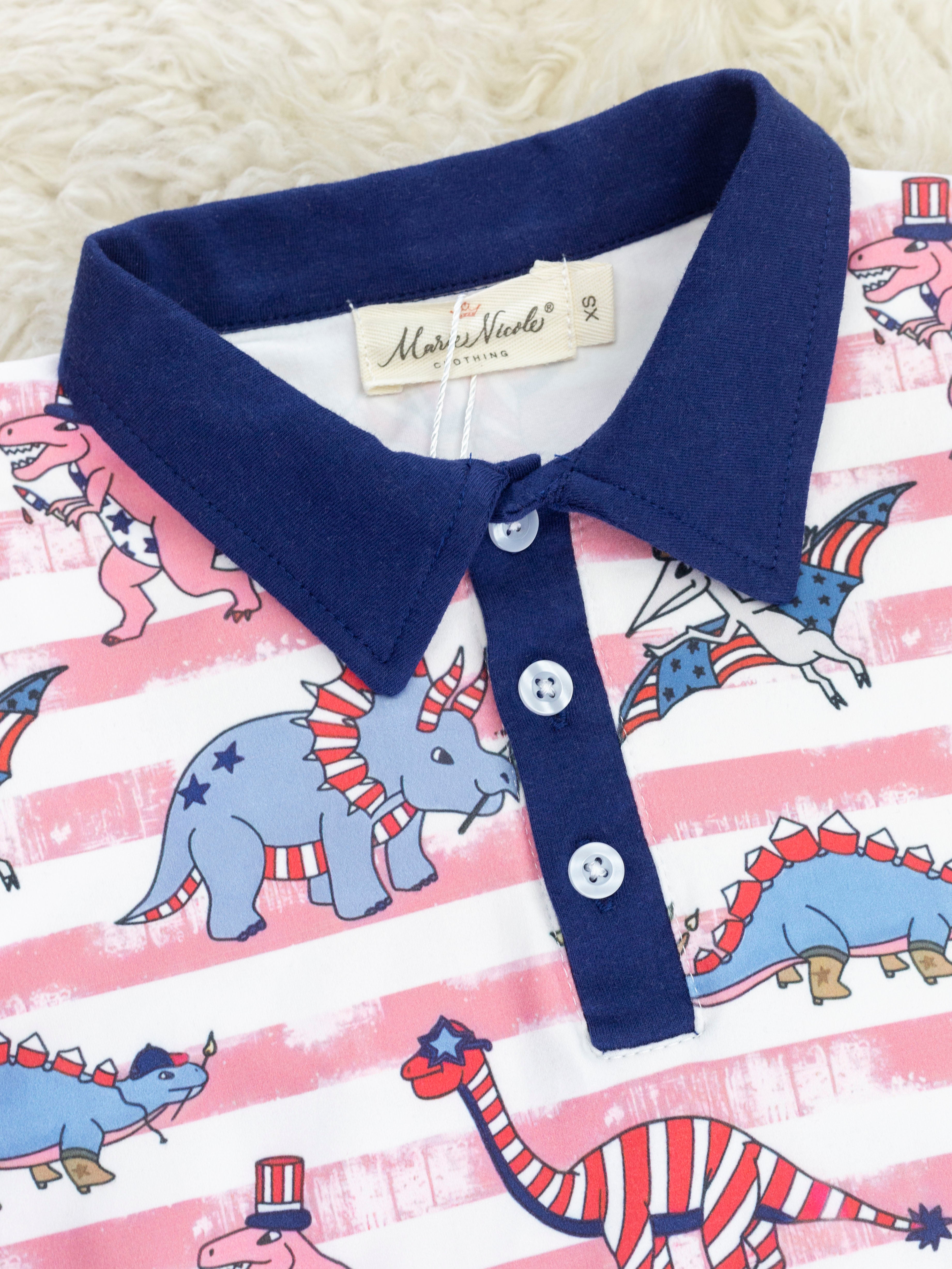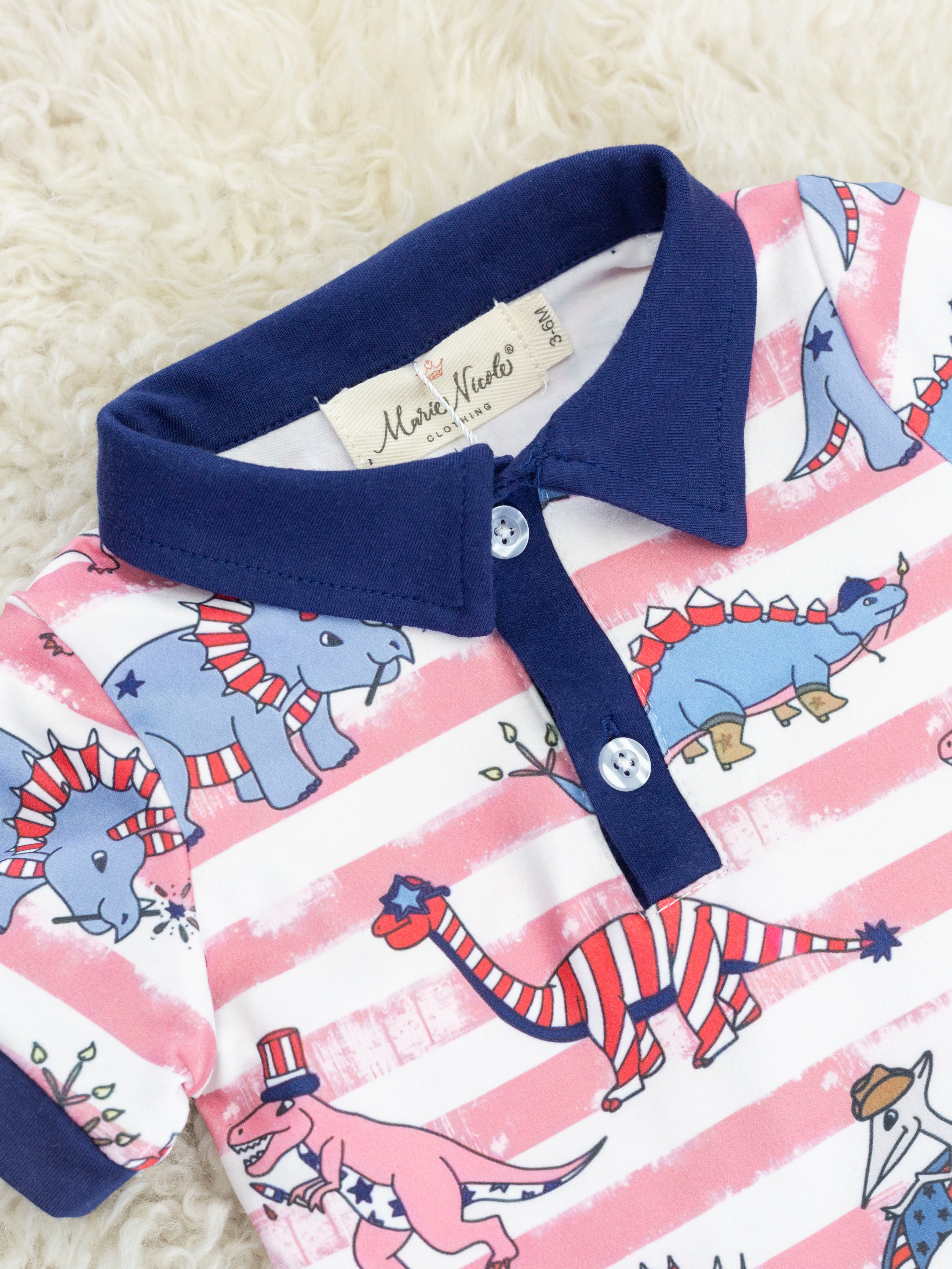 Stripe Dino Patriotic Polo Romper
