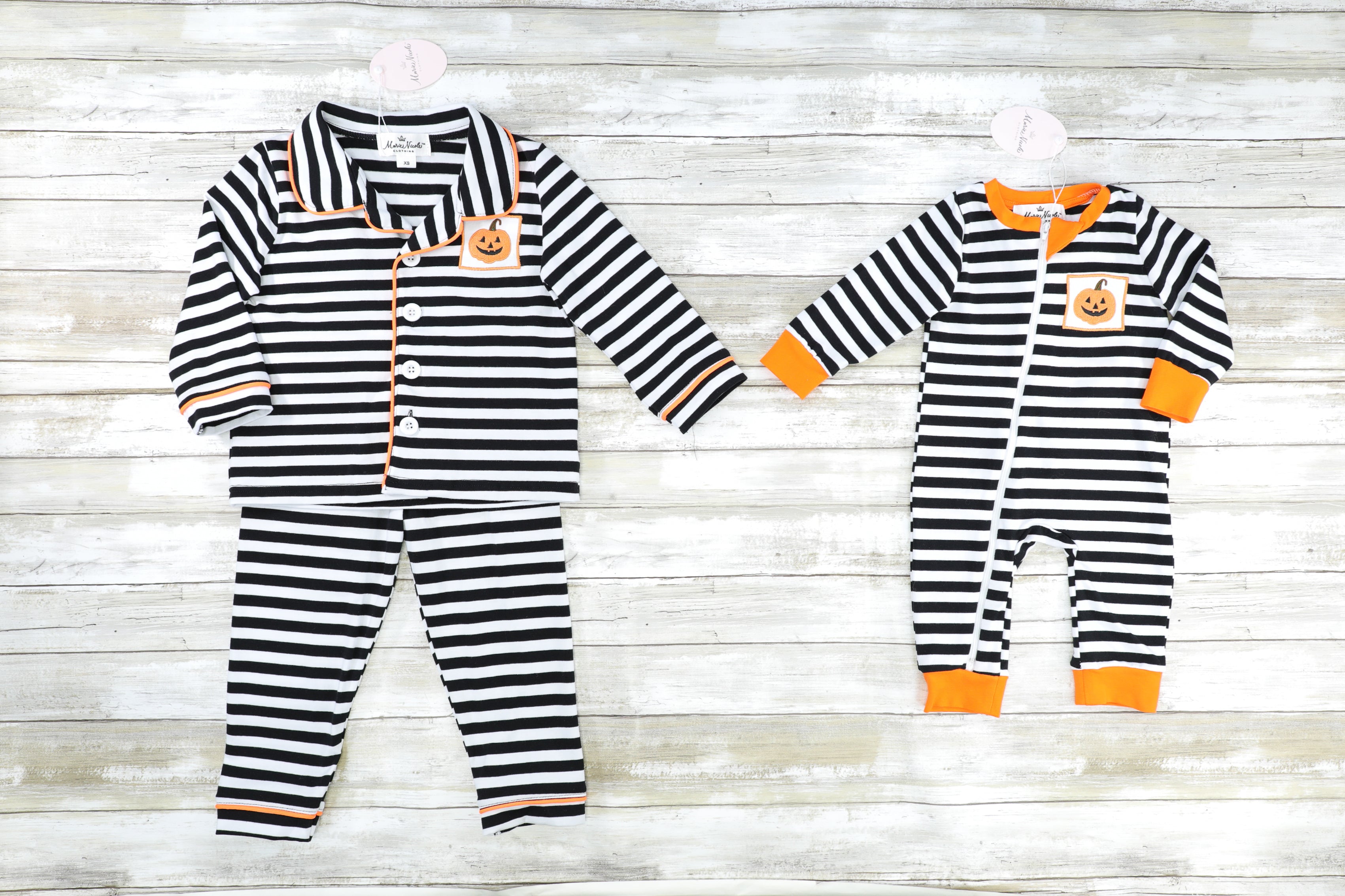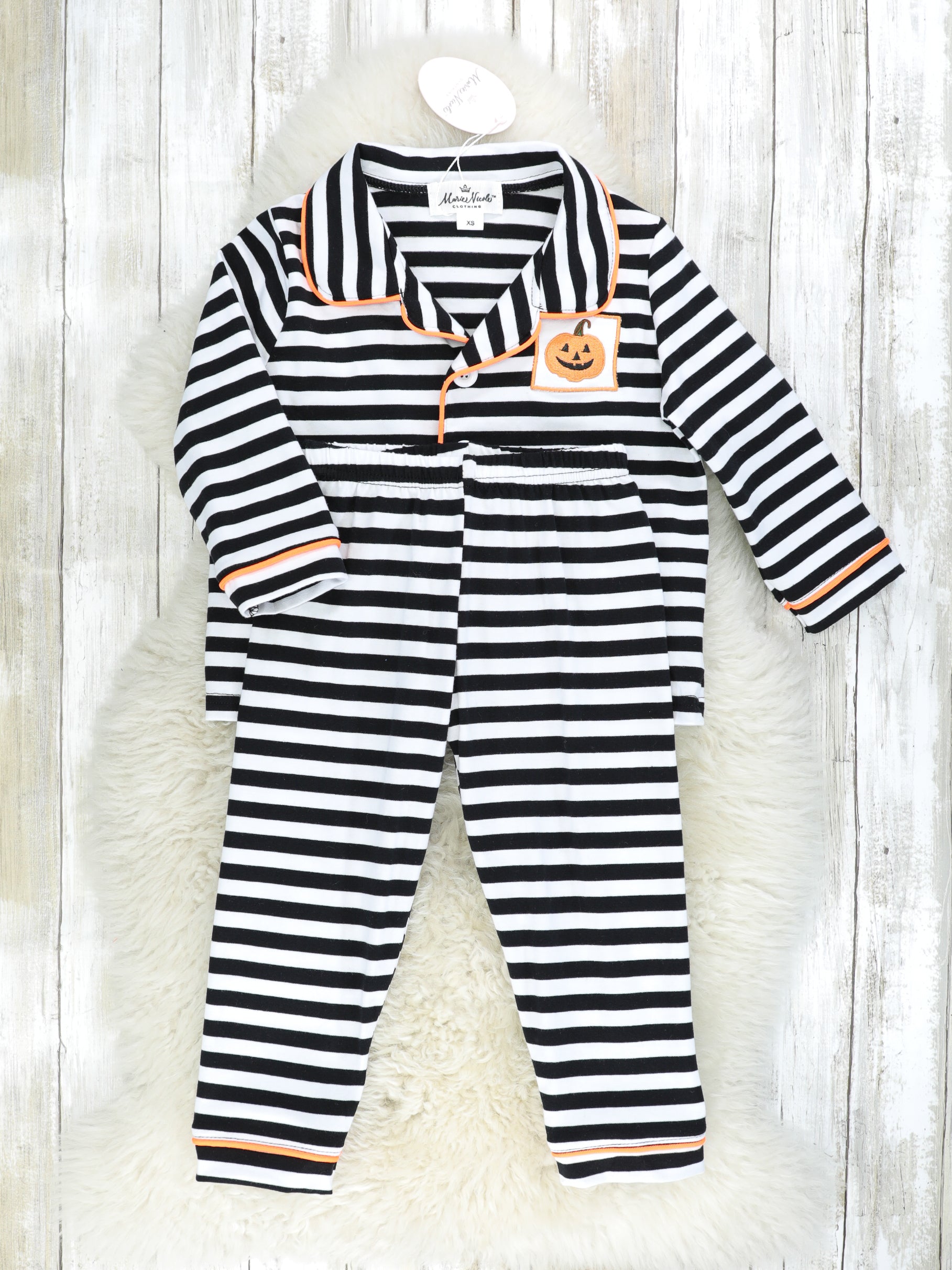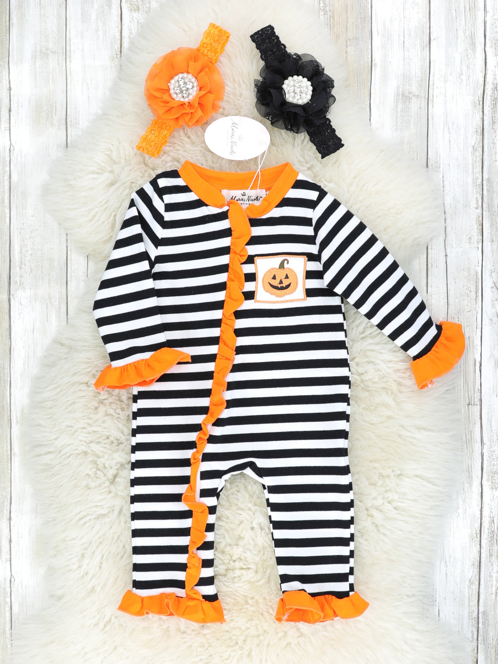 Striped Jack O Lantern Ruffle Romper Pajamas