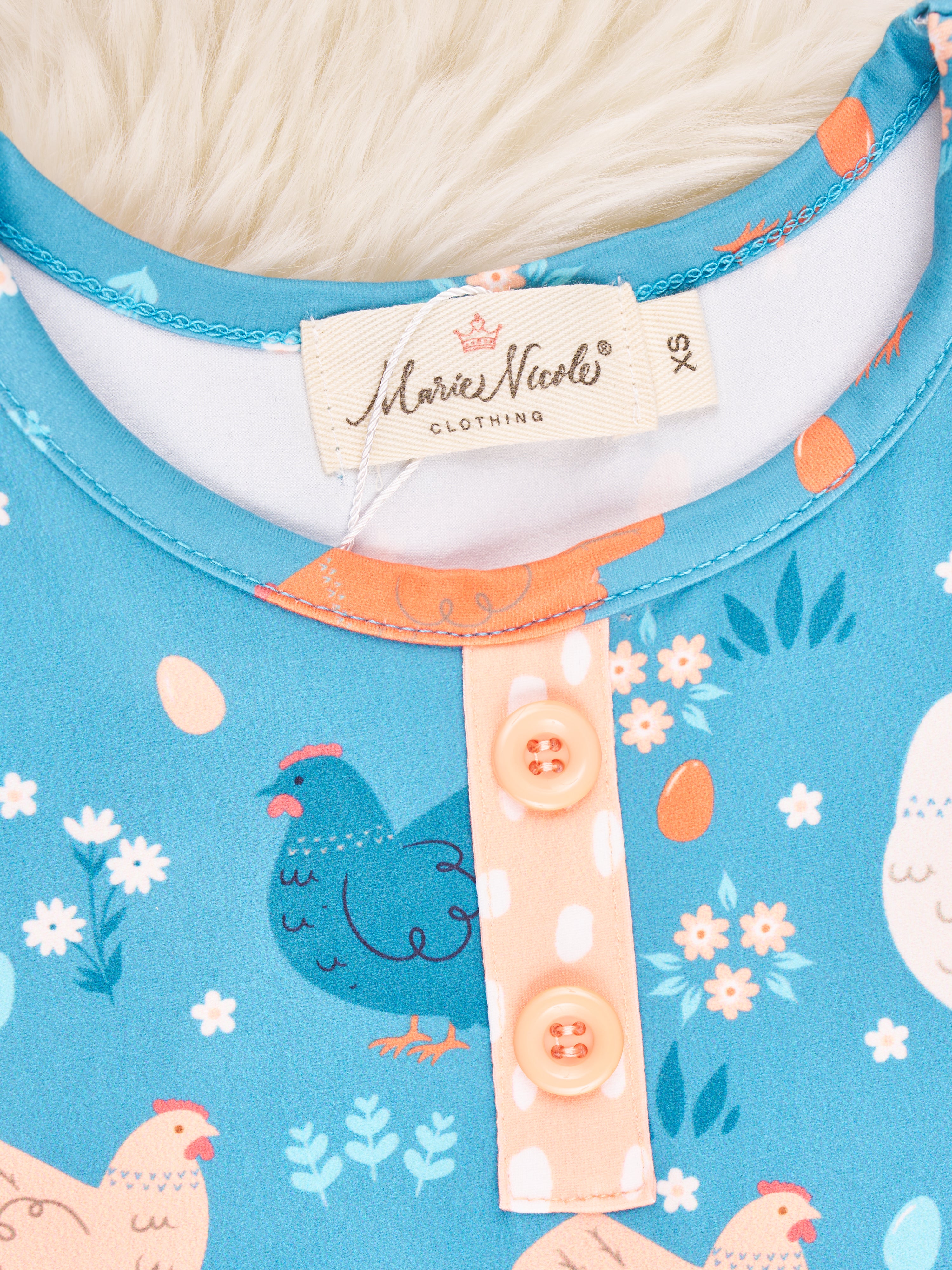 This is the perfect sister set for lounging in the sunshine, with a summer-ready chicken print and cute ruffles for that extra touch of warmth and style. The best part? It's just as comfortable as it is cute!
