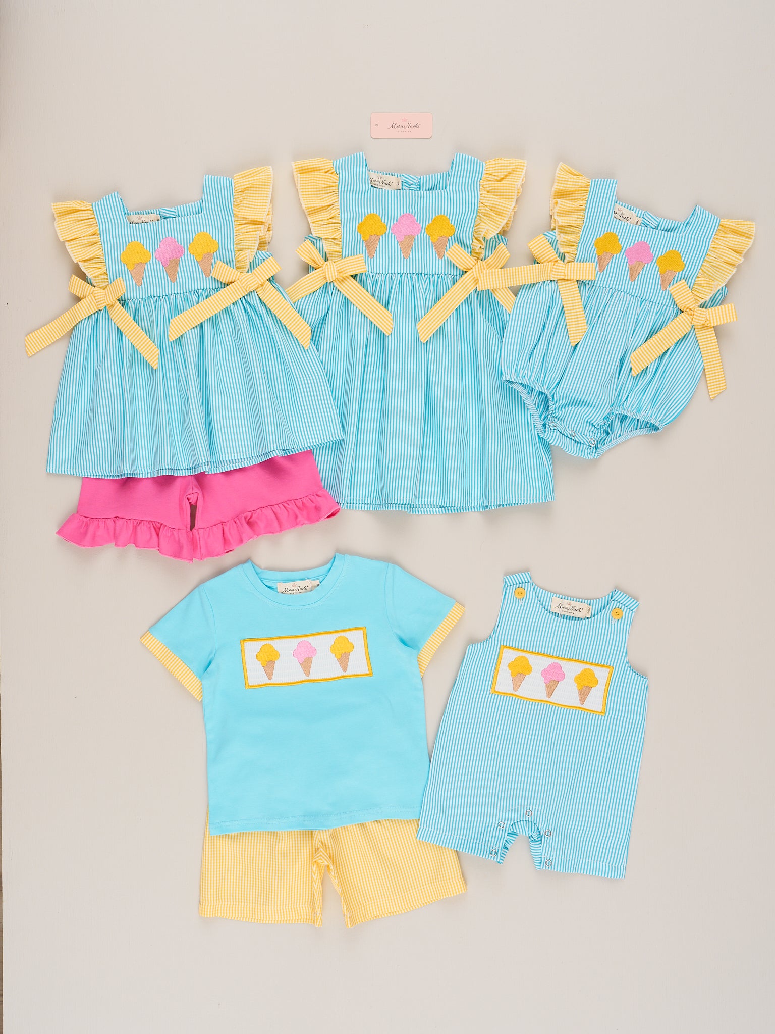 Brighten up summer days with the Neon Ice Cream Cones Ruffle Bubble from Marie Nicole Clothing! This playful bubble features fun ruffle detailing with embroidered ice cream cones that scream sweet summer fun. Made from soft, breathable cotton, it’s perfect for keeping little ones cool and comfy on sunny adventures.