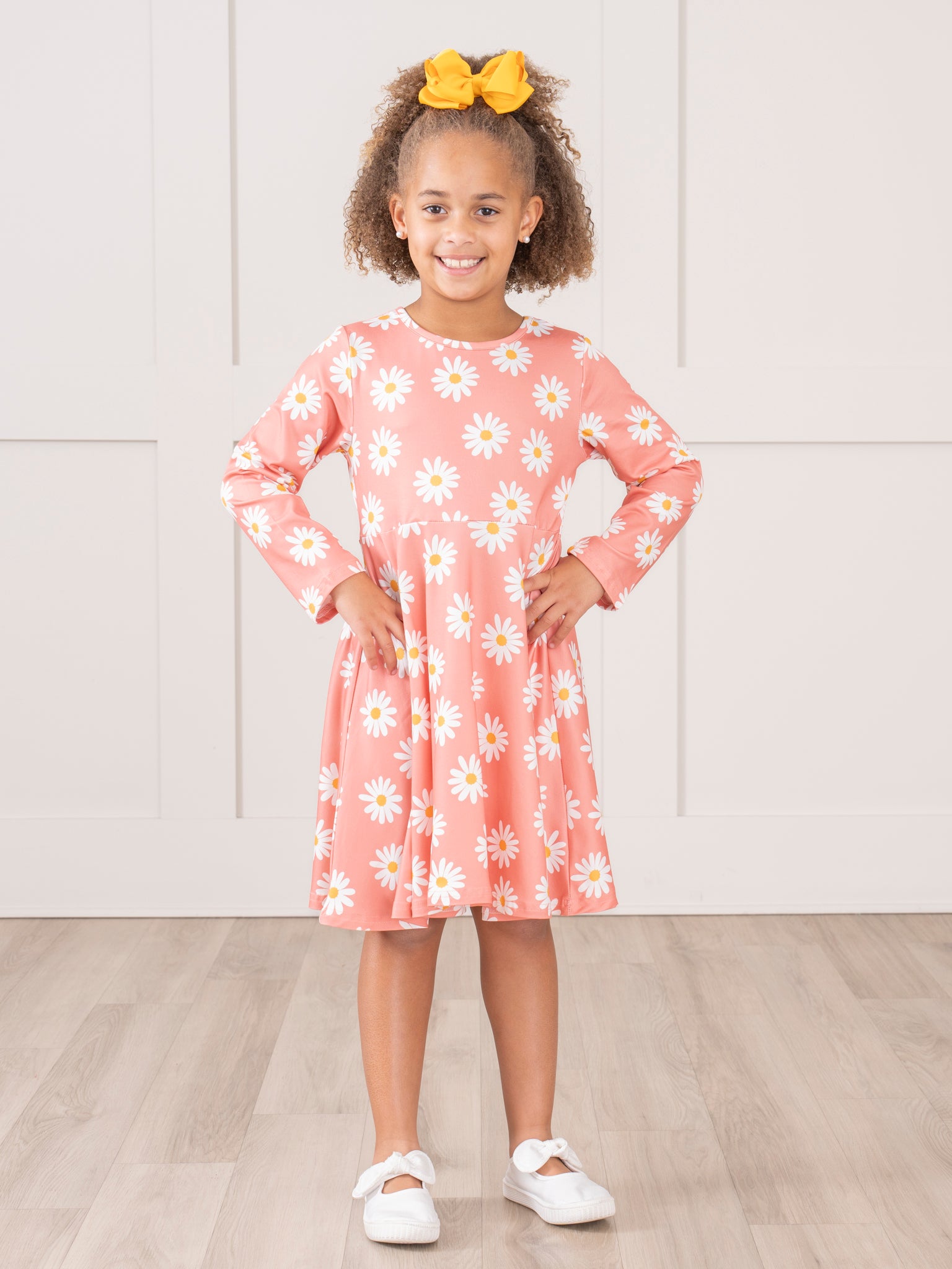 Kisses & Keys Valentines Bell Sleeve Dress Peach Watercolor Daffodil Doodles Bright Wildflowers Sunflower Blooms Peach Daisy Blue Rescue Colorful Wheels Fire Engine Road Travelers + 7 more