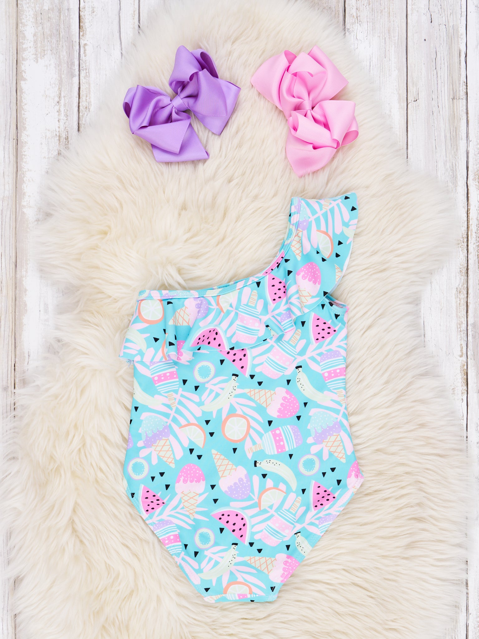 Sweet Treats Asymmetrical Ruffle Swimsuit