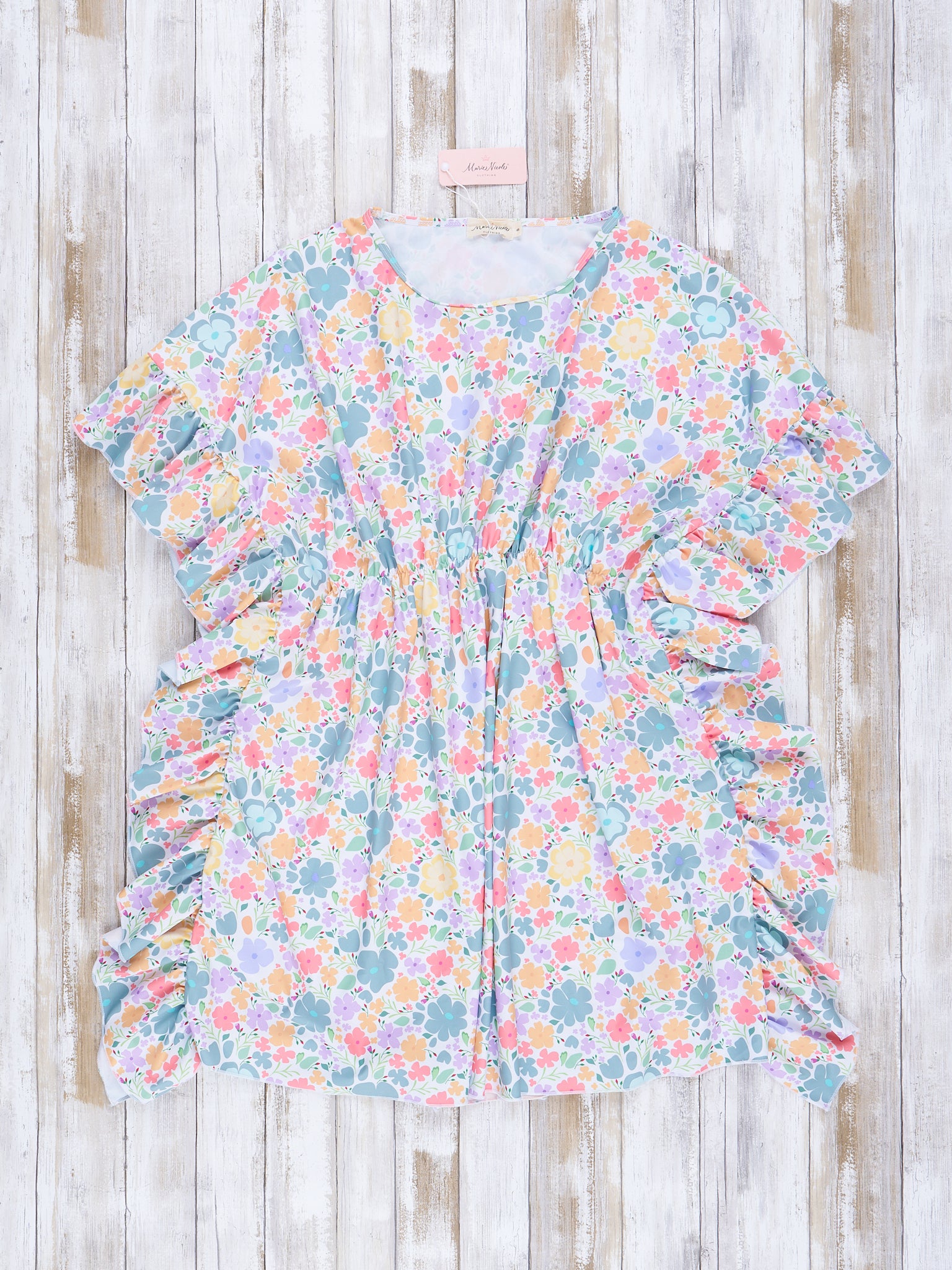 Introducing the perfect swim coverup for you and your little one! The Mom & Me Green Marigolds Swim Cover Up is not only adorable, but also functional. Made from lightweight material, it's perfect for keeping you both protected from the sun while looking stylish.