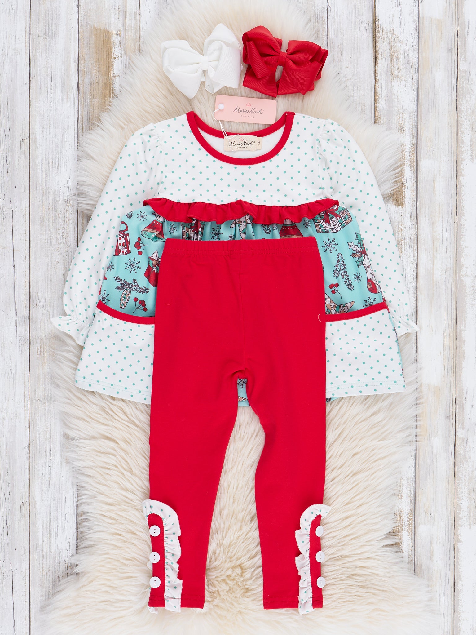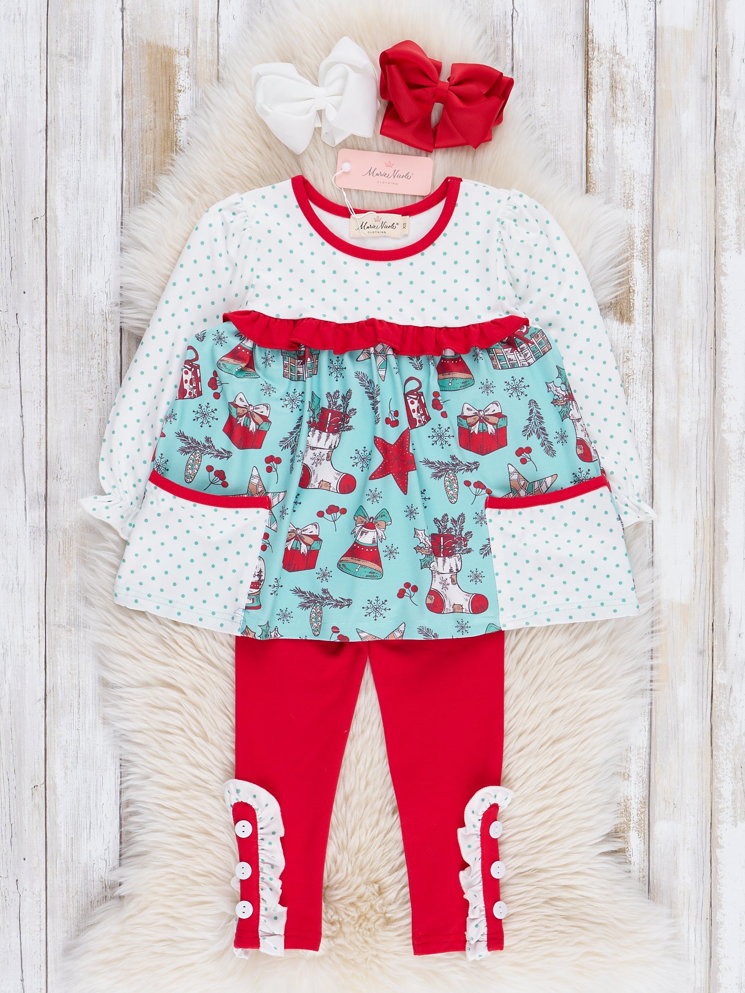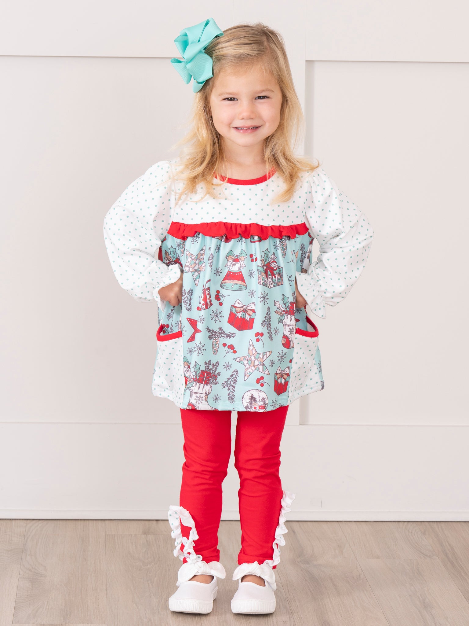 Teal & Red Holiday Joy Ruffle Outfit