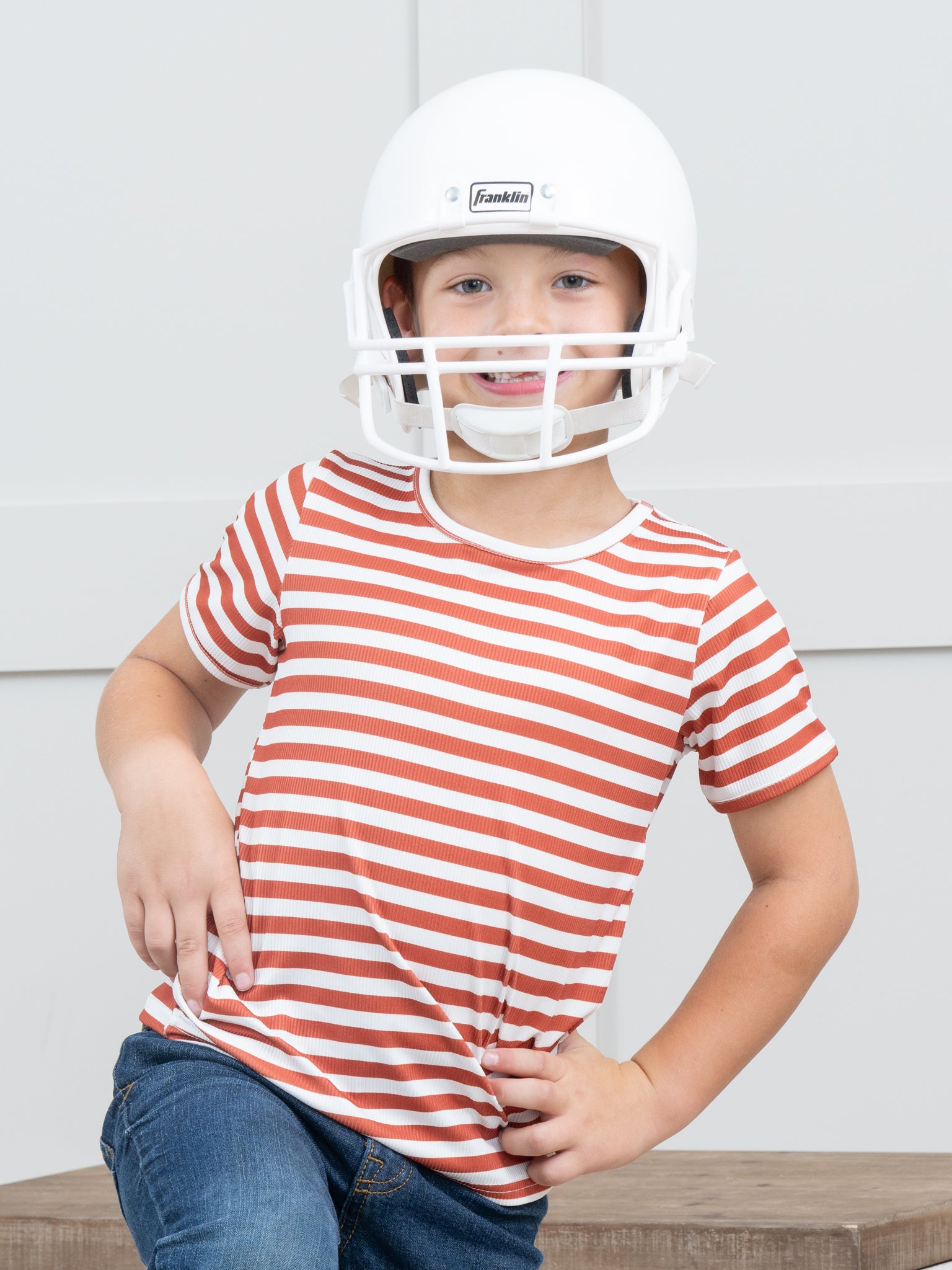 Stay stylish with this family-friendly collegiate set! Our Burnt Orange Shirt comes in a fresh stripe design and is perfect for any family outing. Get your matching set now and show your sports-themed pride!