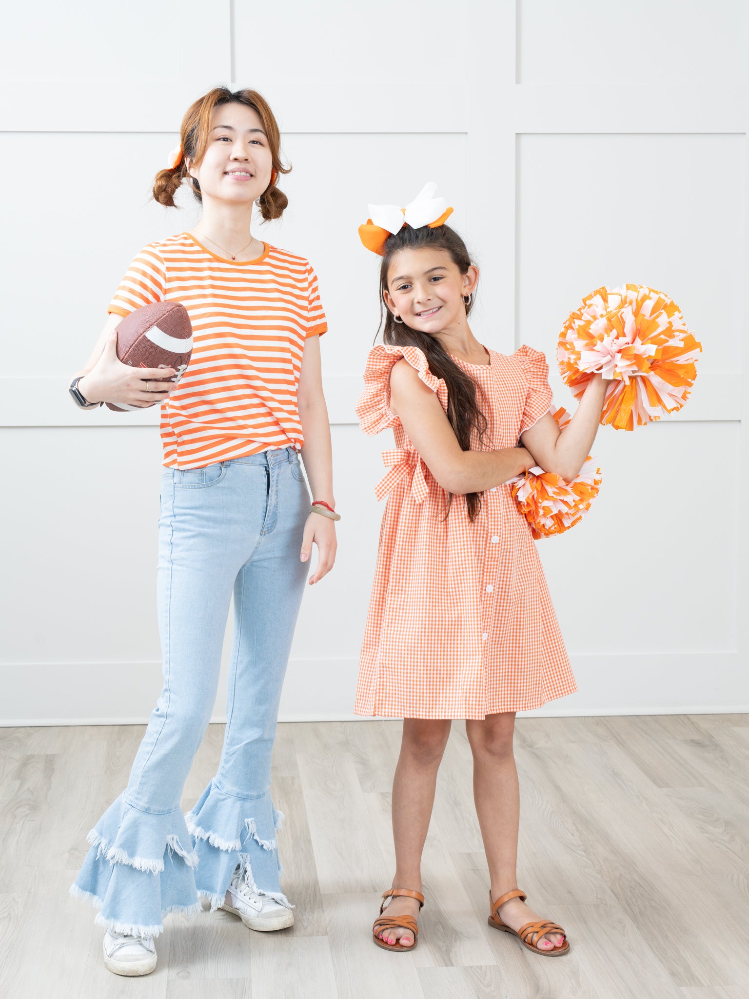 Stay stylish with this family-friendly collegiate set! Our Orange & White Shirt comes in a fresh stripe design and is perfect for any family outing. Get your matching set now and show your sports-themed pride!