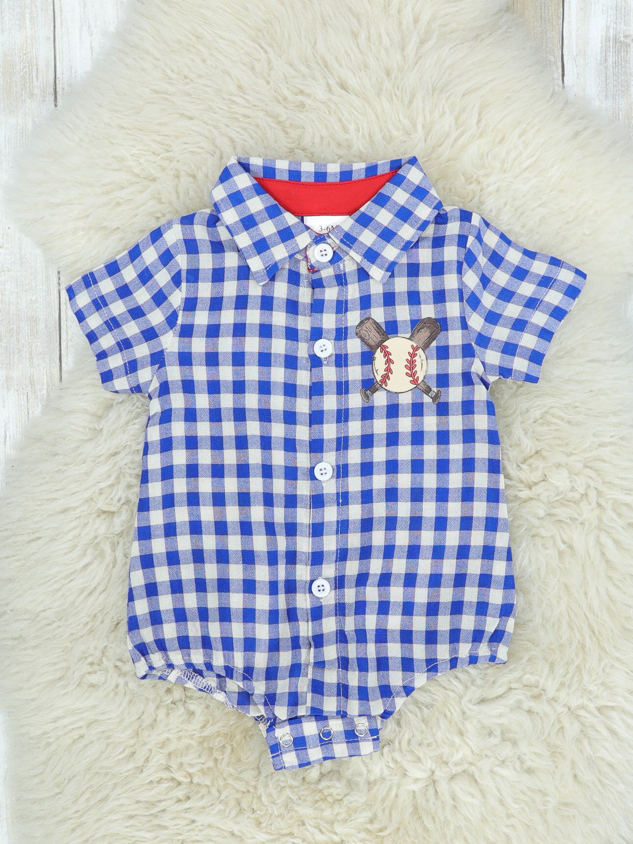 Blue Checked Baseball Button Up Romper