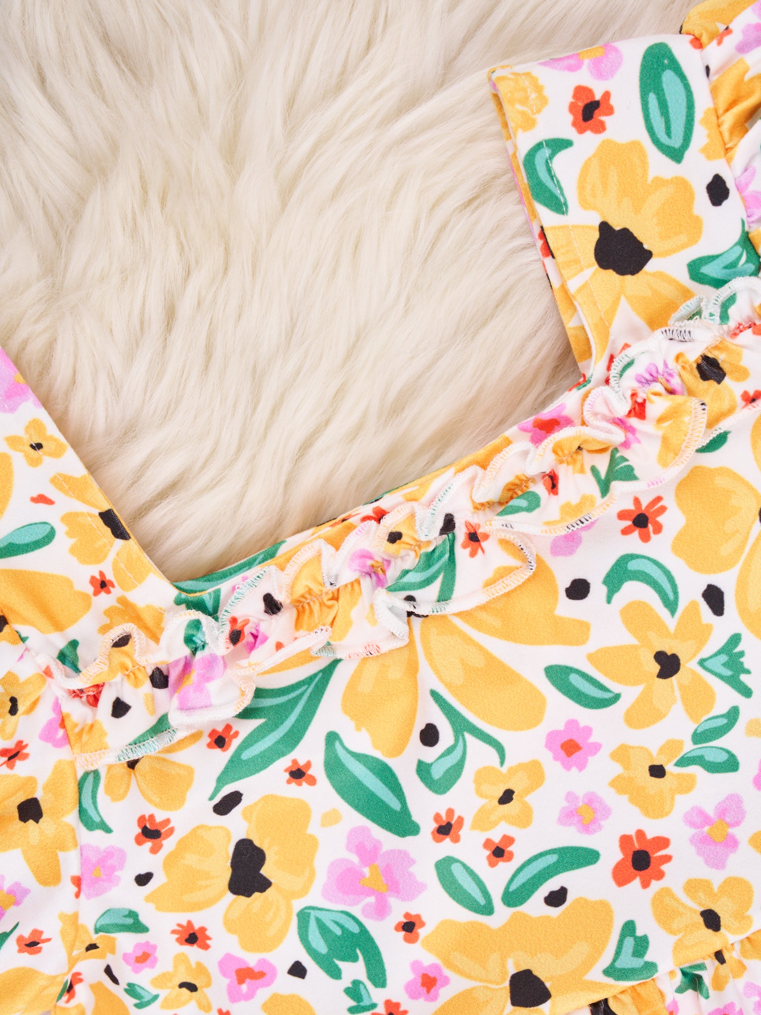 If your little ones love standing out from the crowd, they'll love this jazzy mustard floral sister set. With puff sleeves, ruffles, and bold florals, this stand-out dress will have your kids be-bopping all day long! With this must-have duo, they'll have the freshest look around!