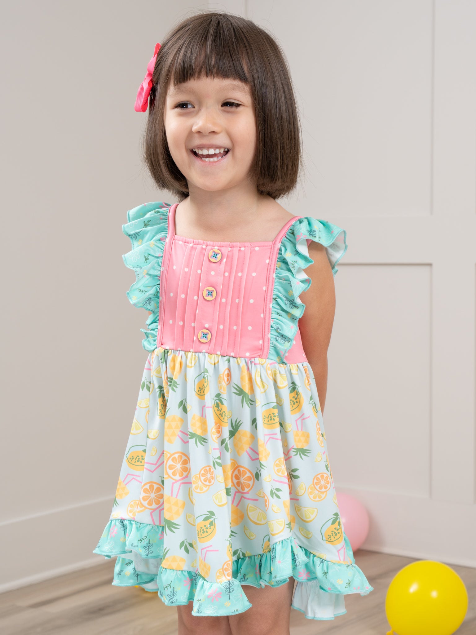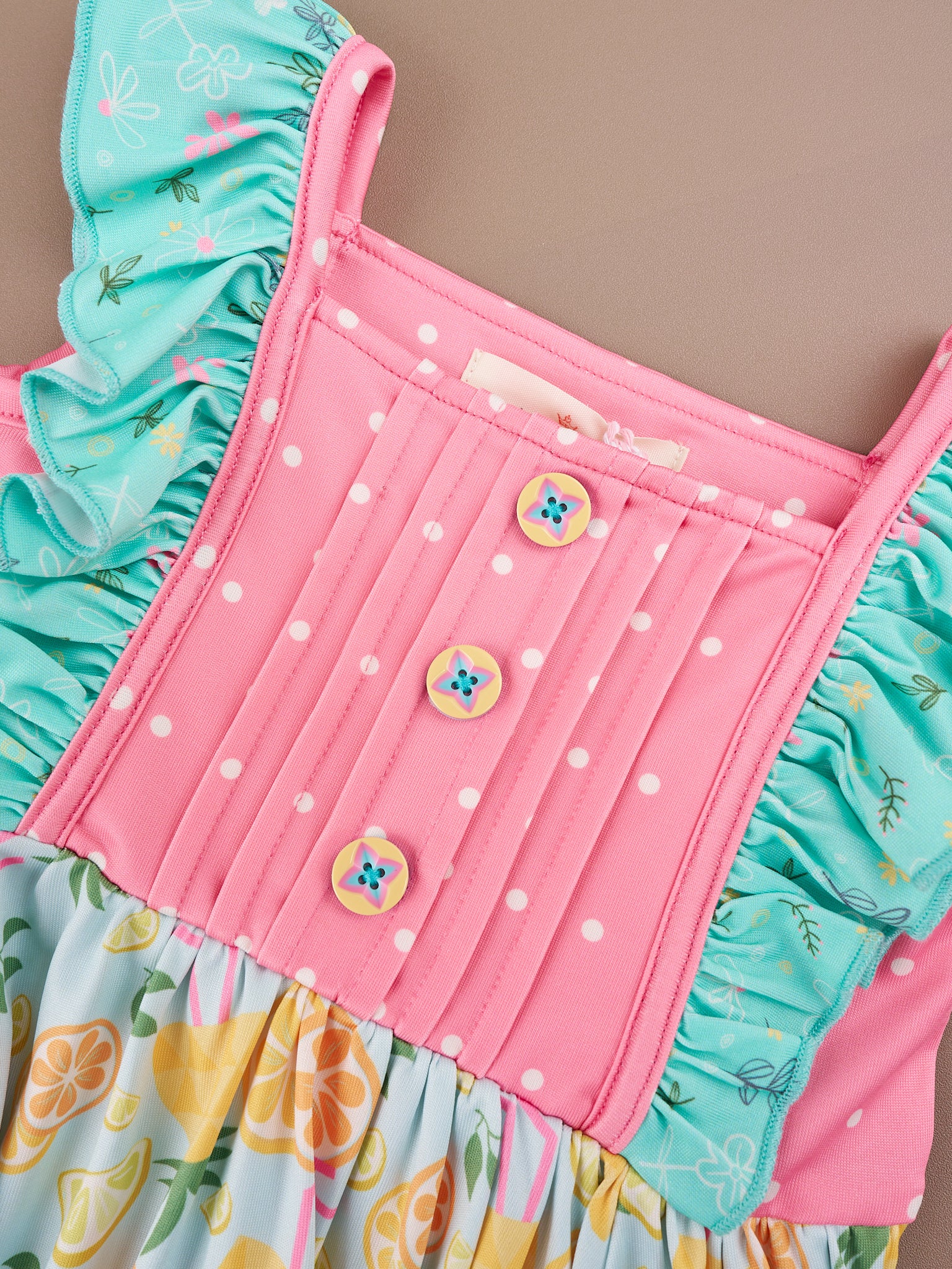 Introducing MNC x LOVE's newest collection, our Tropical Twist Collection. This collection features a stunning, hand-drawn print with a medley of pineapples, lemons, limes, oranges, and charming stripes. Each garment is made of a high-quality material that ensures comfort, durability, and longevity. The Tropical Twist Collection invites children to embrace their vibrant spirits while exploring the tropical paradise that awaits them. Let your little ones revel in the joy of high-quality fashion and experience the magic of the tropics with this captivating collection.