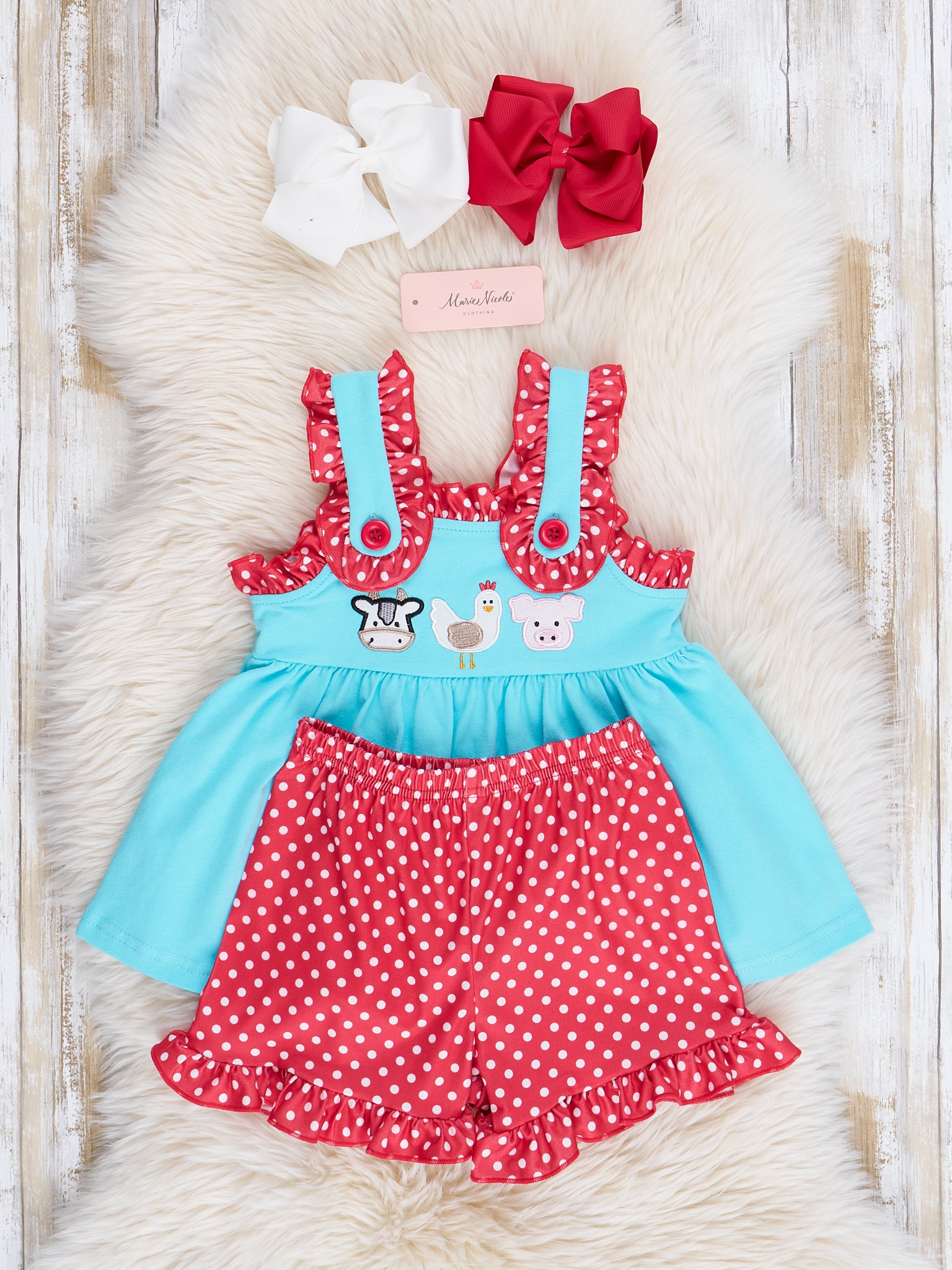 Turquoise Embroidered Farm Friends Ruffle Outfit