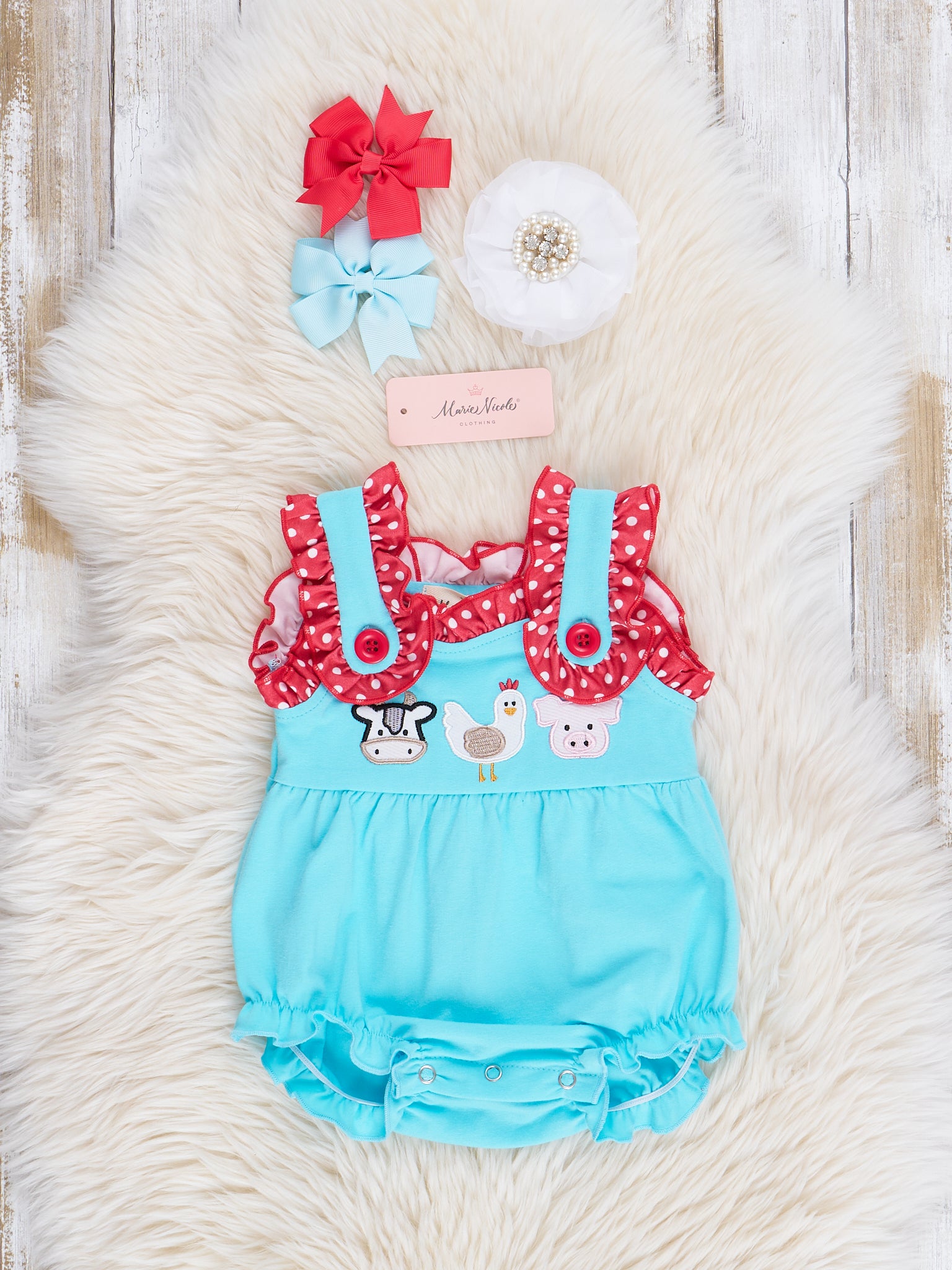 Turquoise Embroidered Farm Friends Ruffle Bubble