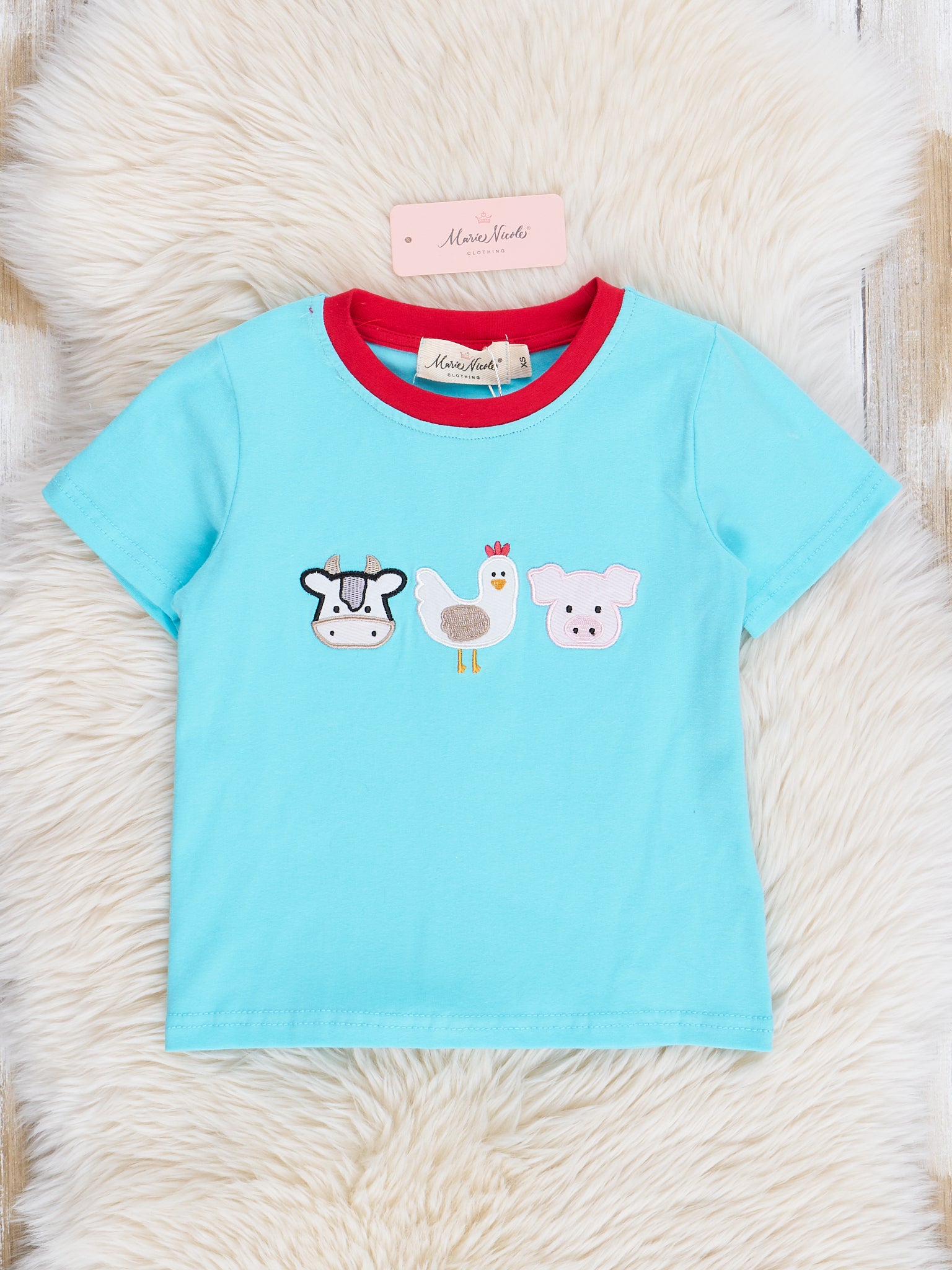 Home › Turquoise Embroidered Farm Friends Sibling Set