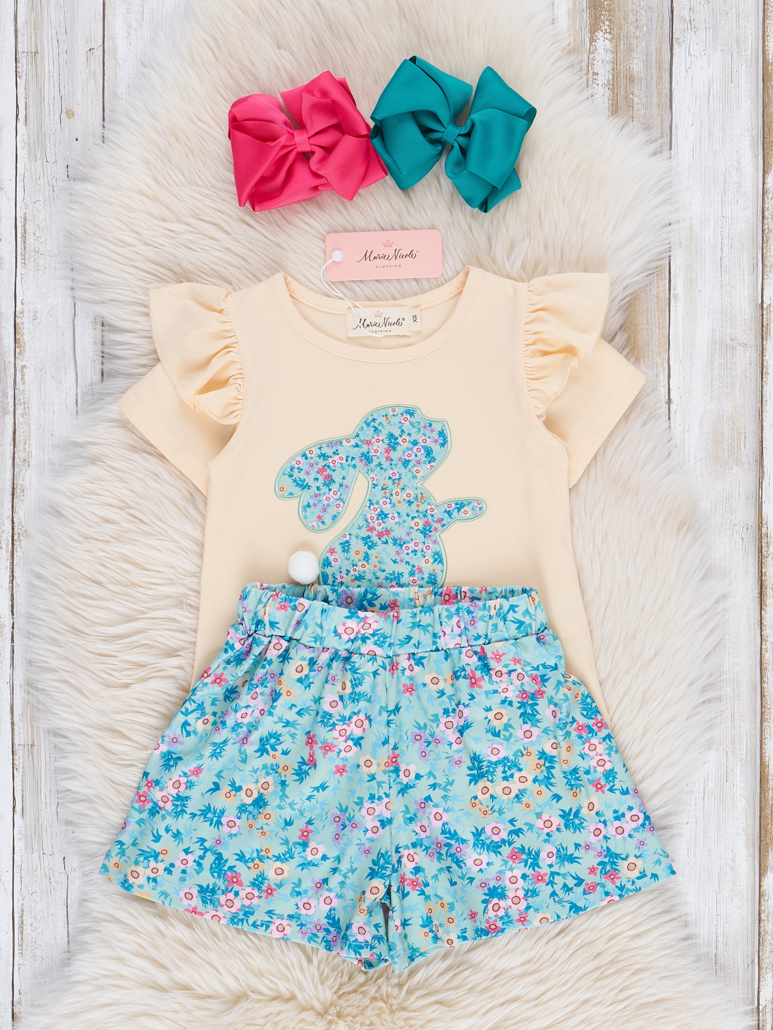 Home › Turquoise Embroidered Floral Bunny Sister Set