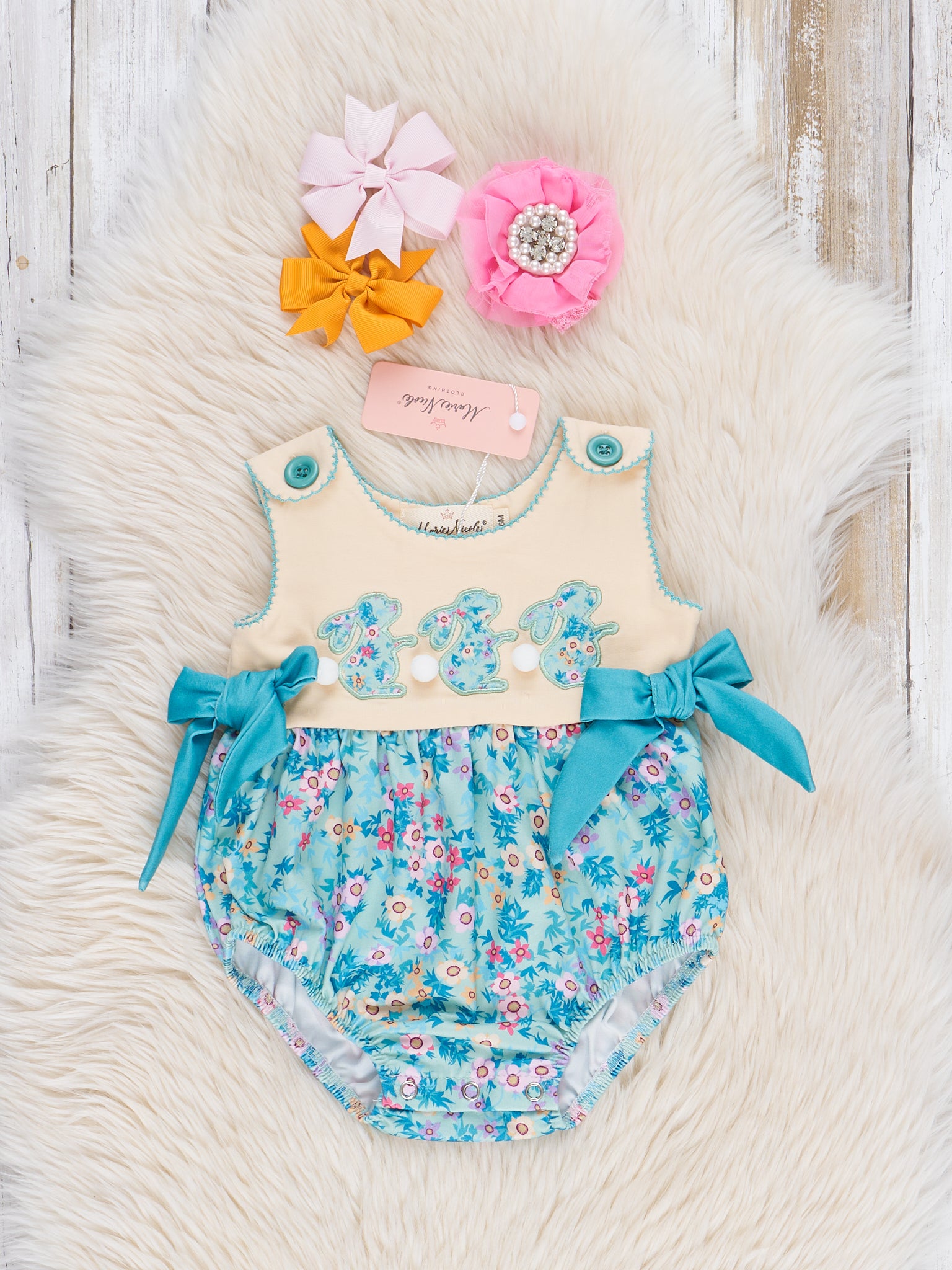 Turquoise Embroidered Floral Bunny Ruffle Bubble