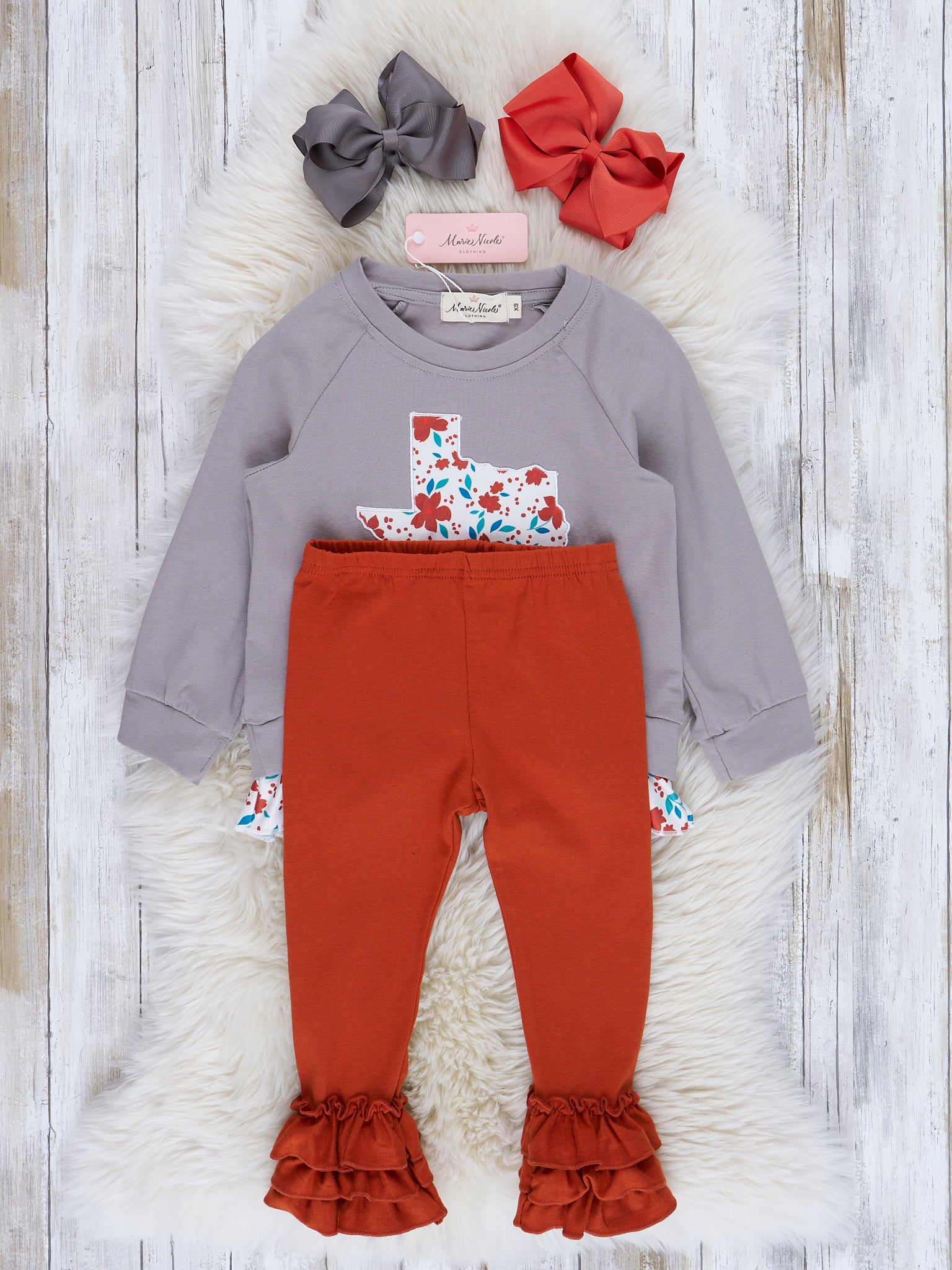 TX Burnt Orange Floral Cupcake Legging Outfit