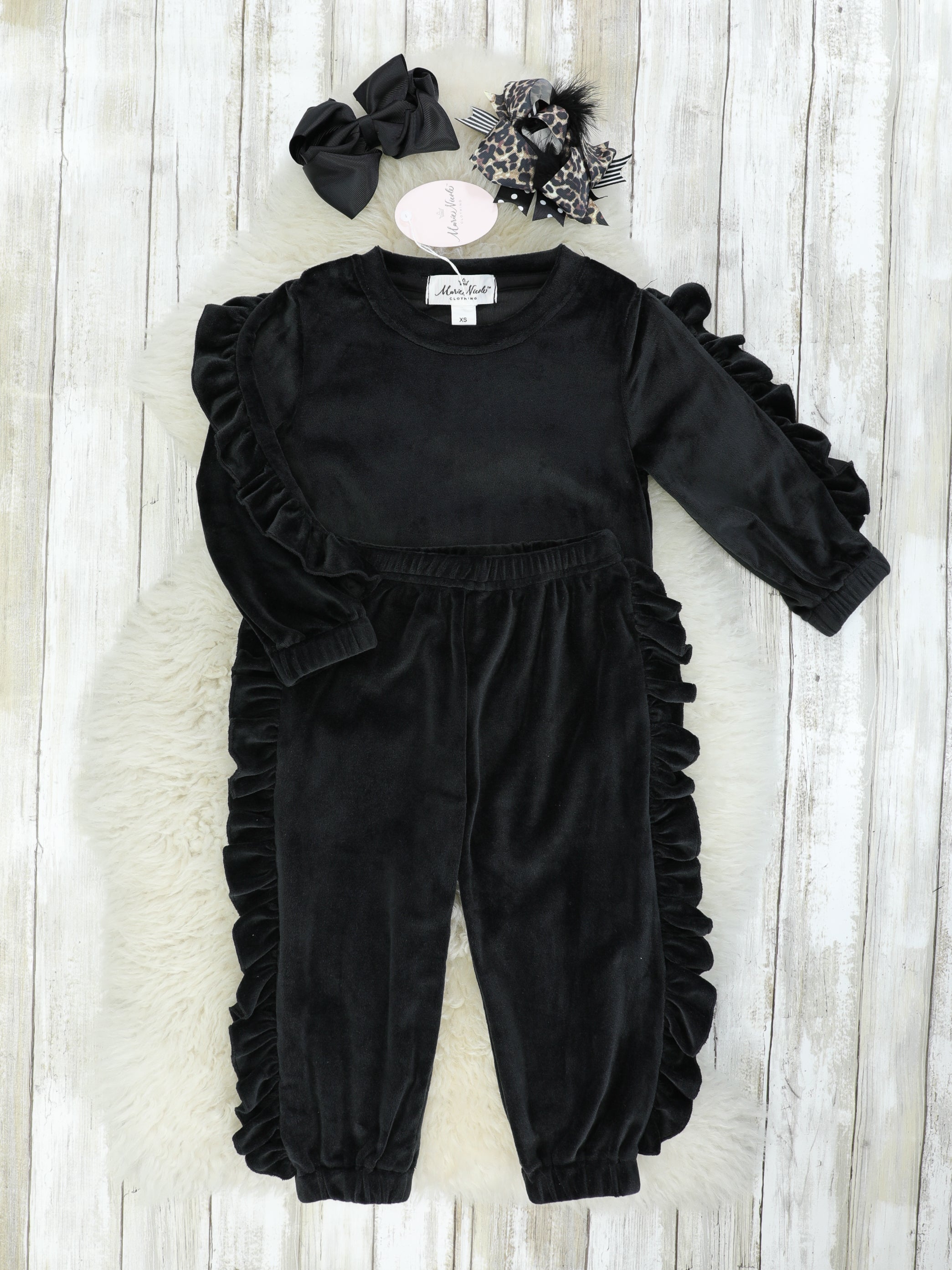 Black Velvet Ruffle Pullover & Jogger Outfit