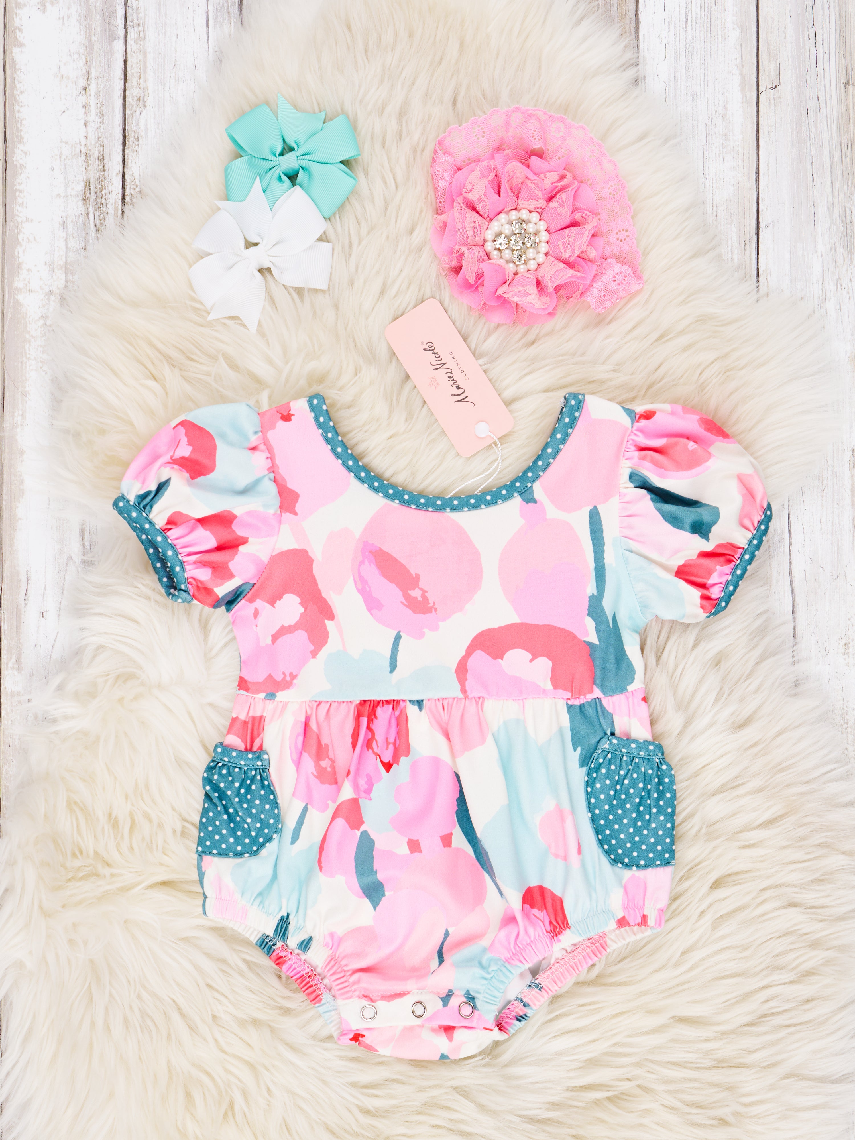 Watercolor Floral Pocket Romper