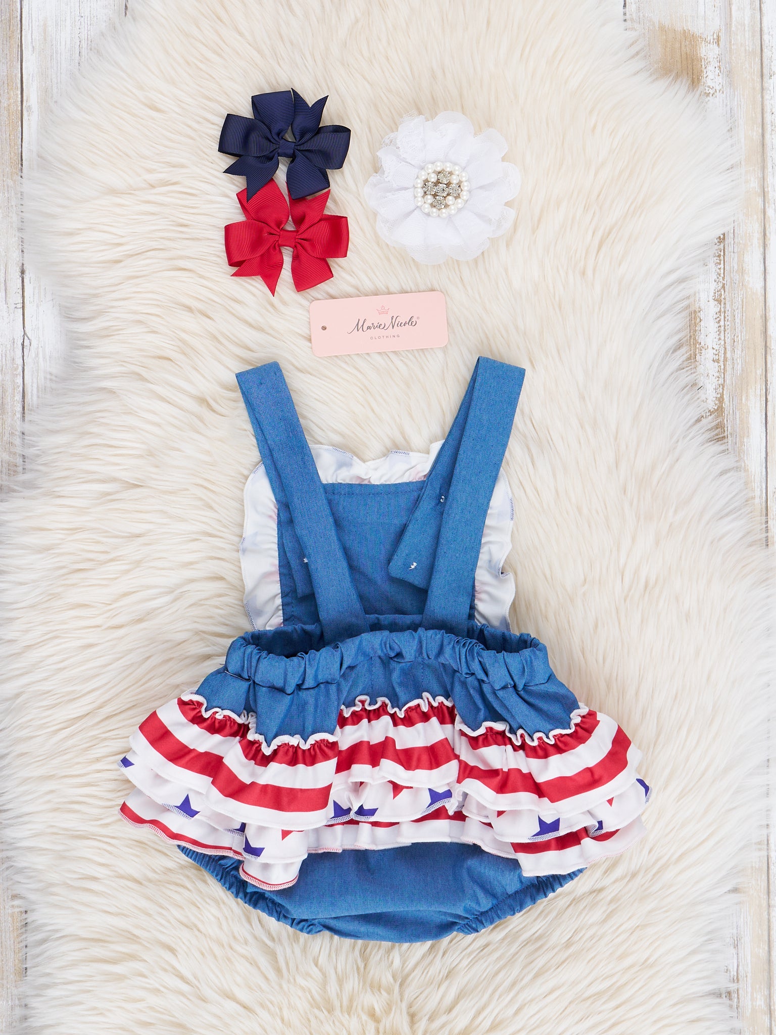 Get ready to show off your patriotic pride with our Chambray Stars & Stripes sister set! Made with unique chambray fabric and adorned with stars & stripes, this bubble will have your little one looking stylish and patriotic.