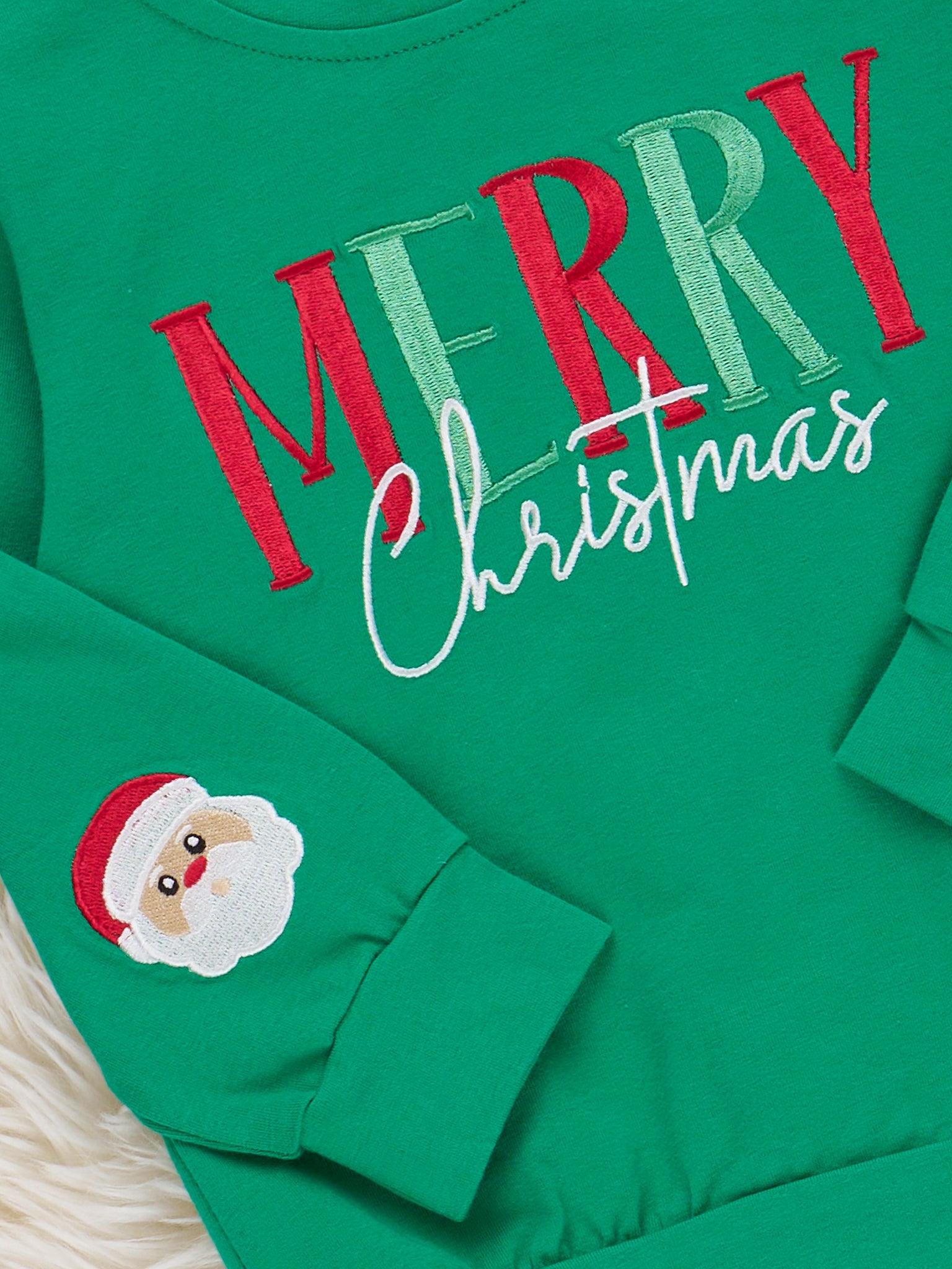 Ready for Santa to come to town? The Santa's Greeting T-Shirt is the perfect top to welcome the Christmas season! The elegant typography and embroidered Santa elbows give this Marie Nicole Clothing top an adorable yet distinguished holiday look. With a loose style and breathable fabric, your little one will love how cute and comfy this shirt is.