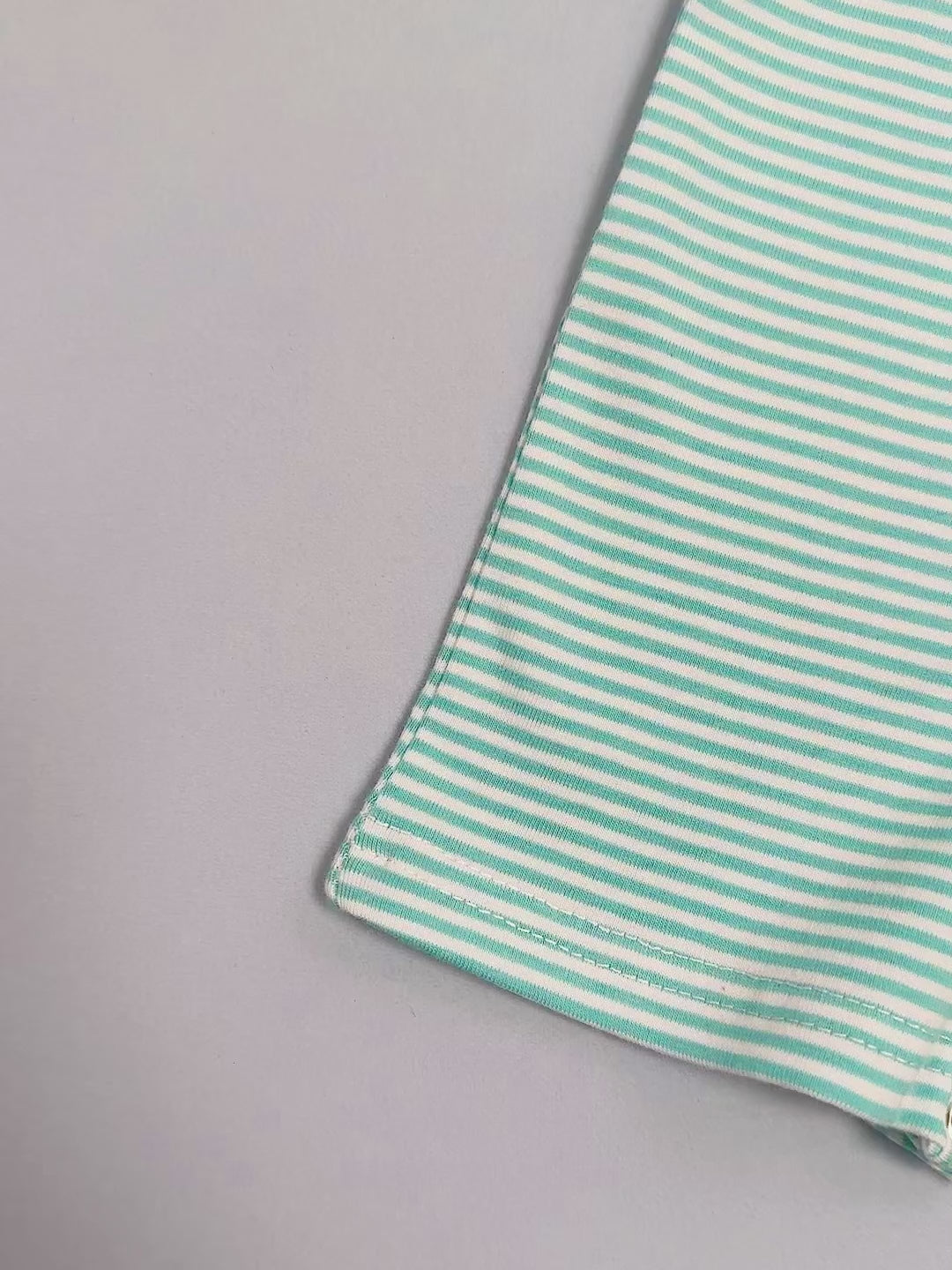 This brother set is all about the details! We're absolutely loving this teal striped johnny that features an intricate lemon tractor embroidery and yellow trim accents. He'll be the talk of the farm in this johnny!