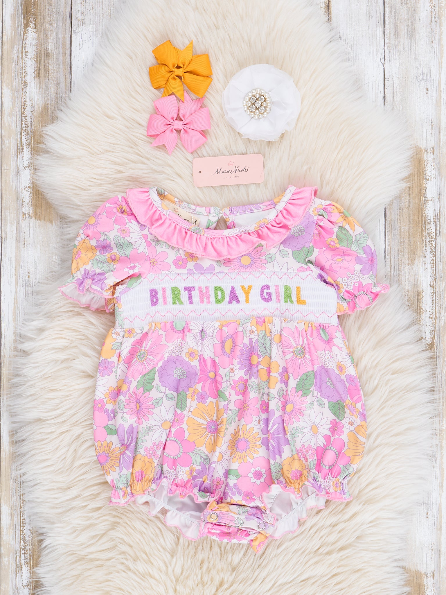 Pink & Purple Floral Birthday Girl Smocked Bubble
