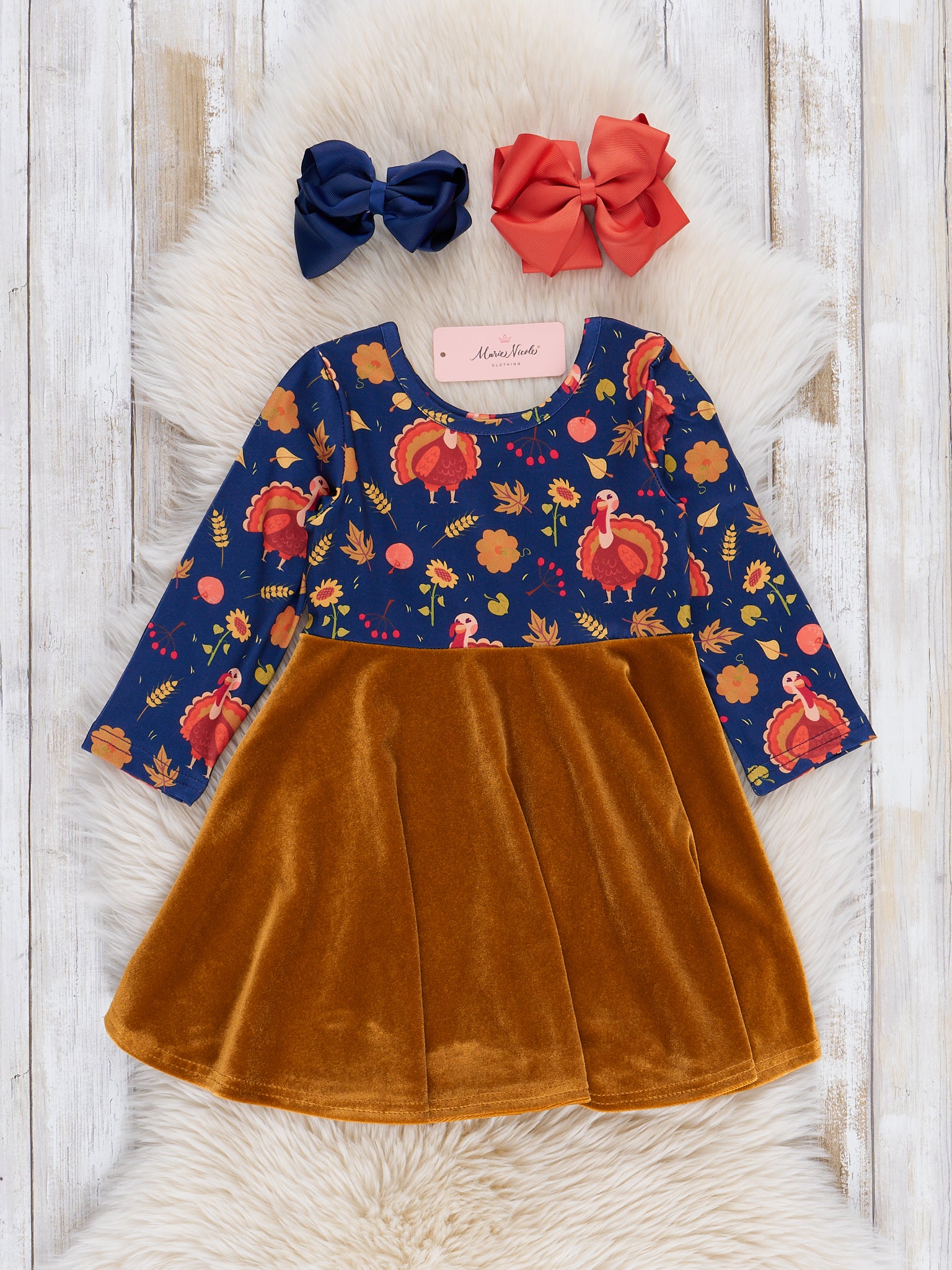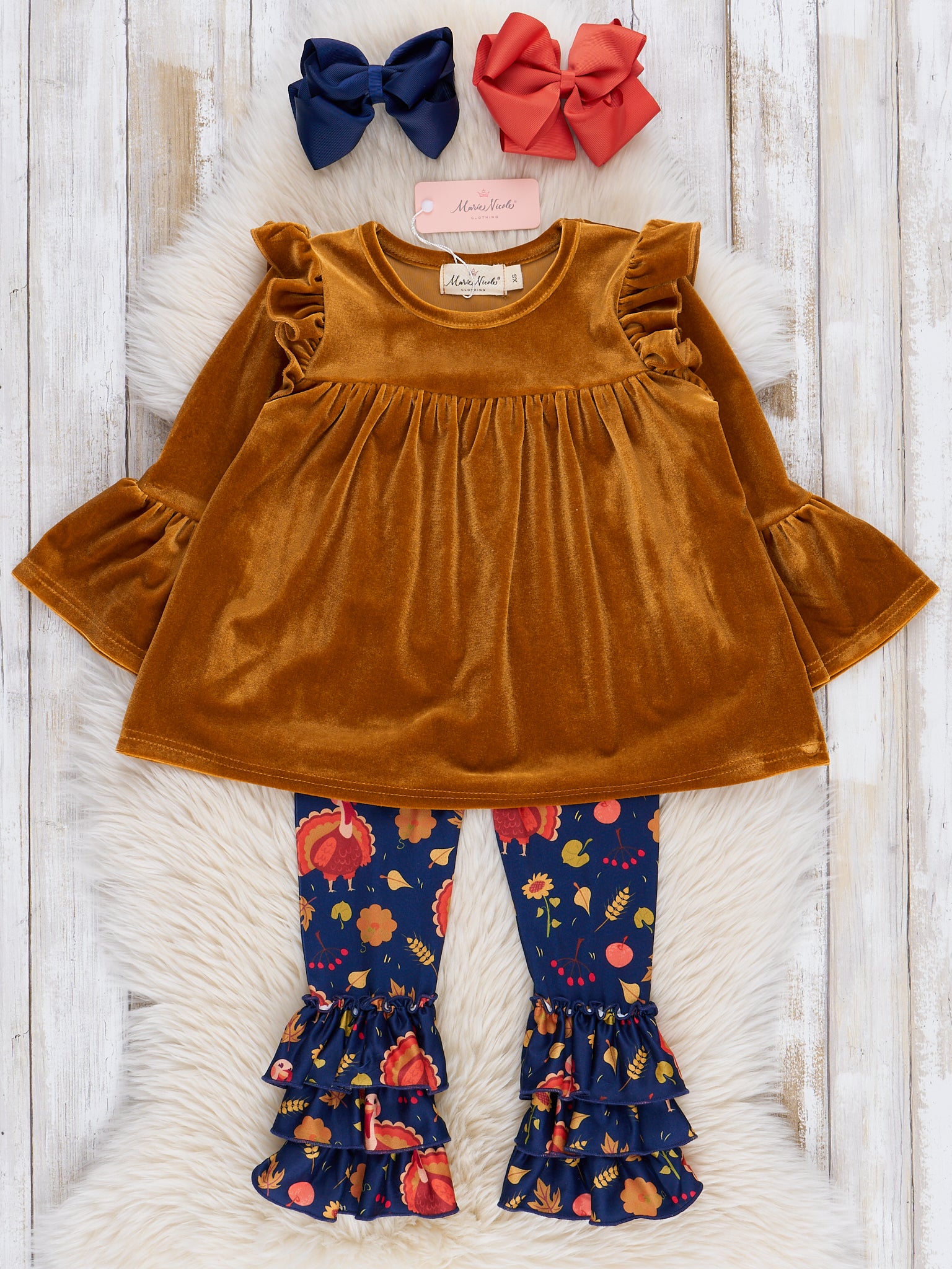 Yellow Plaid Embroidered Turkey Ruffle Outfit
