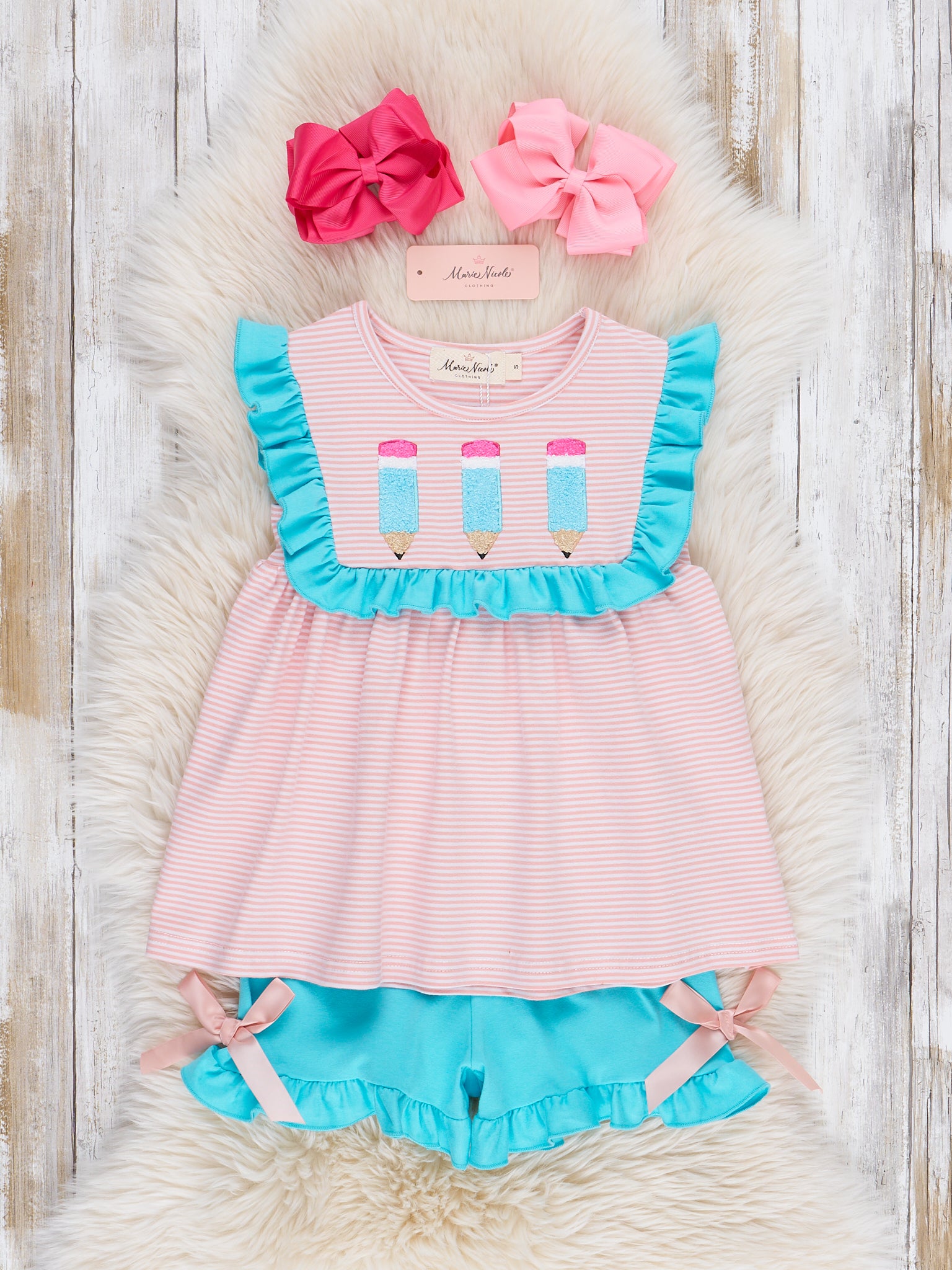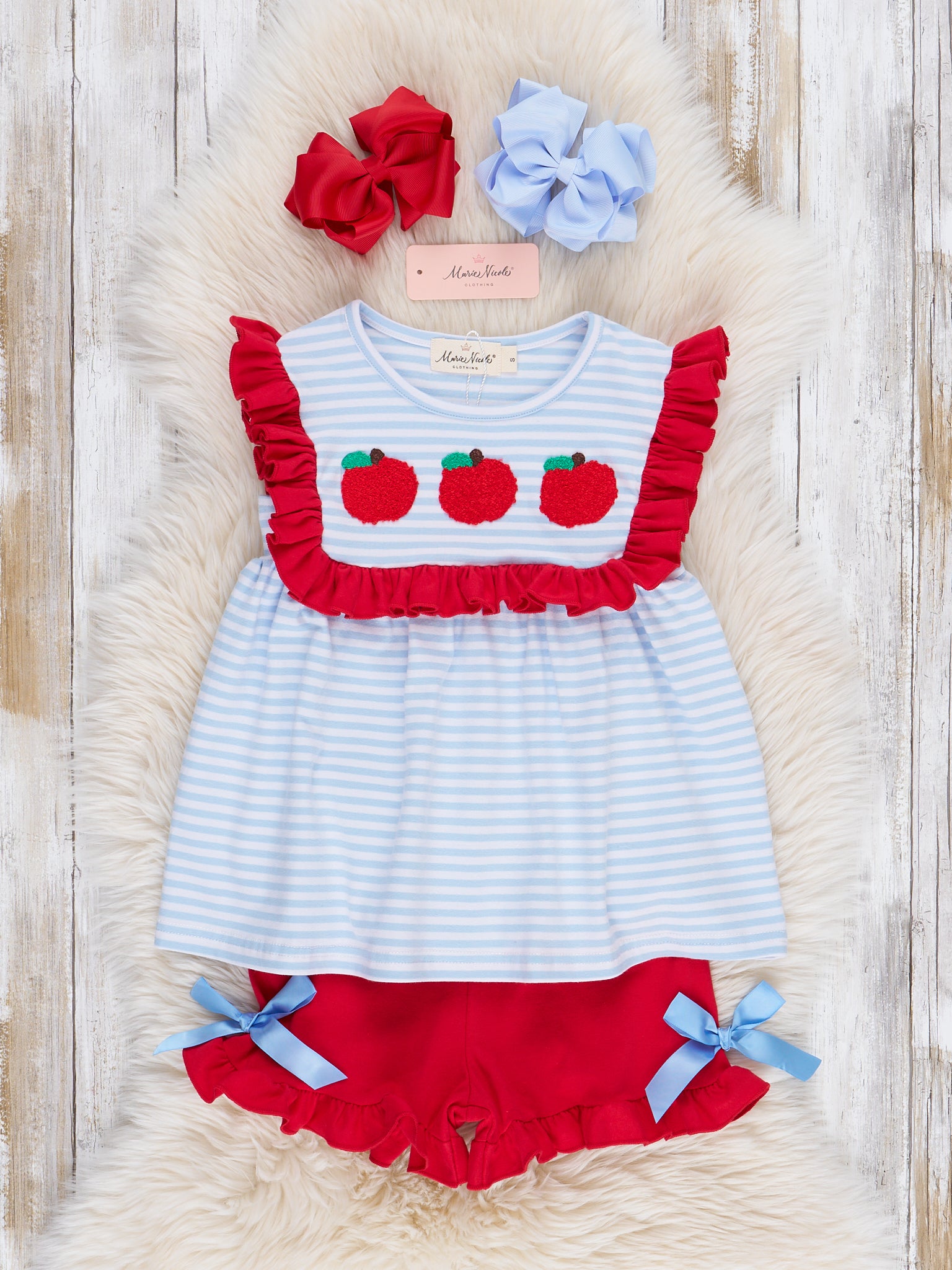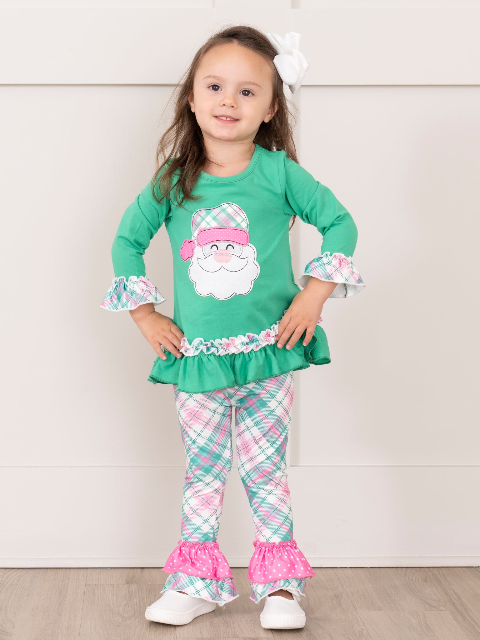 Stripe Santa Ensemble Embroidered Ruffle Outfit