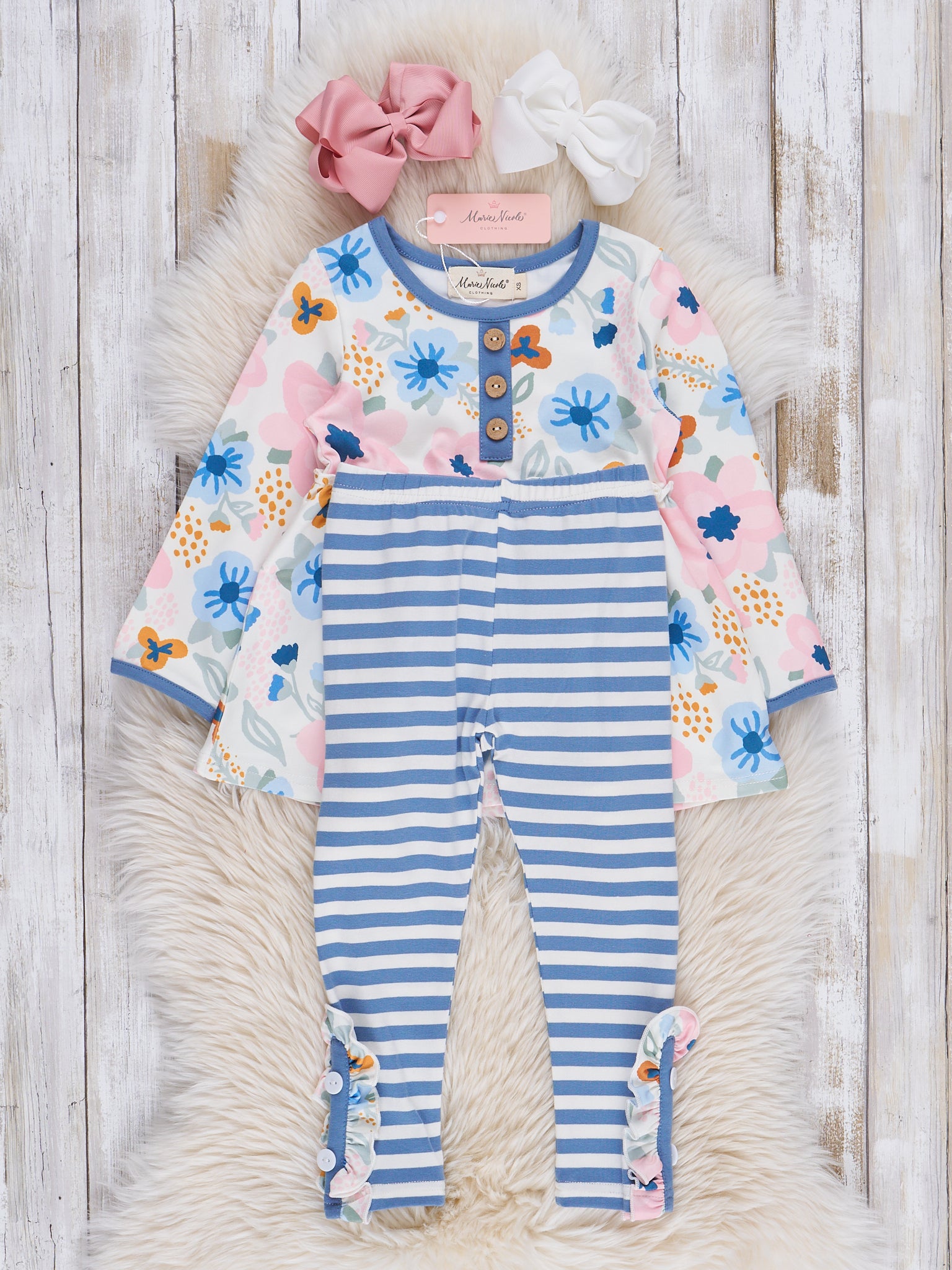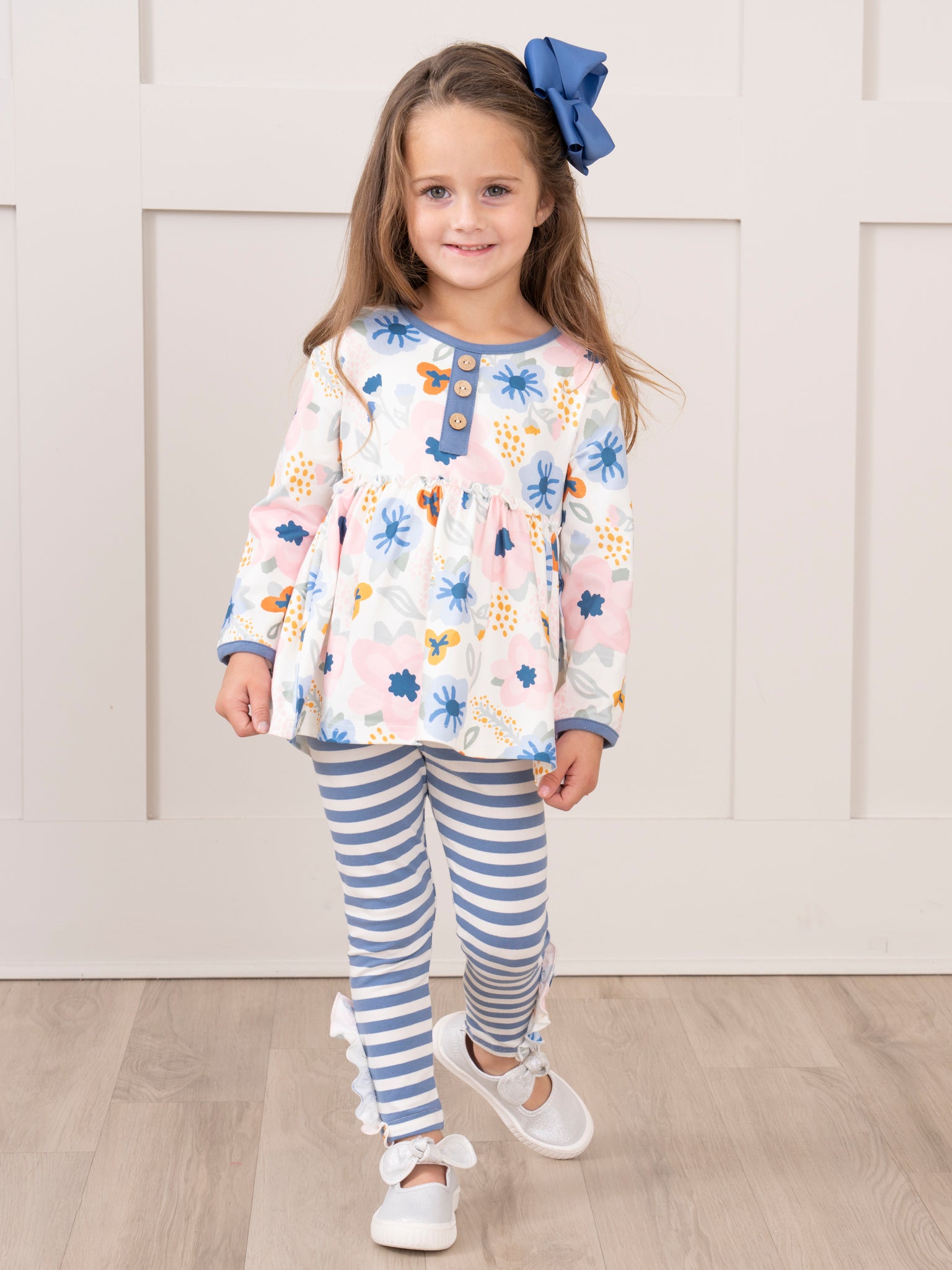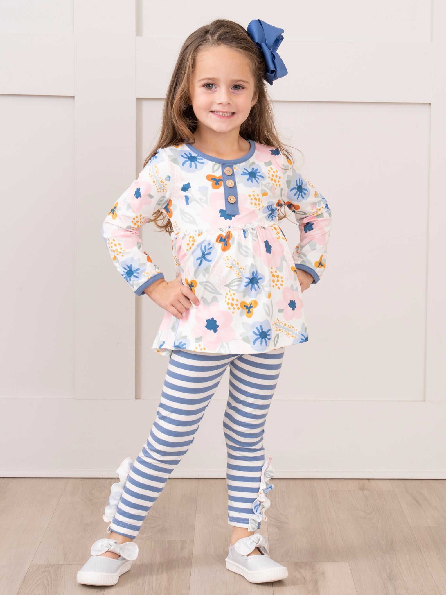 Navy & Yellow Autumn Blossoms Ruffle Outfit