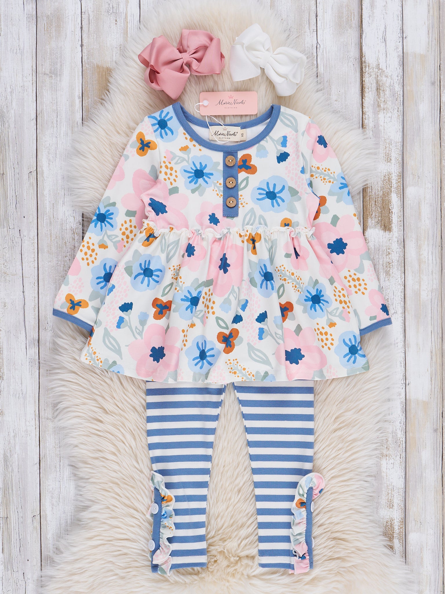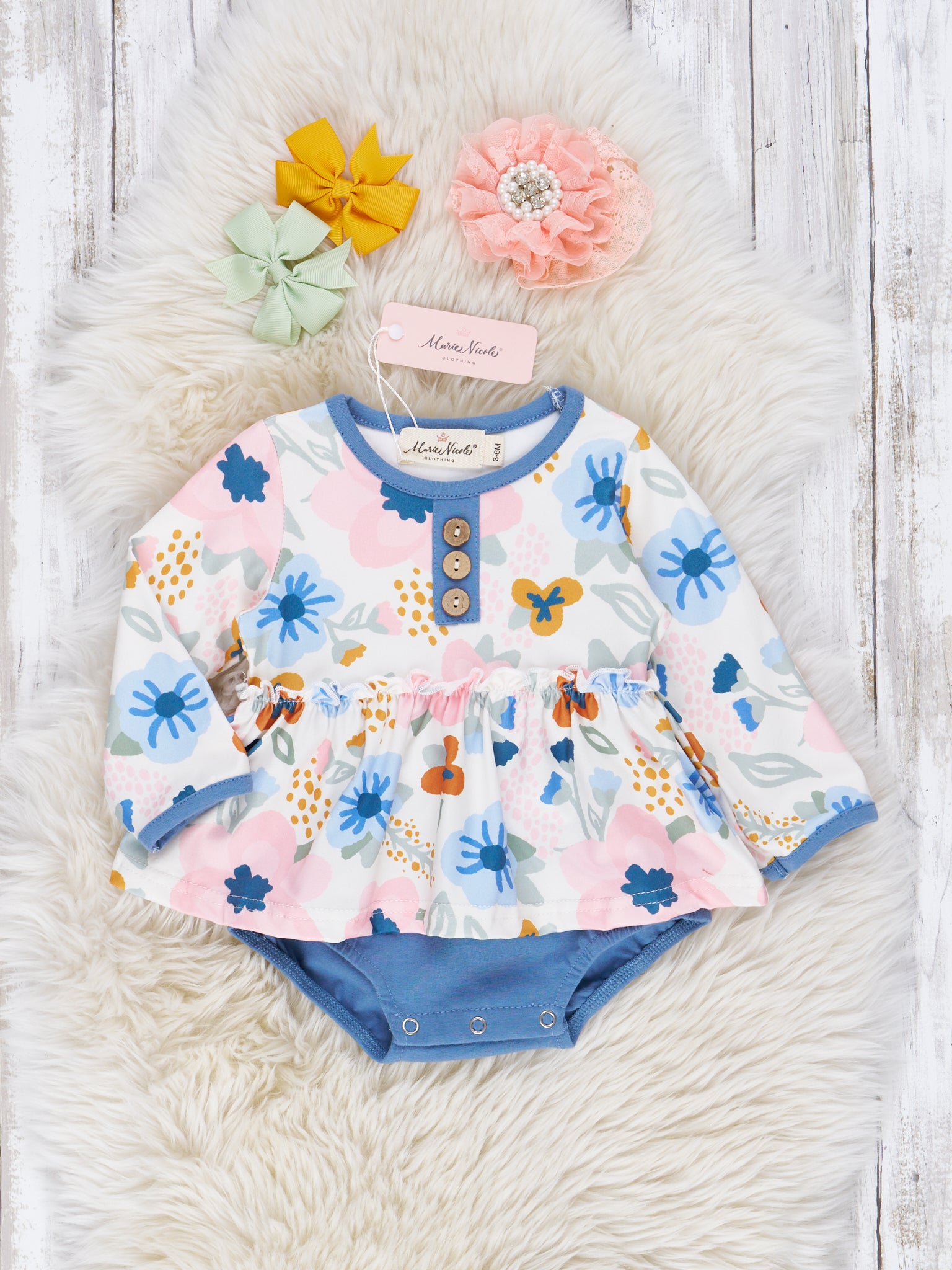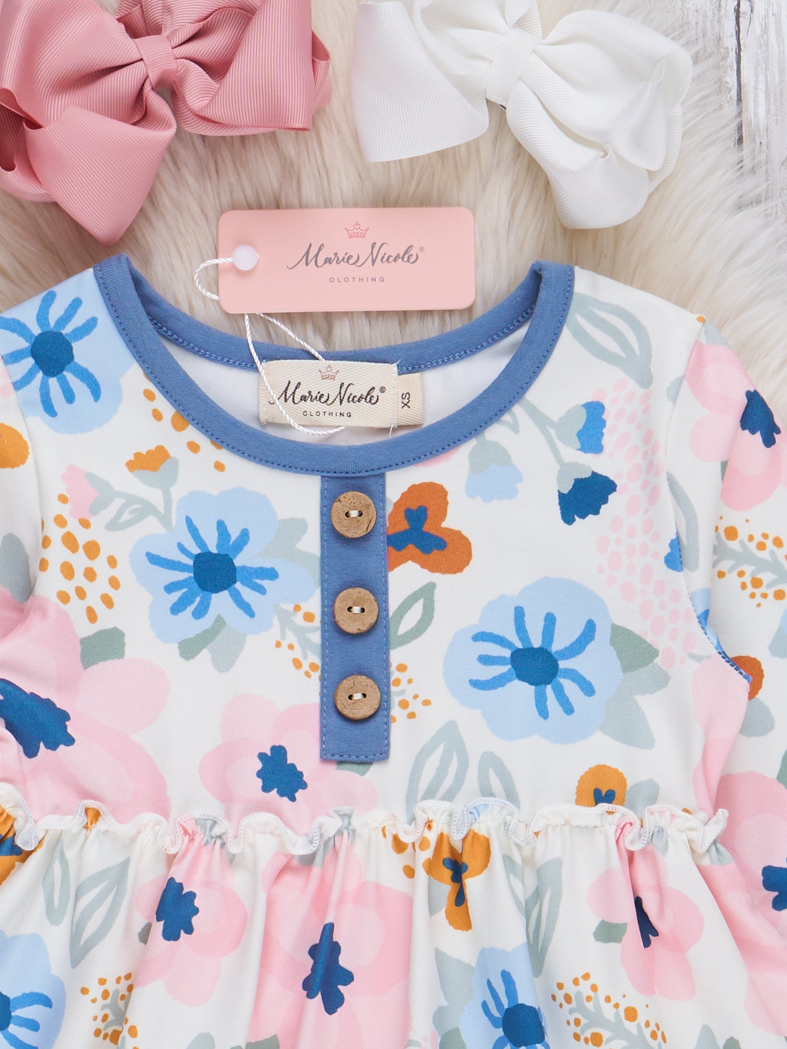 Navy & Yellow Autumn Blossoms Ruffle Outfit