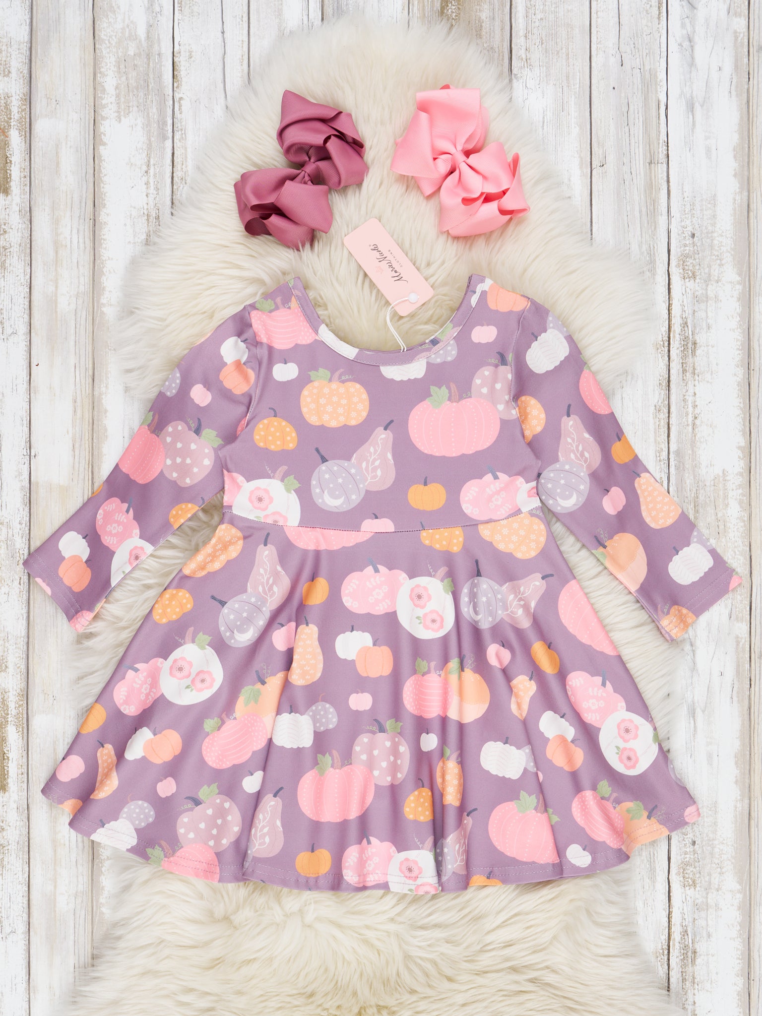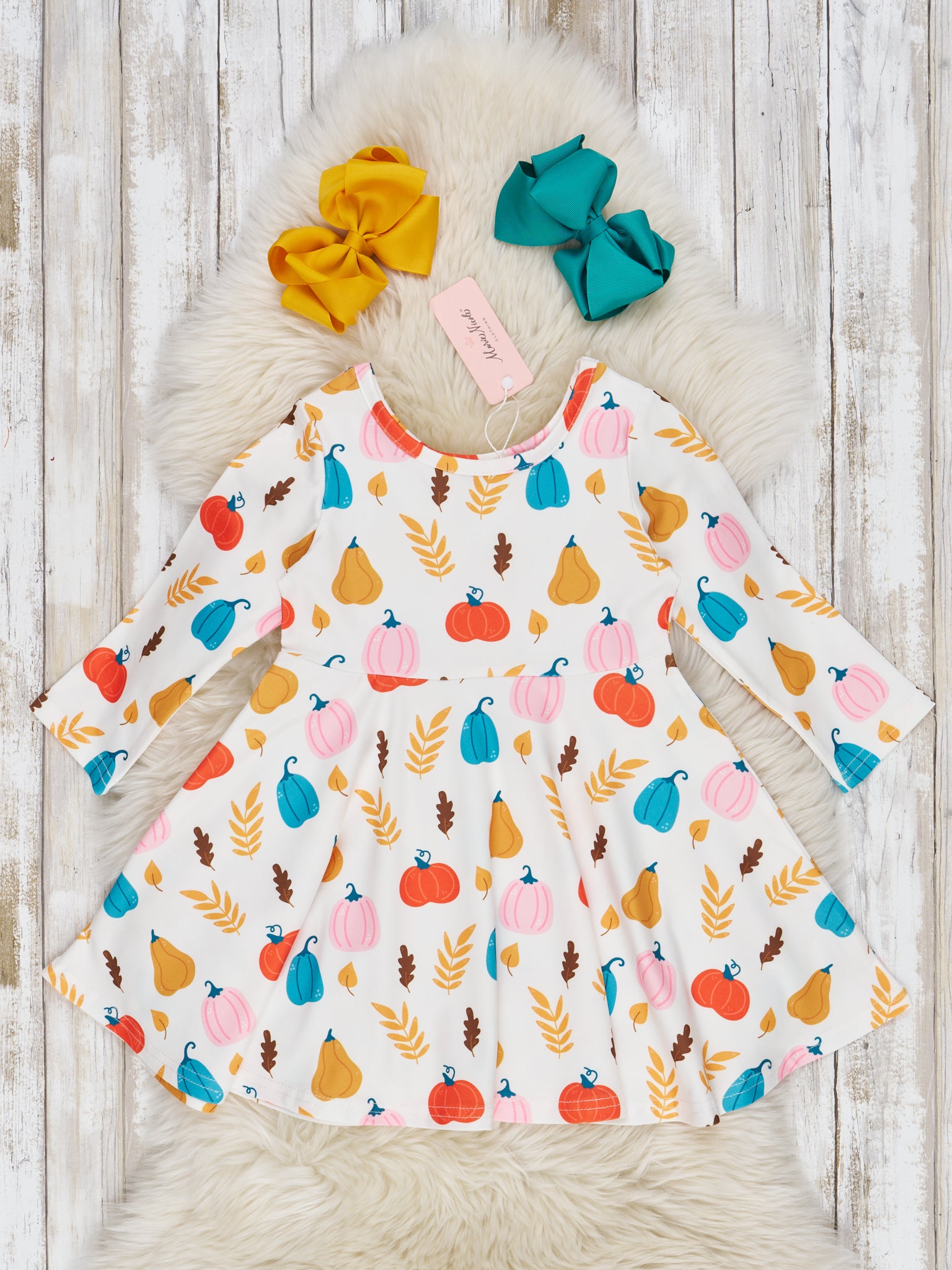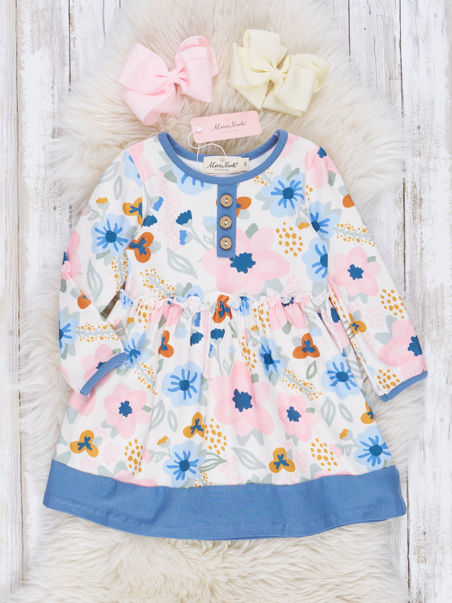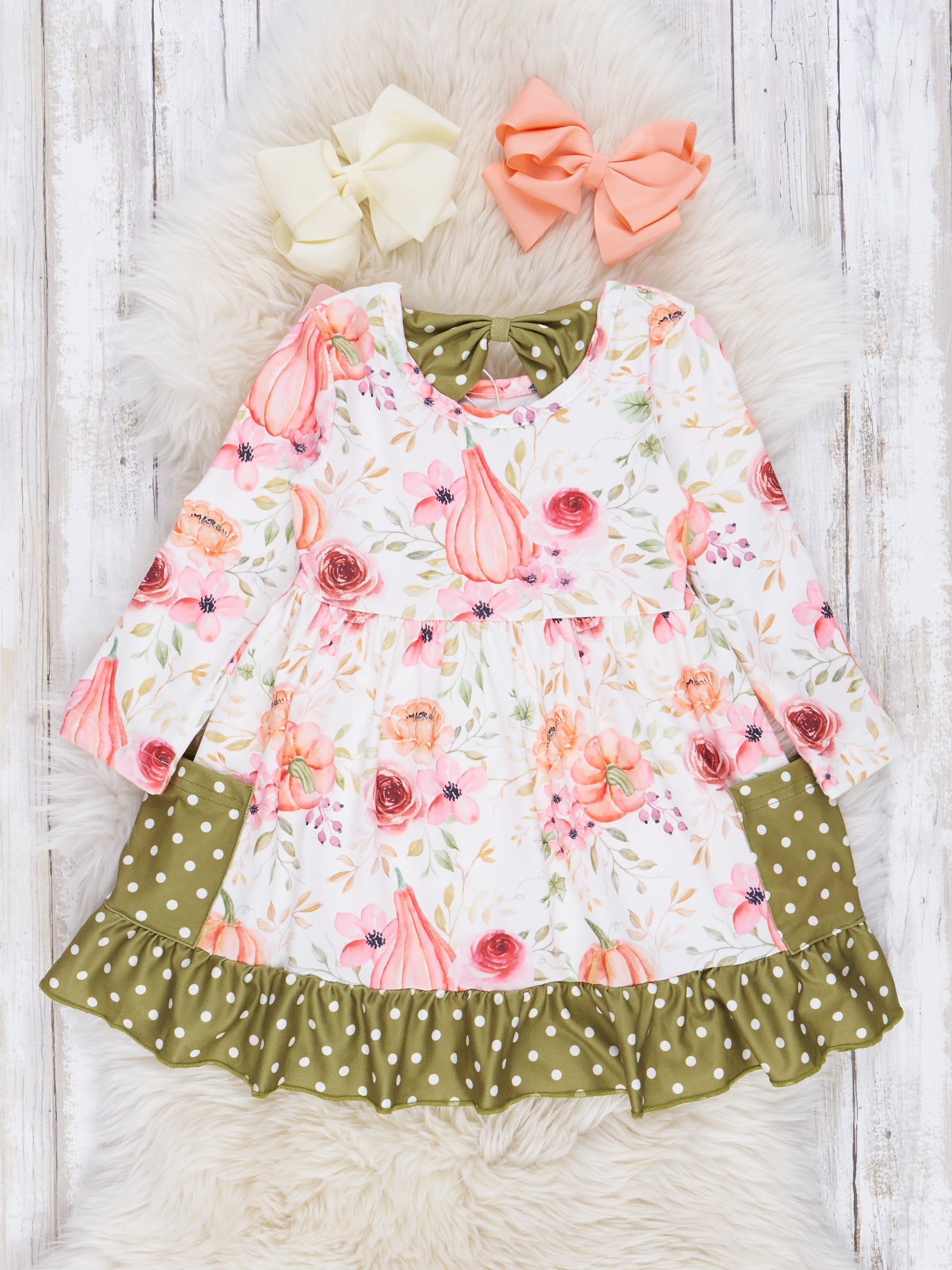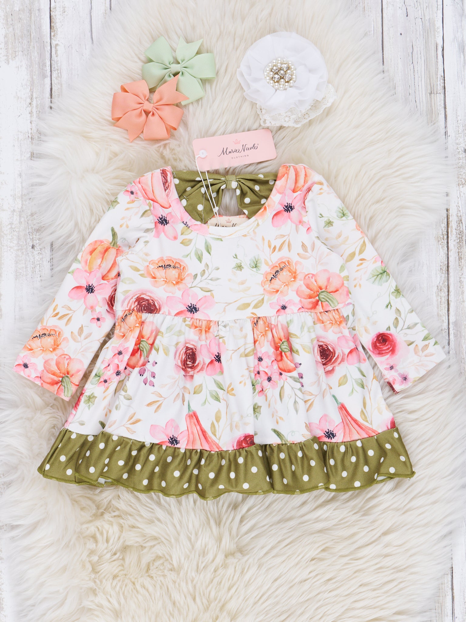 Navy & Yellow Autumn Blossoms Ruffle Dress