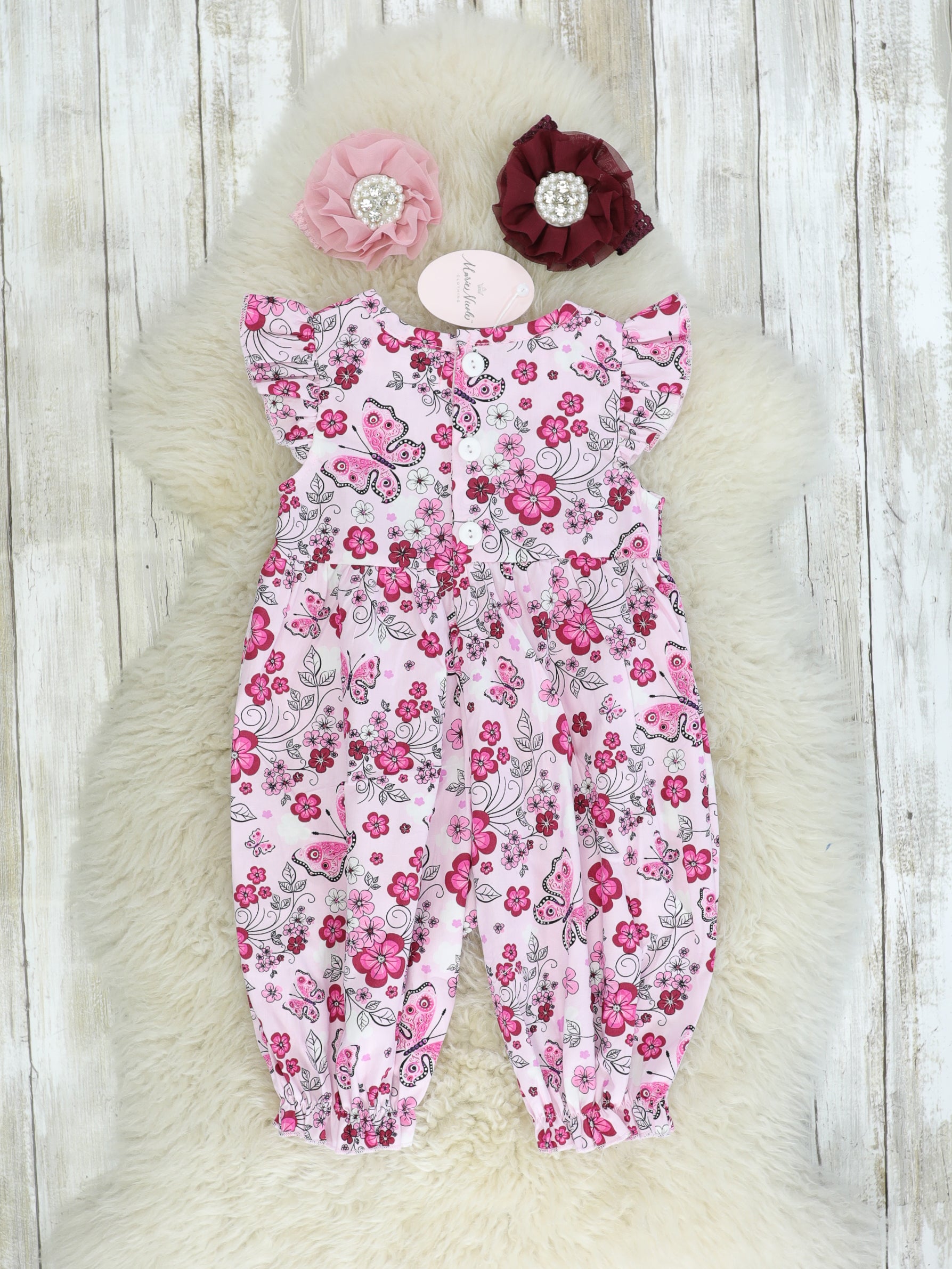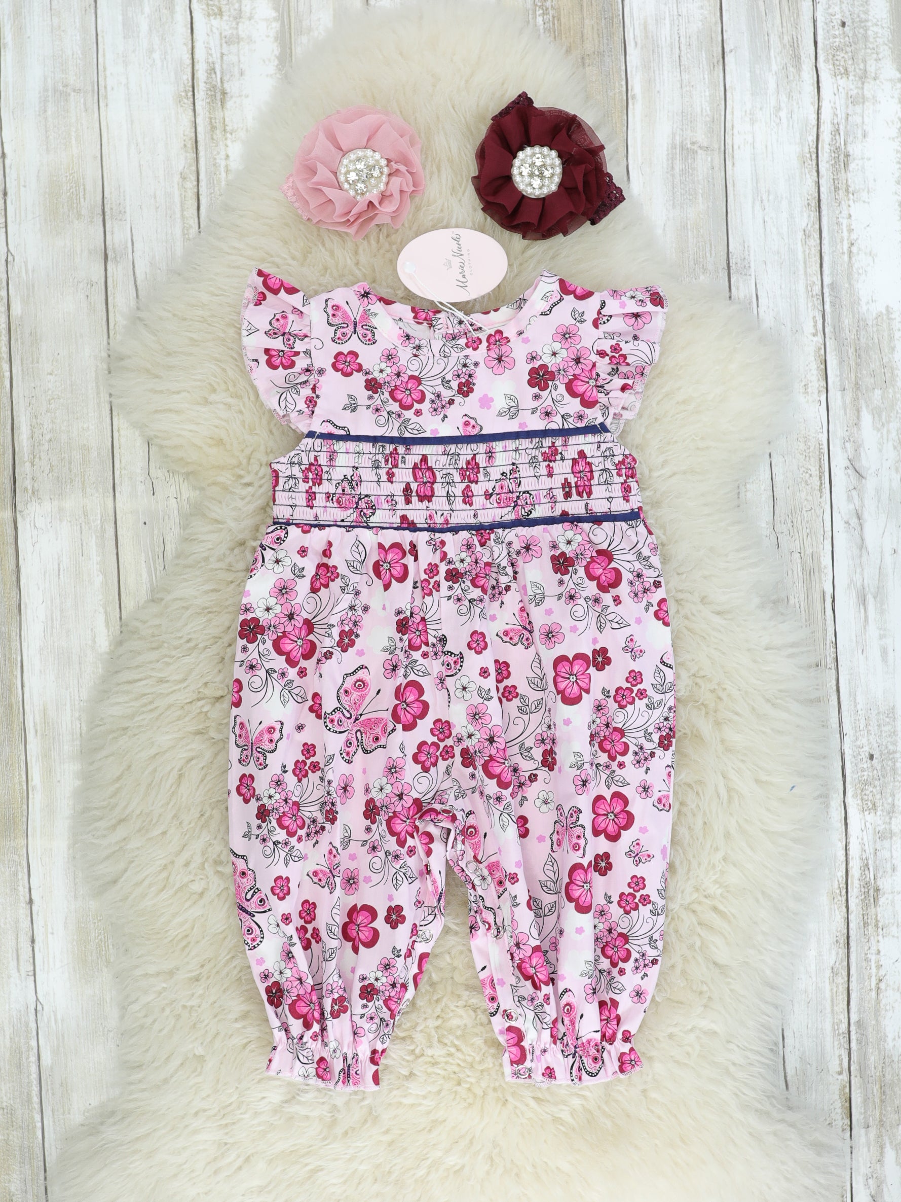 Navy & Yellow Autumn Blossoms Ruffle Romper