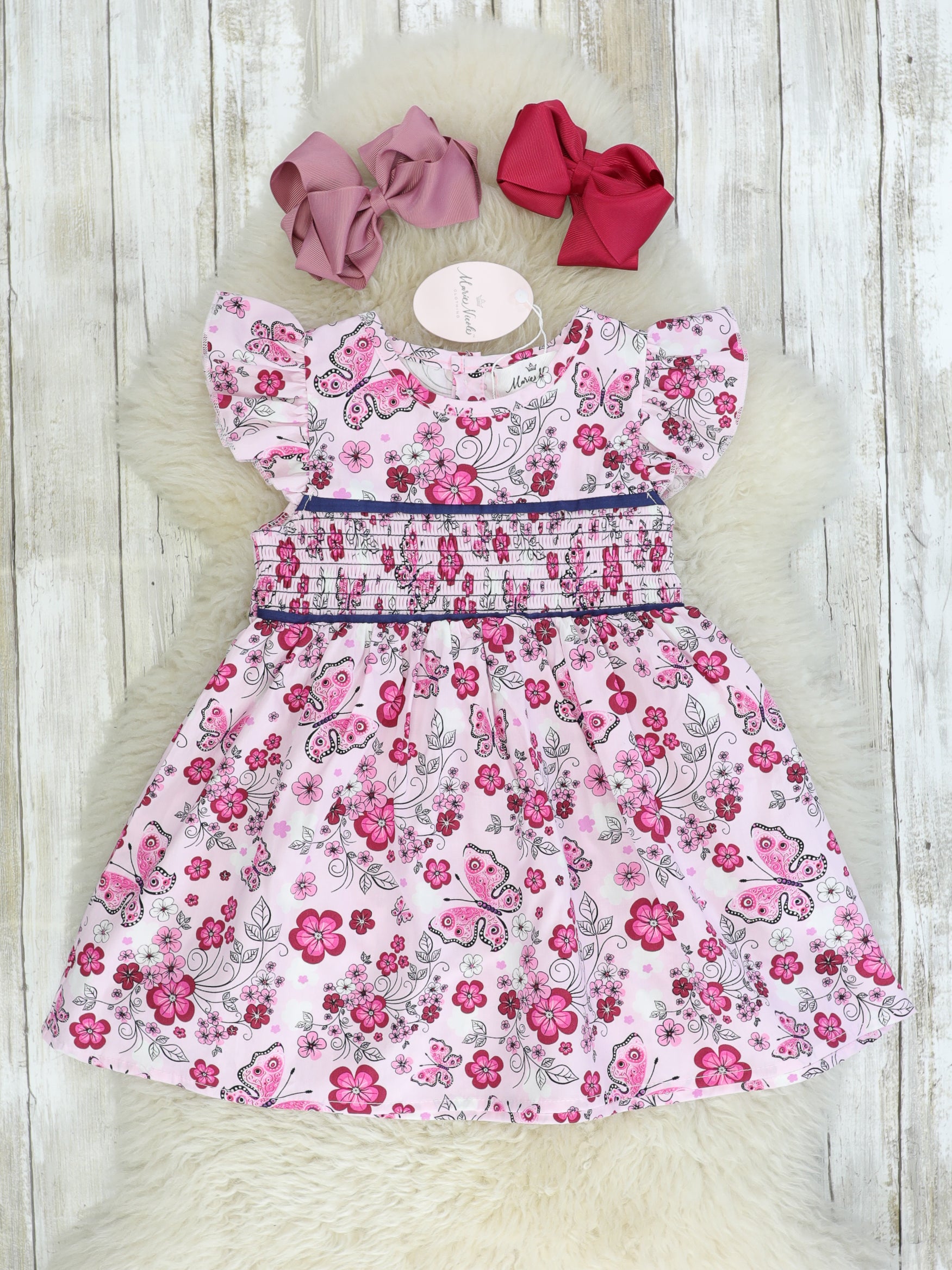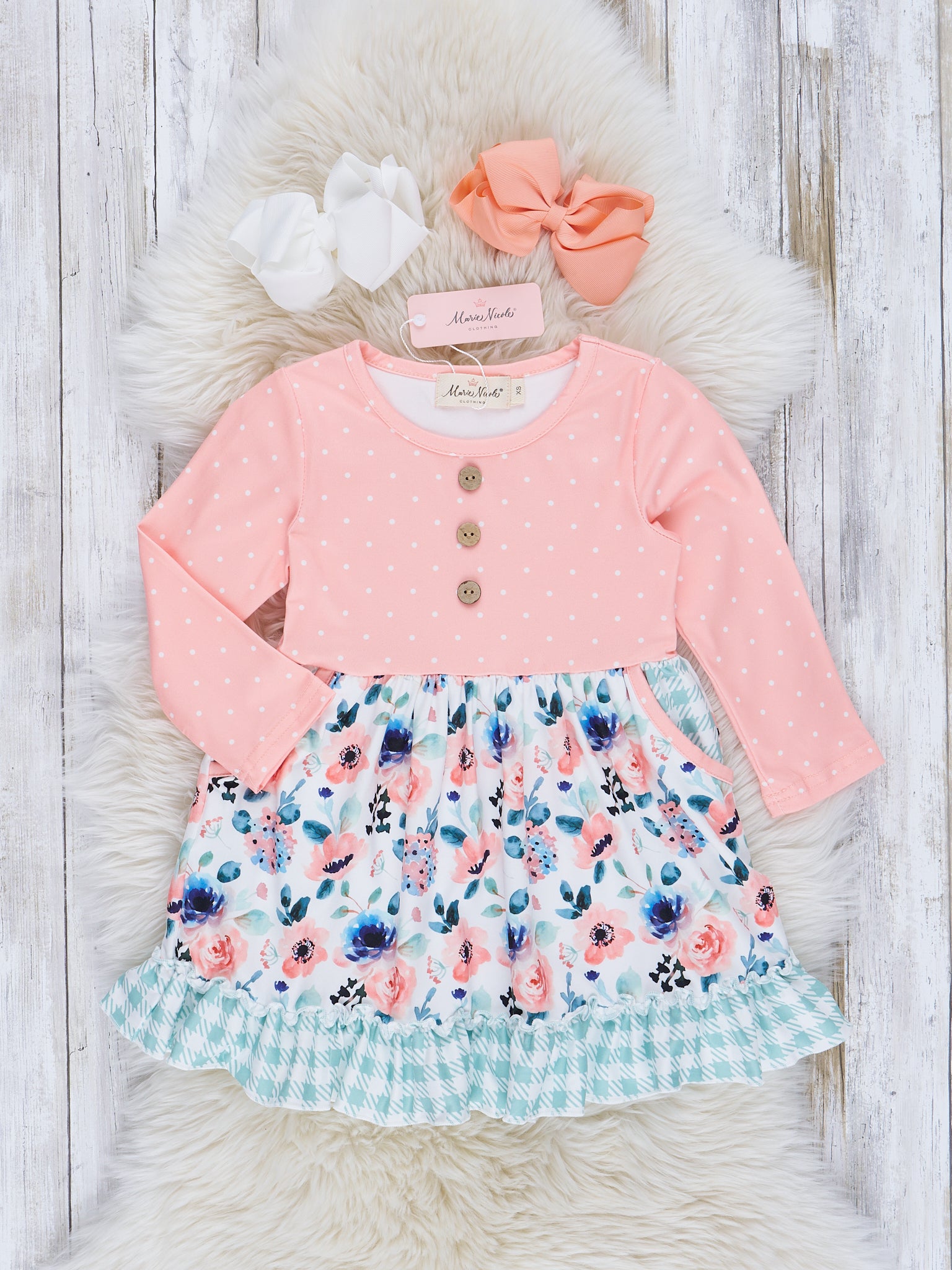 Burnt Orange & Blue Floral Swiss Dot Dress