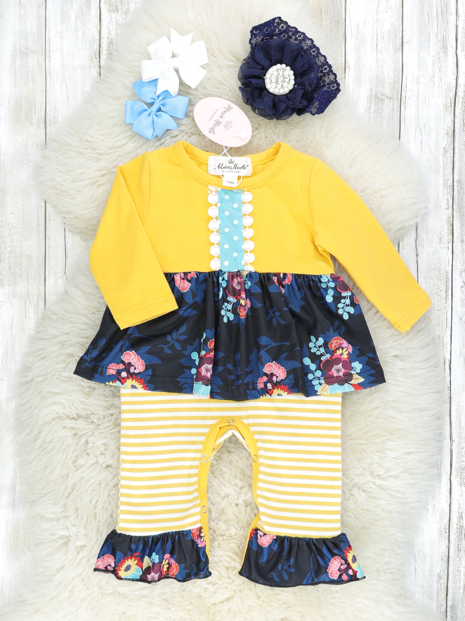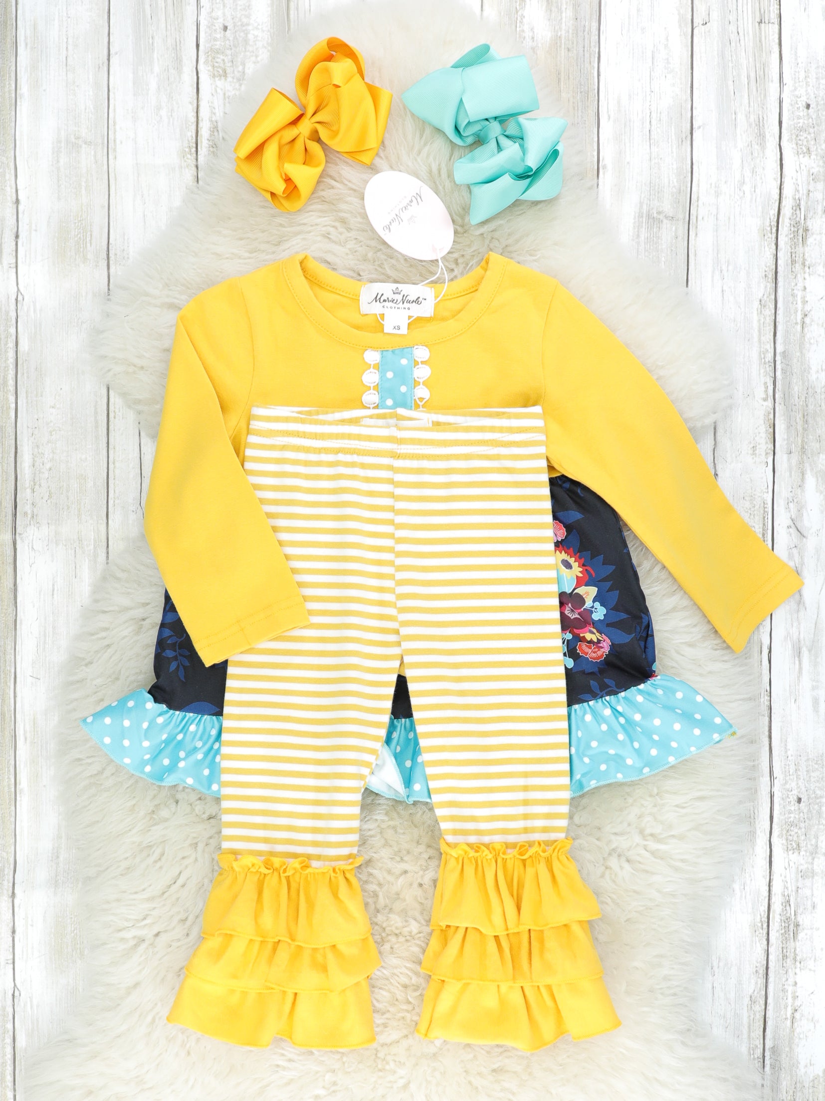 Yellow & Blue Floral Ruffle Outfit
