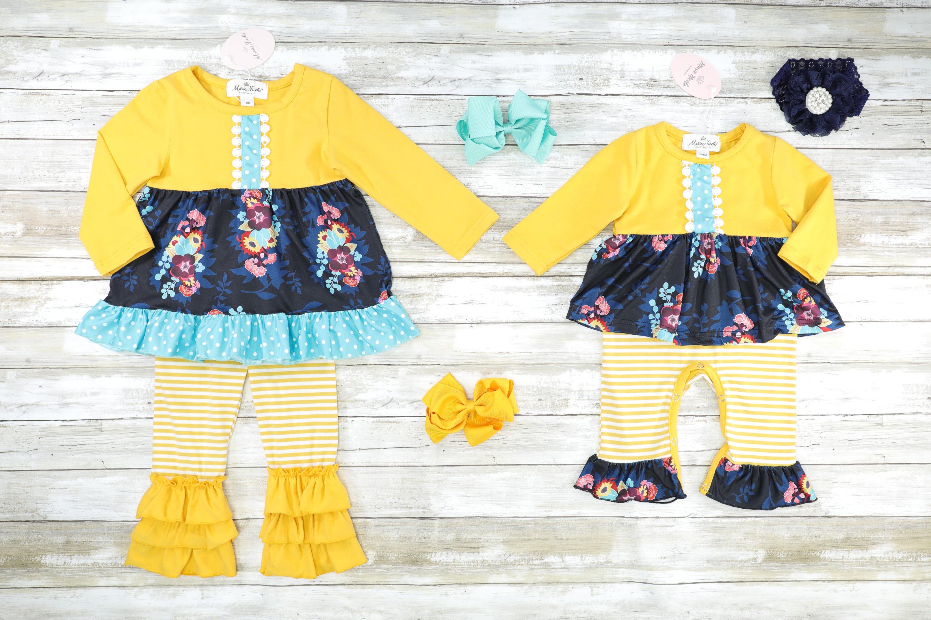 Yellow & Blue Floral Sister Set