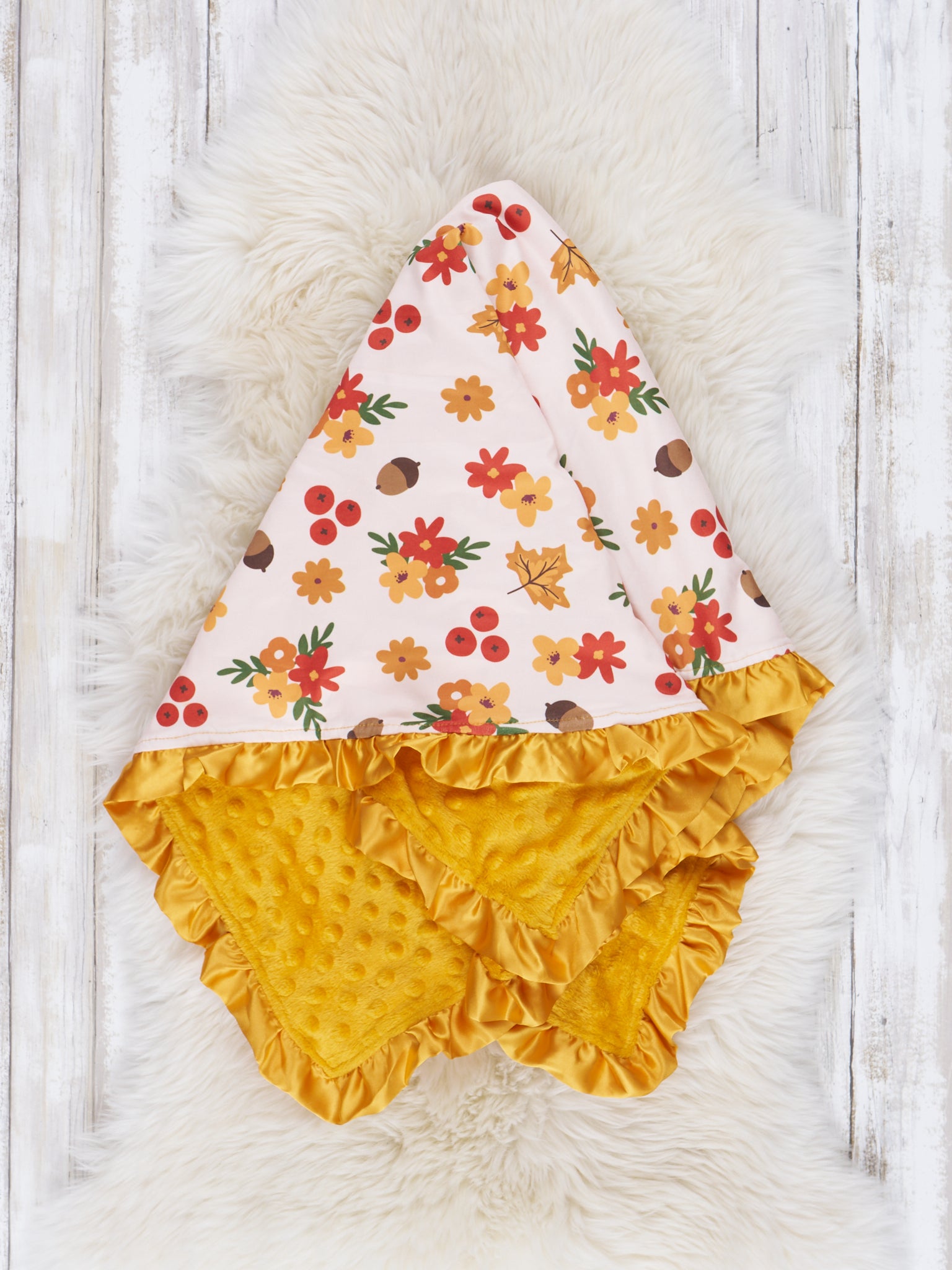 Yellow Daisy & Acorn Ruffle Minky Blanket