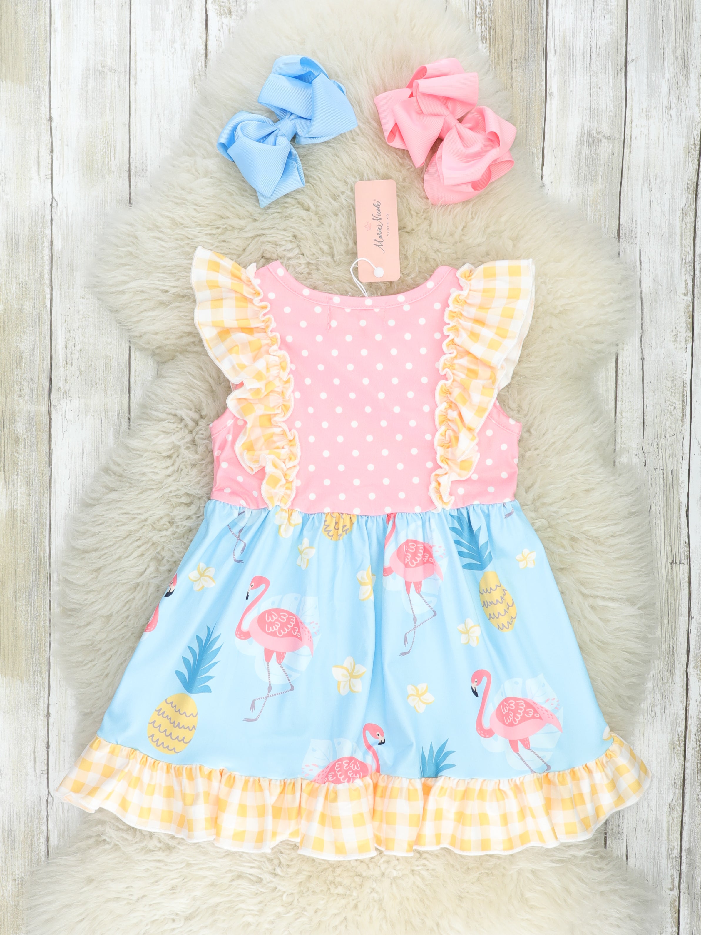 Home › Yellow Gingham Flamingo Sister Set