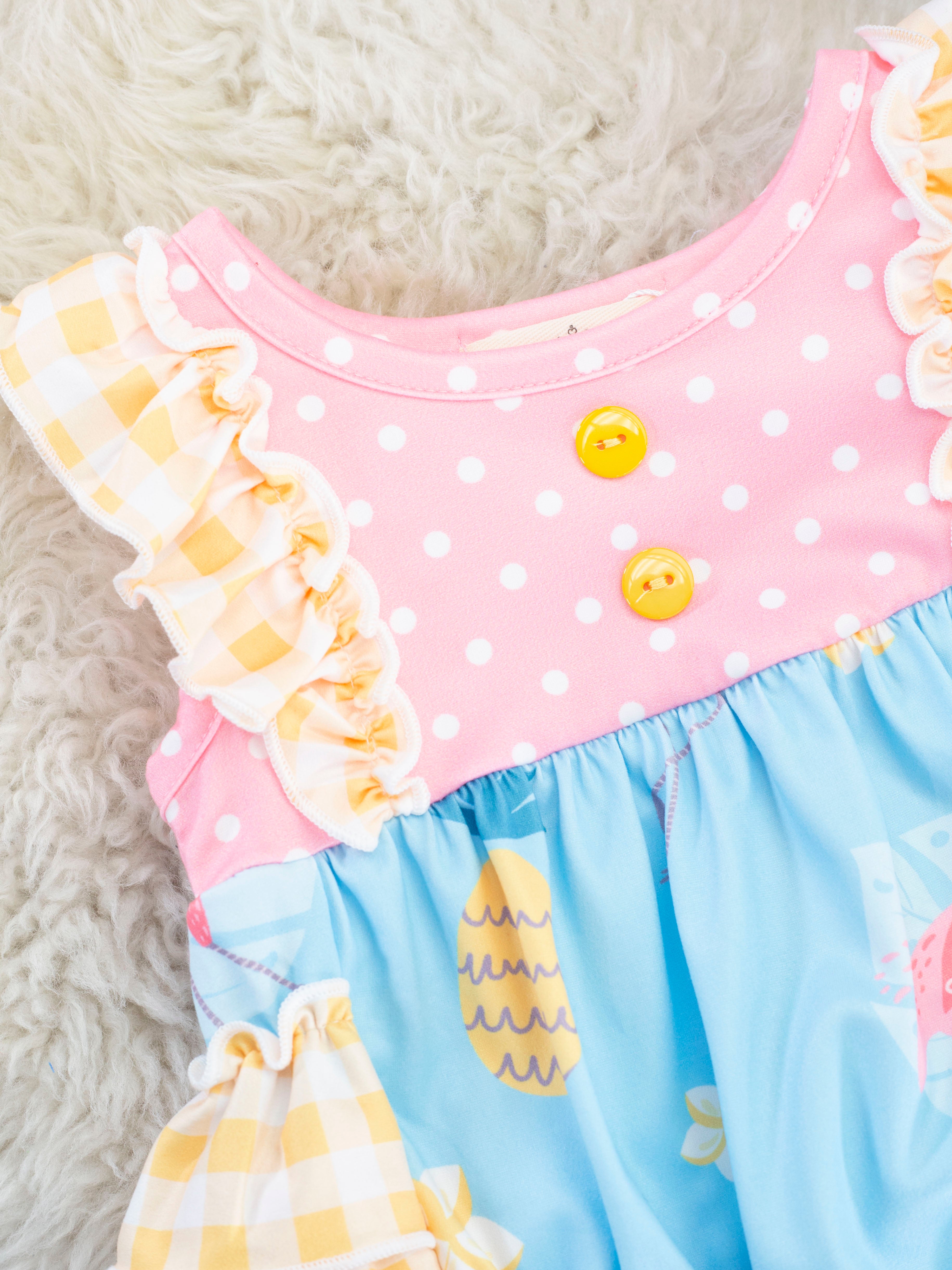Yellow Gingham Flamingo Ruffle Dress