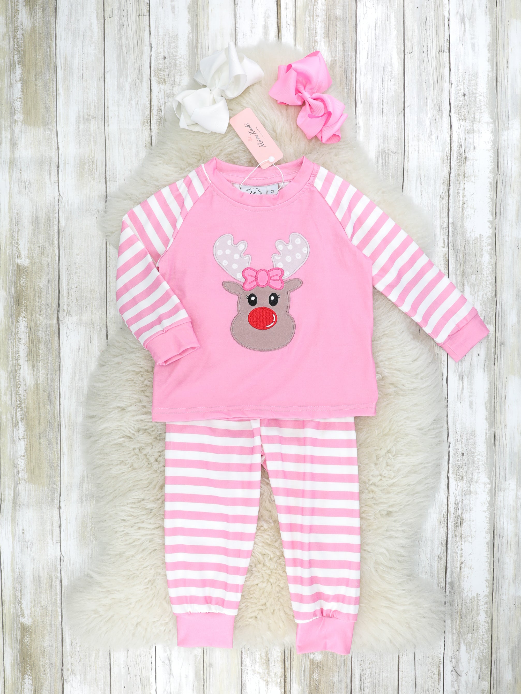 Pink Striped Reindeer Pajamas