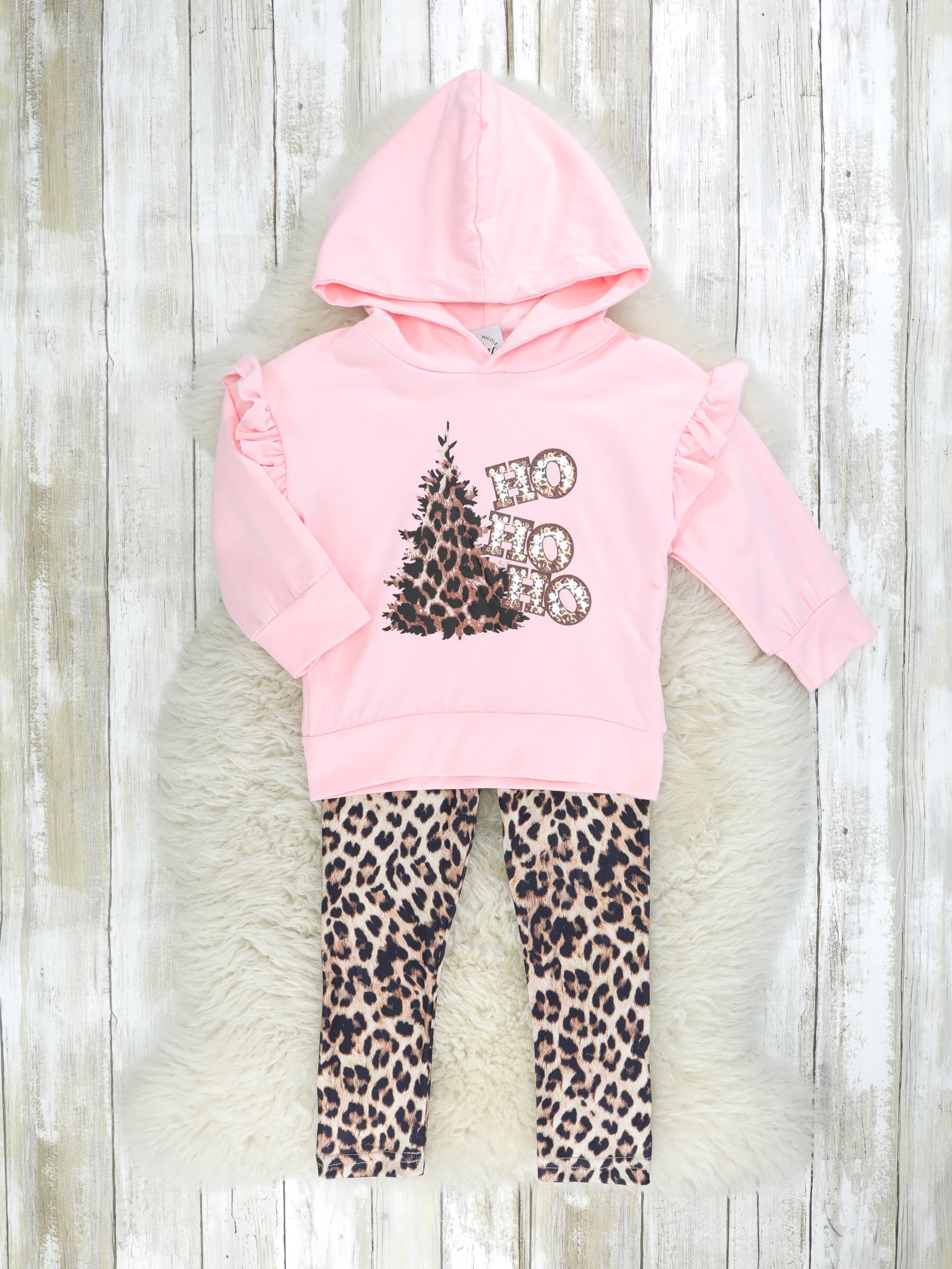Pink "HO HO HO" Leopard Hoodie Outfit