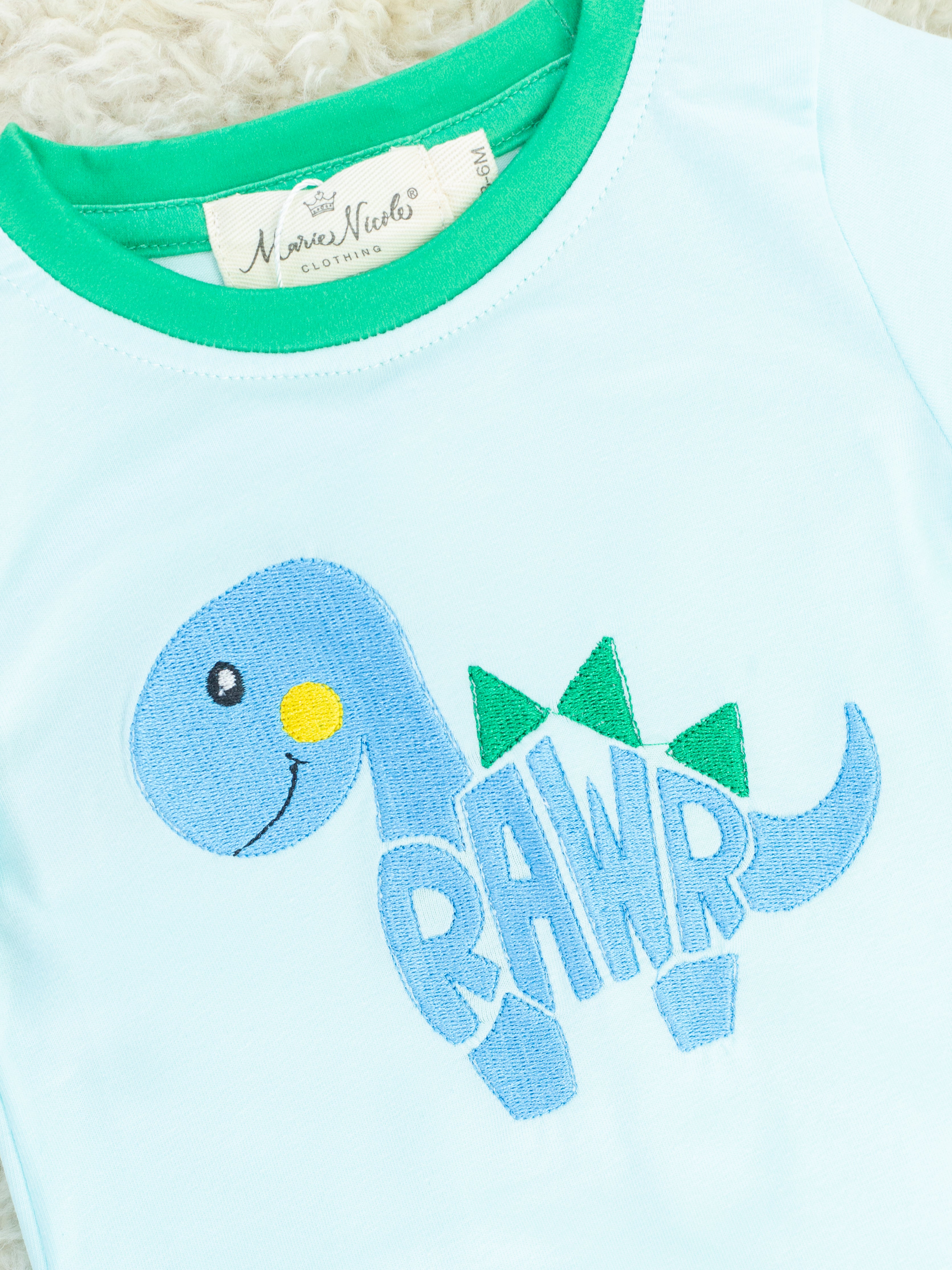 Let your little ones unleash their inner dinos with the Baby Blue “Rawr” Brother Set! Featuring baby blue hues, a cool dino appliqué, a roar-inducing "rawr" graphic, and green trim—this romper is sure to attract some serious “oohs” and “ahhs.” It's time to get RAWR-y!