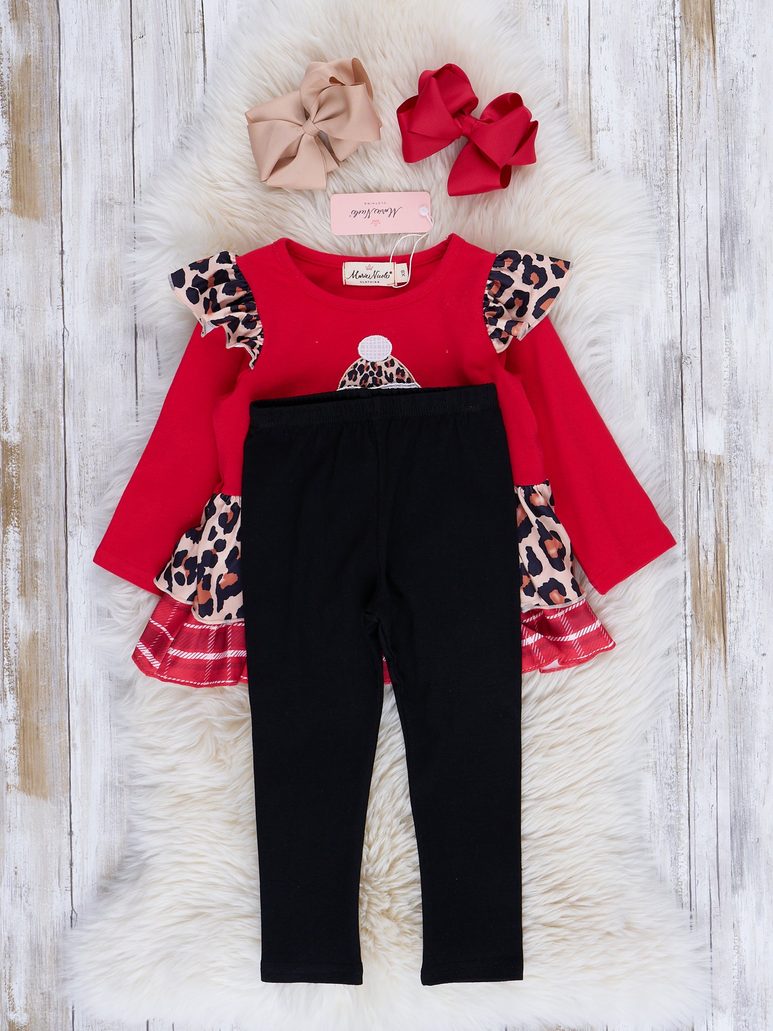 The Red Mixed Print Embroidered Santa sibling set is sure to bring holiday cheer to your little one's jolly celebrations! 🎅👗🎄 Adorned with adorable embroidered Santa and mixed prints of leopard & holiday tartan, this outfit is a playful and unique look that captures the essence of holiday fun.