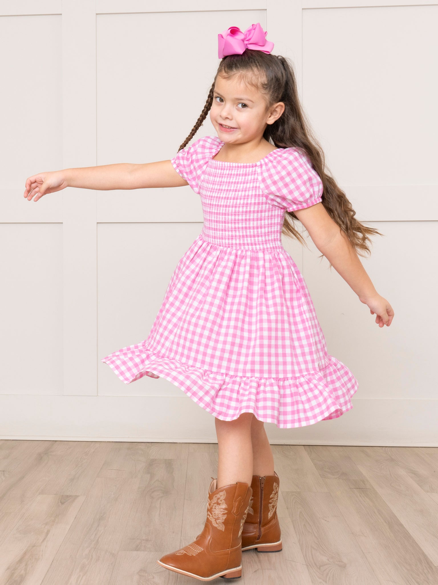 Hot Pink Gingham Smocked Ruffle Dress